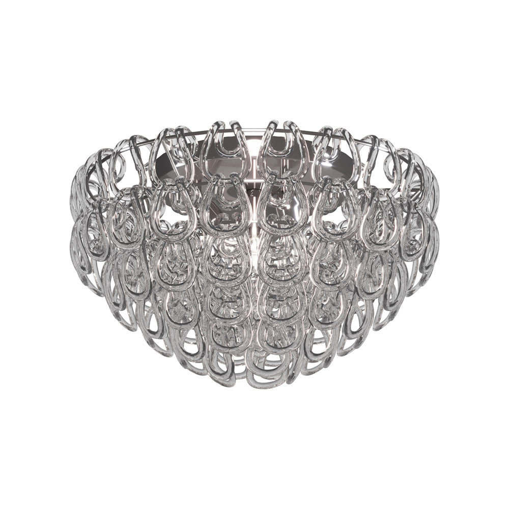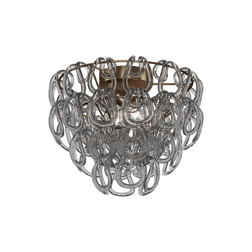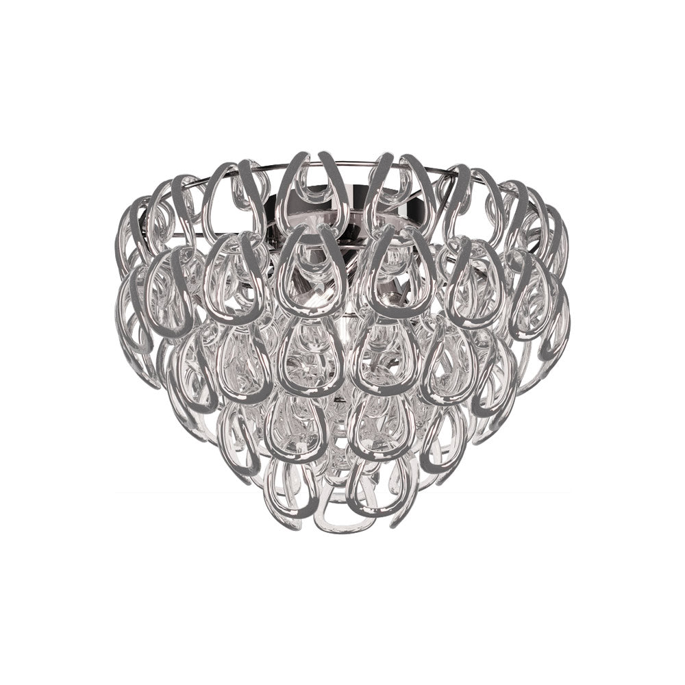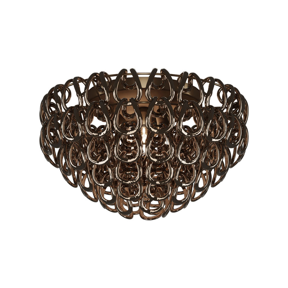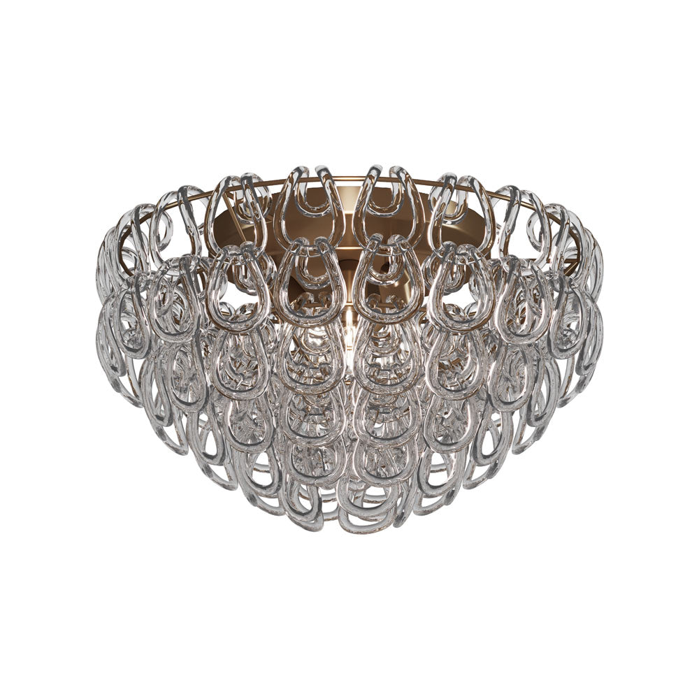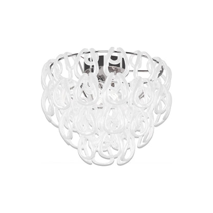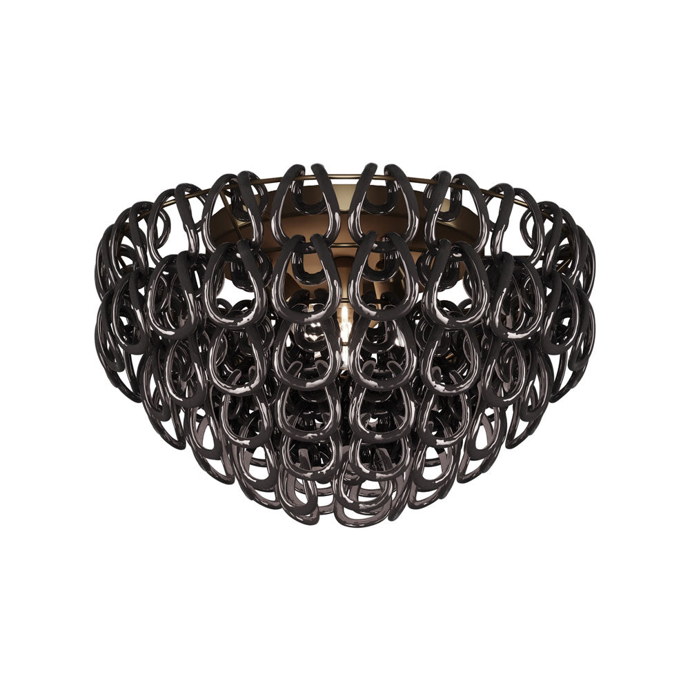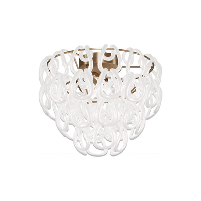 A unique blend of fine art and boho style adds a chic look to any space when the Giogali Flush Mount Ceiling Light from Vistosi becomes a central focus. Tapered silhouetting follows rows of delicate glass loops aligned around metal framing, offering a romantic effect in light reflection and transforming a living space into a gallery setting.