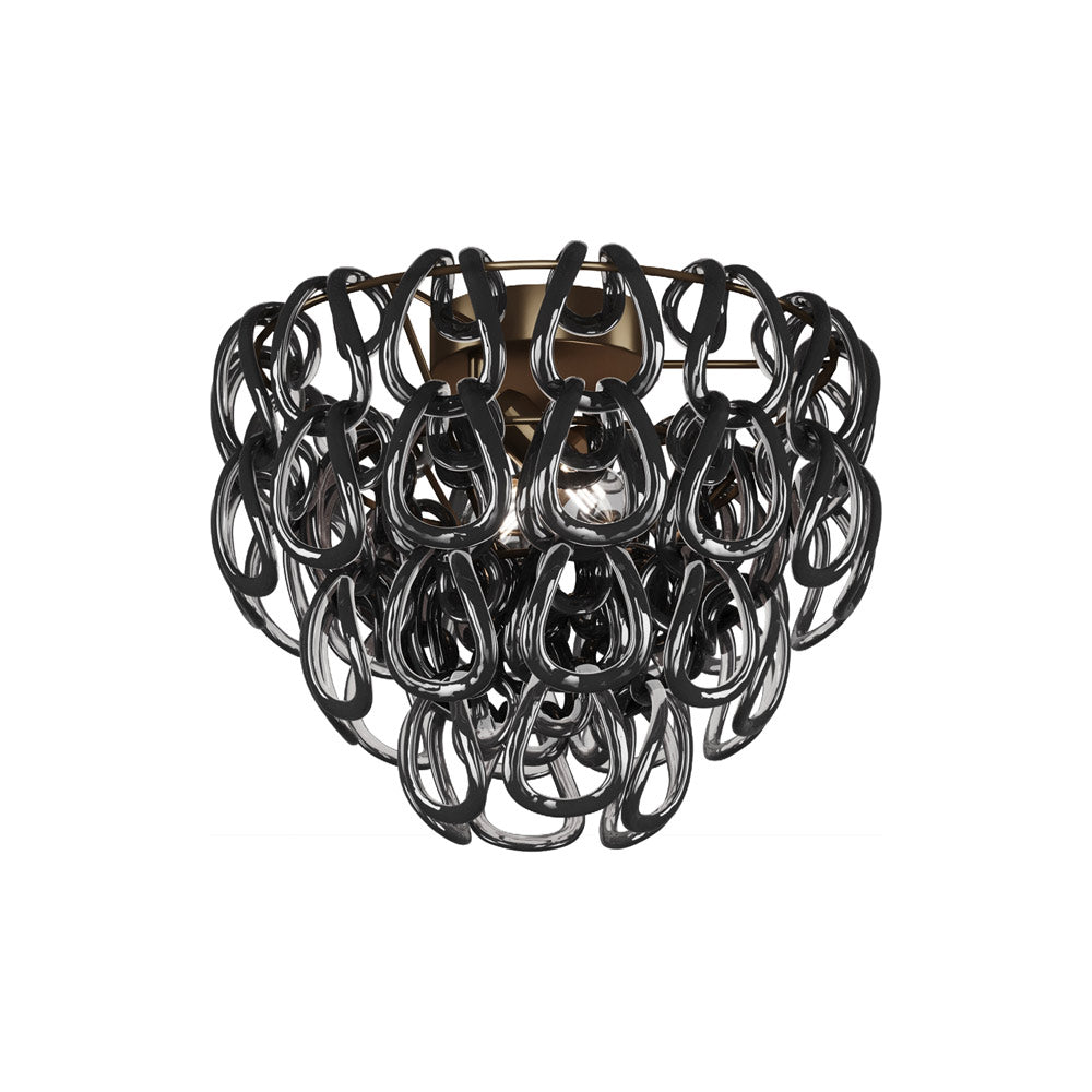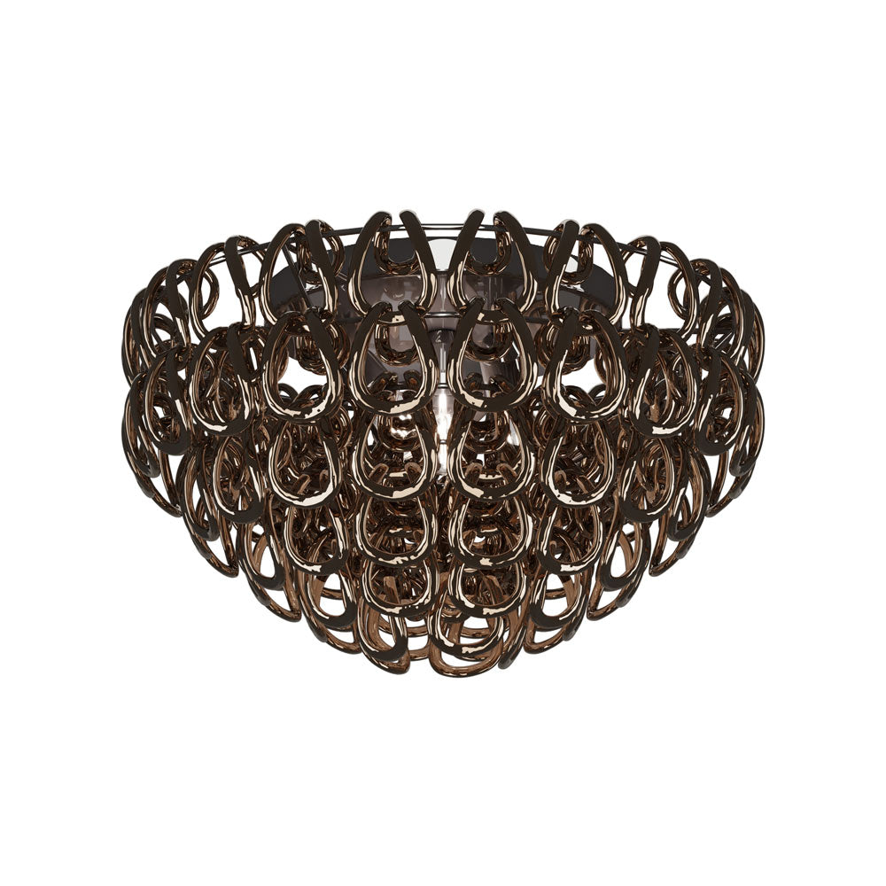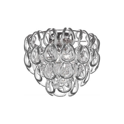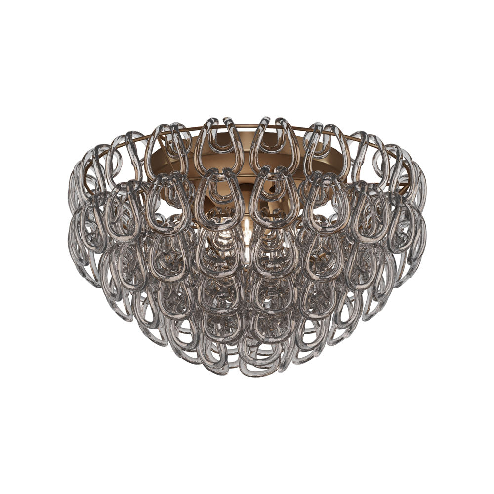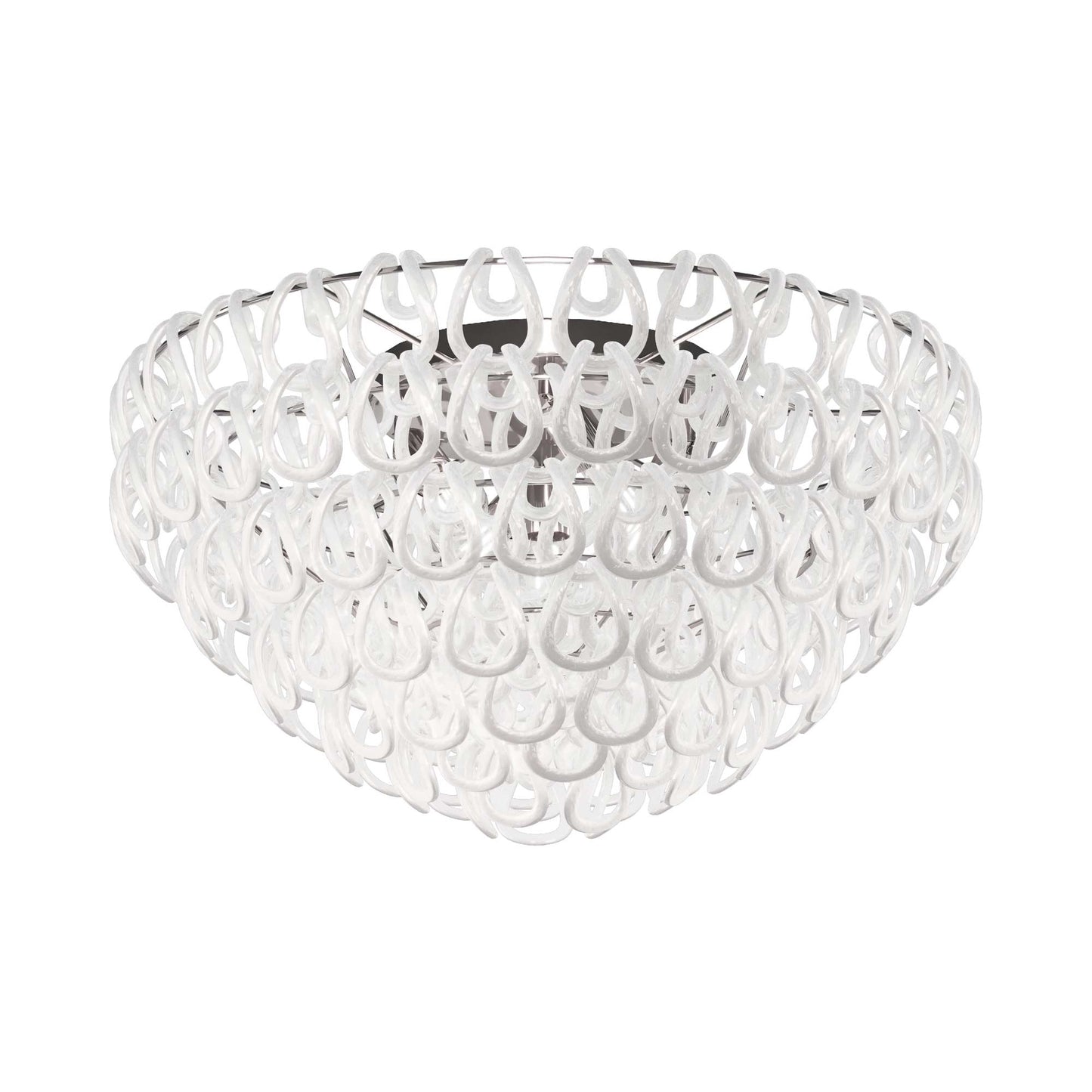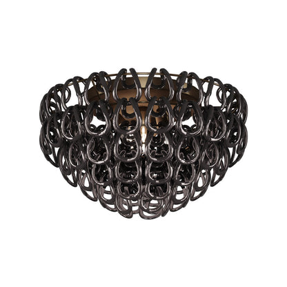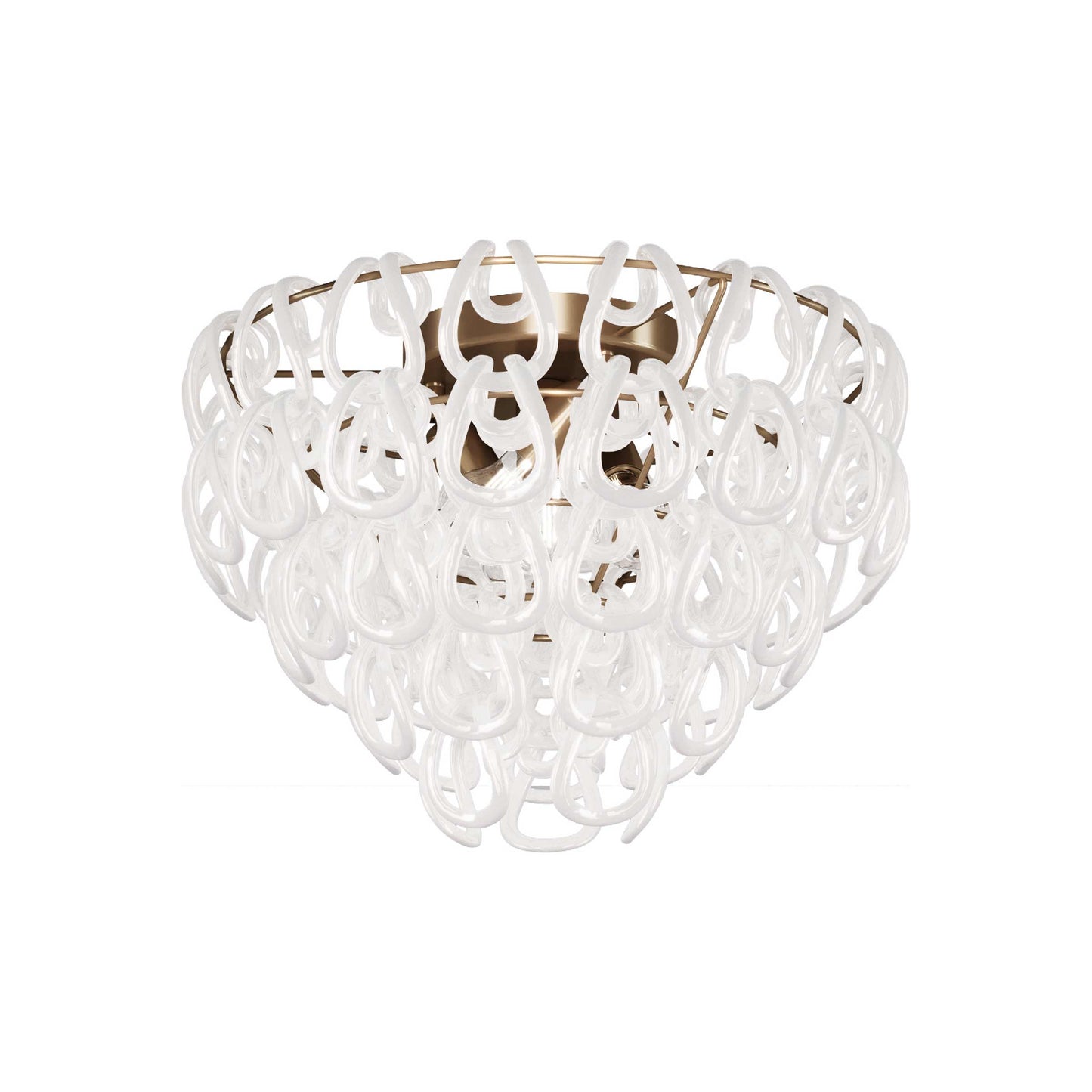 A unique blend of fine art and boho style adds a chic look to any space when the Giogali Flush Mount Ceiling Light from Vistosi becomes a central focus. Tapered silhouetting follows rows of delicate glass loops aligned around metal framing, offering a romantic effect in light reflection and transforming a living space into a gallery setting.