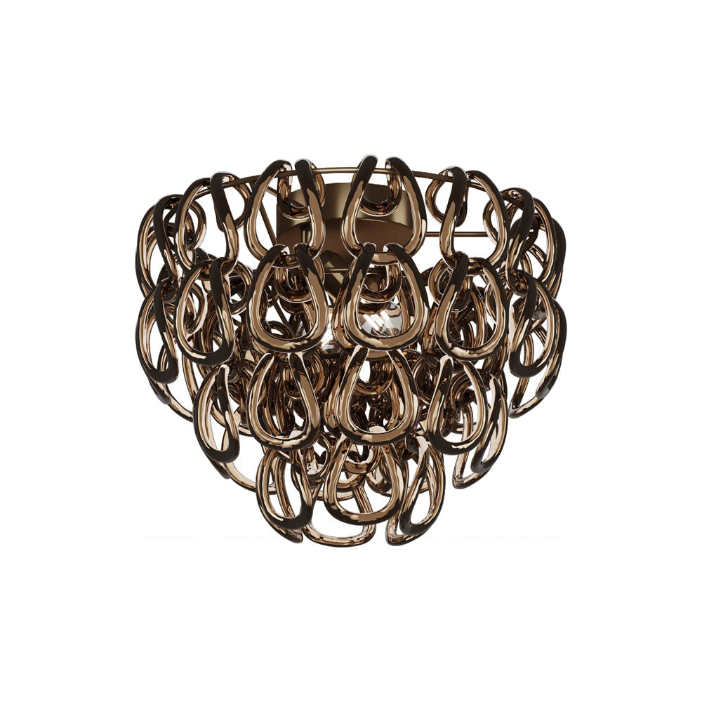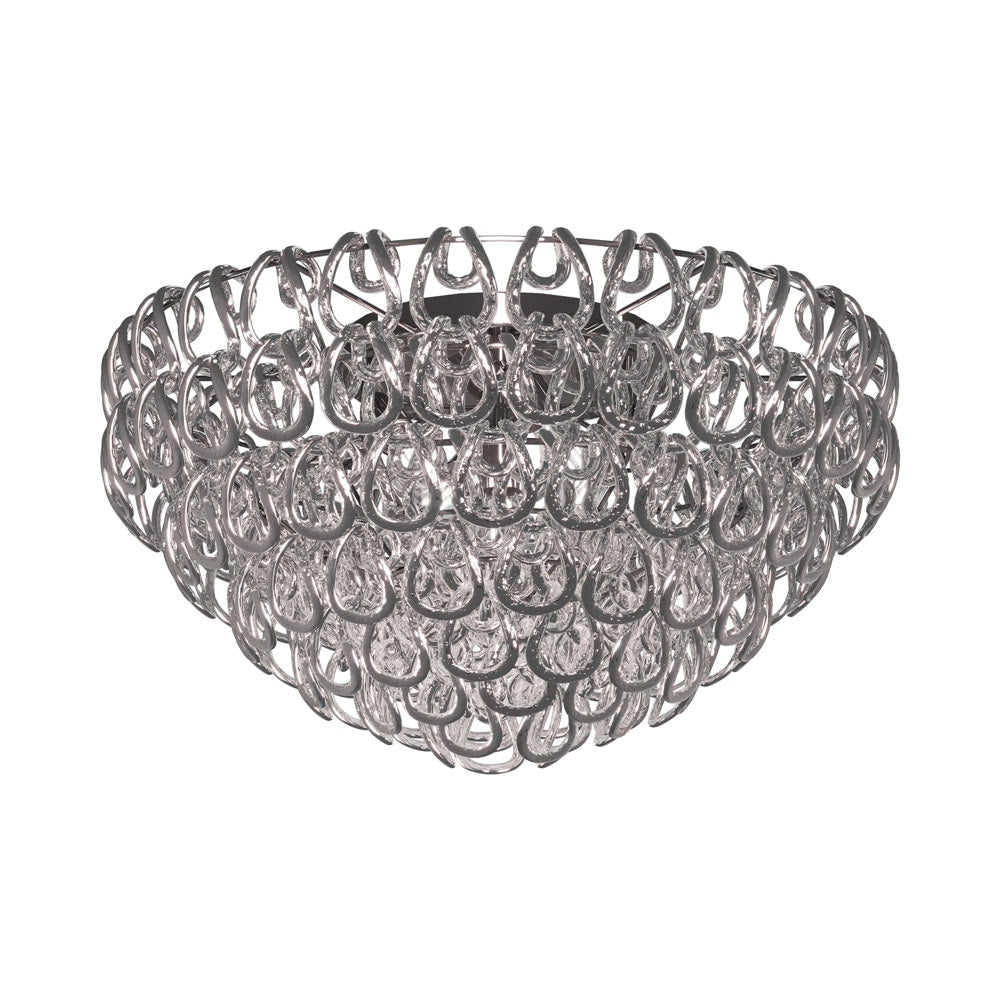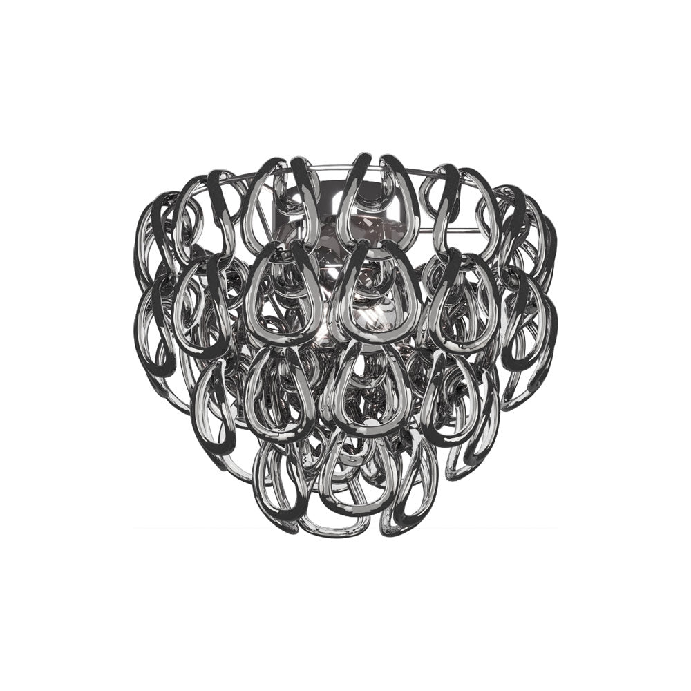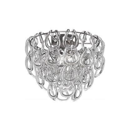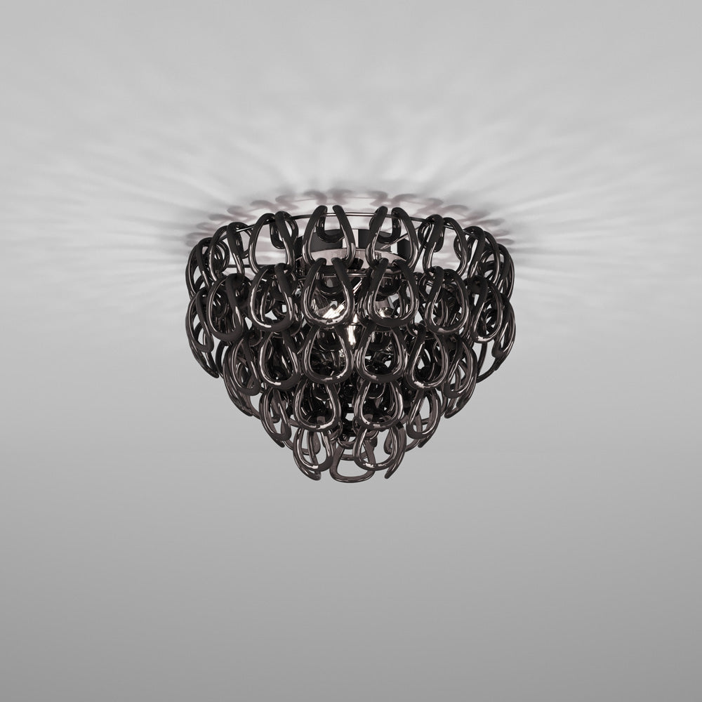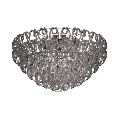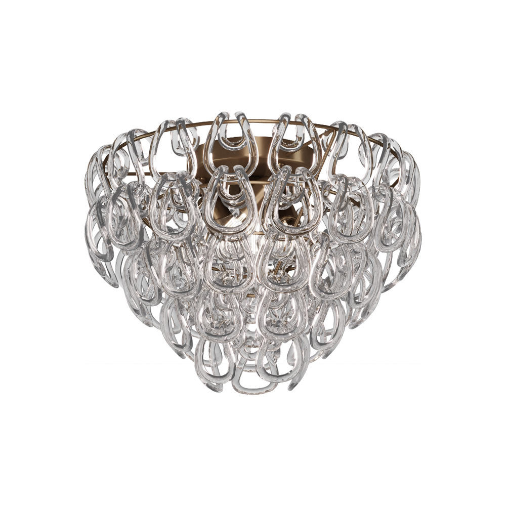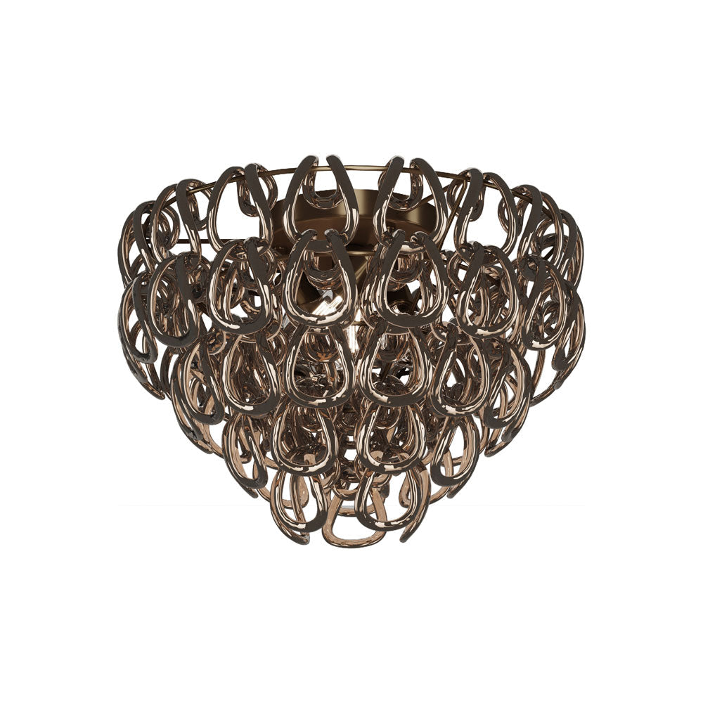 A unique blend of fine art and boho style adds a chic look to any space when the Giogali Flush Mount Ceiling Light from Vistosi becomes a central focus. Tapered silhouetting follows rows of delicate glass loops aligned around metal framing, offering a romantic effect in light reflection and transforming a living space into a gallery setting.