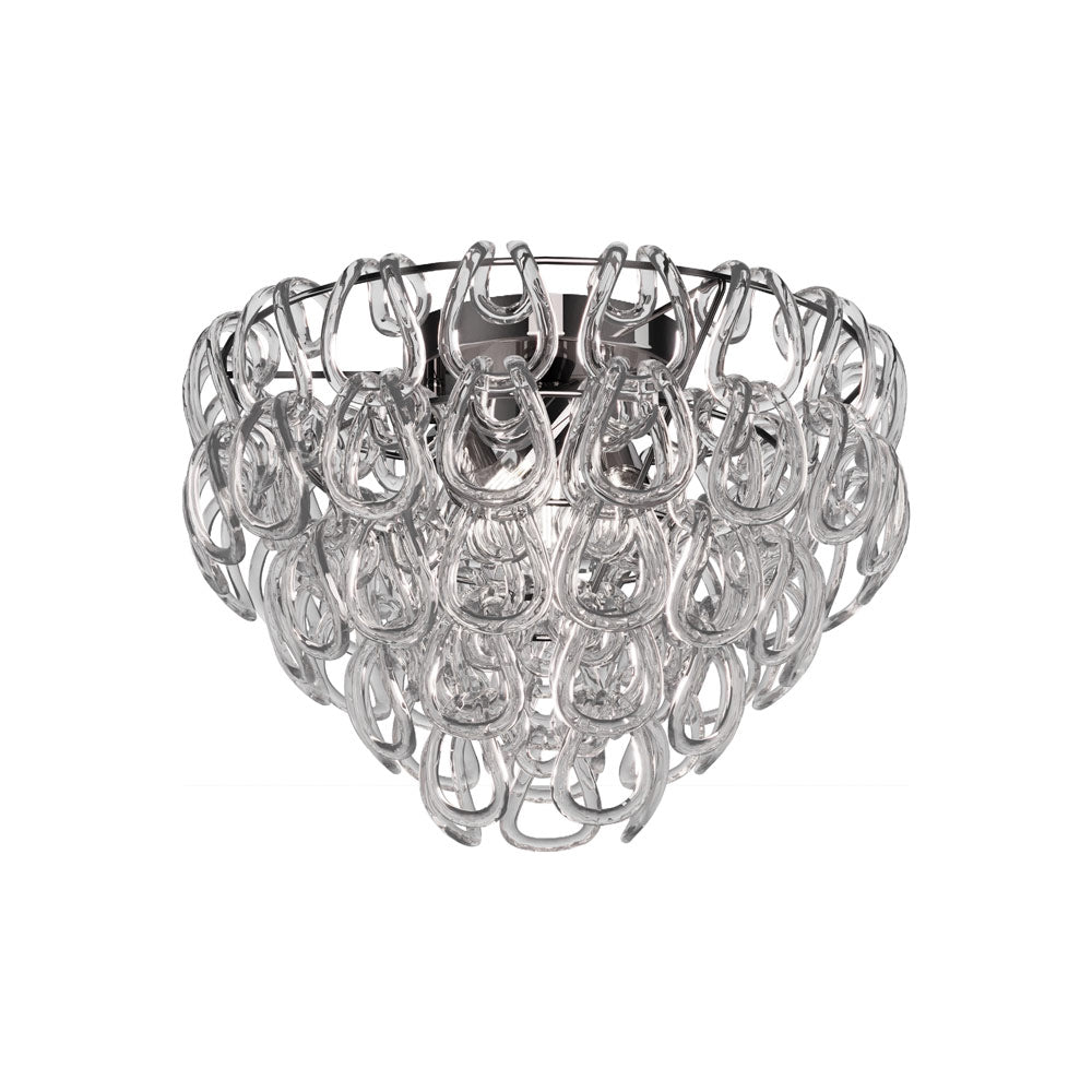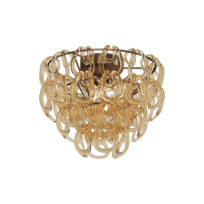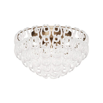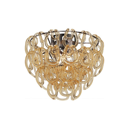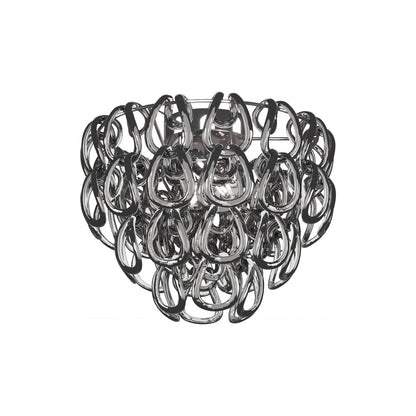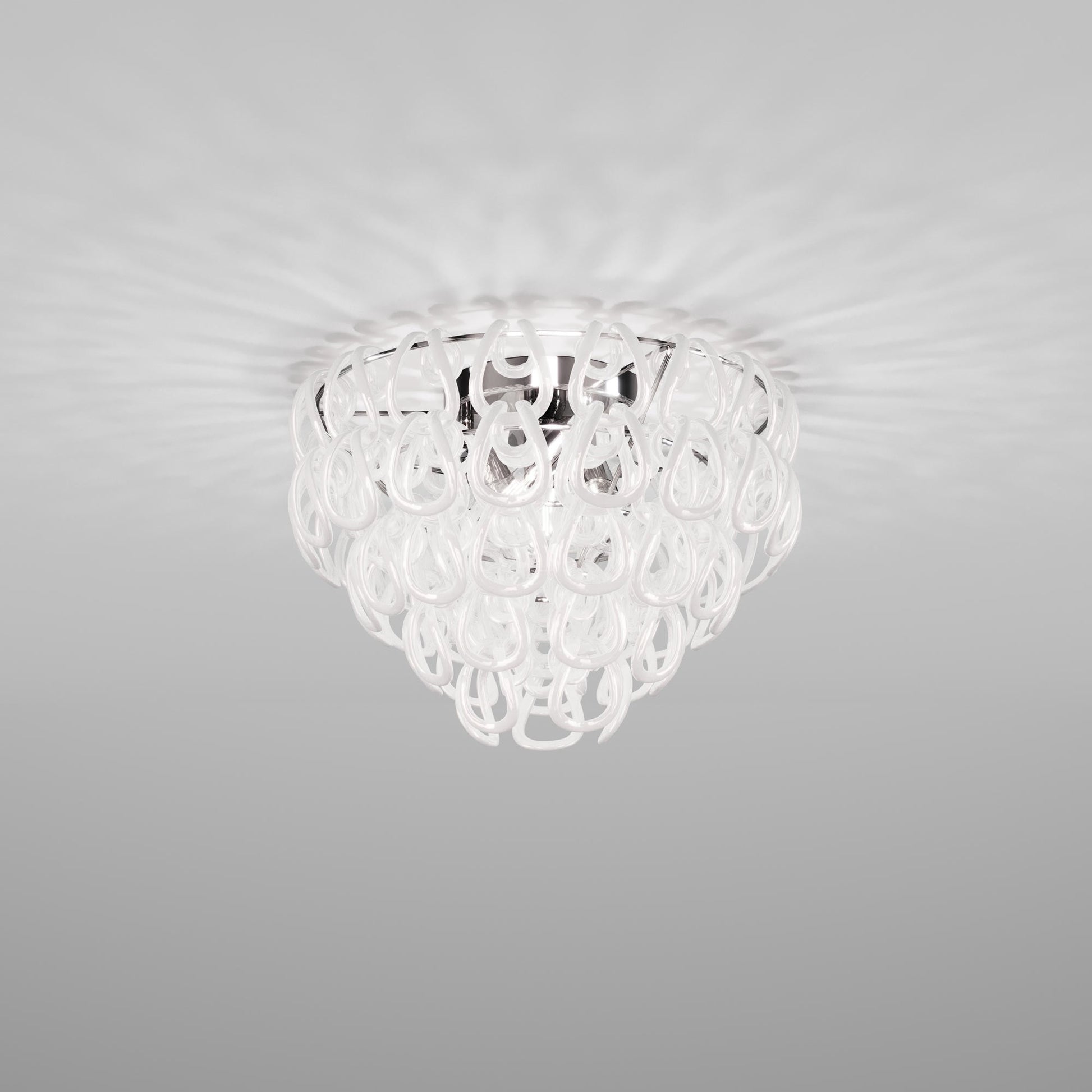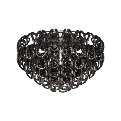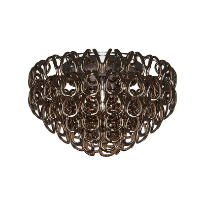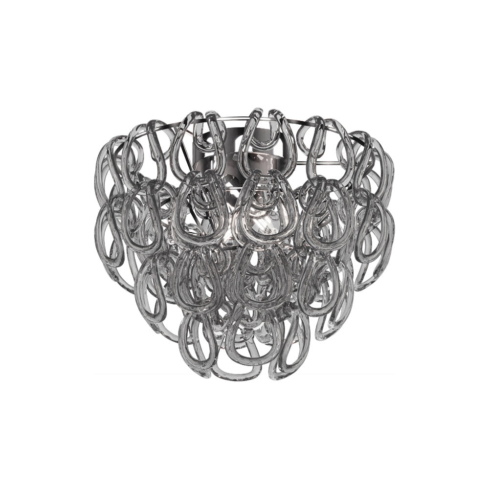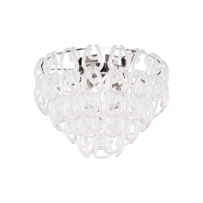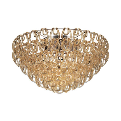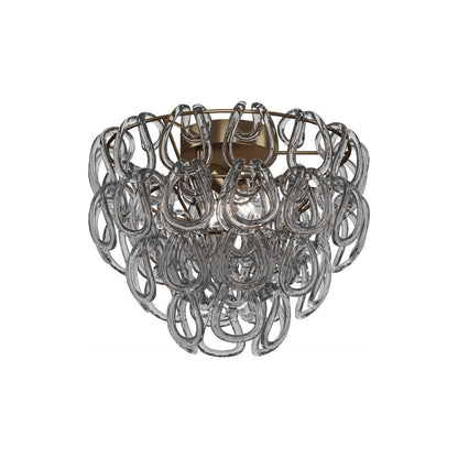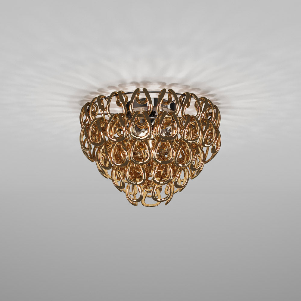 A unique blend of fine art and boho style adds a chic look to any space when the Giogali Flush Mount Ceiling Light from Vistosi becomes a central focus. Tapered silhouetting follows rows of delicate glass loops aligned around metal framing, offering a romantic effect in light reflection and transforming a living space into a gallery setting.