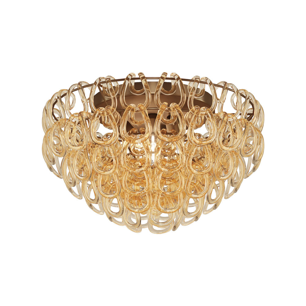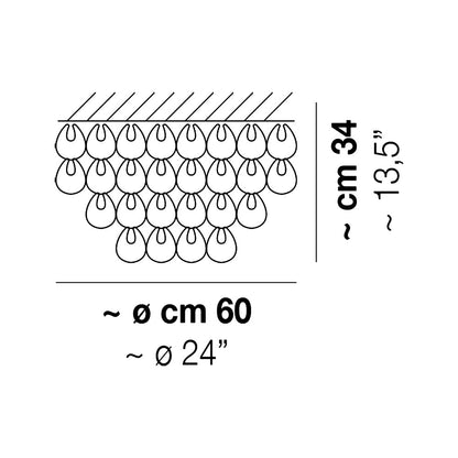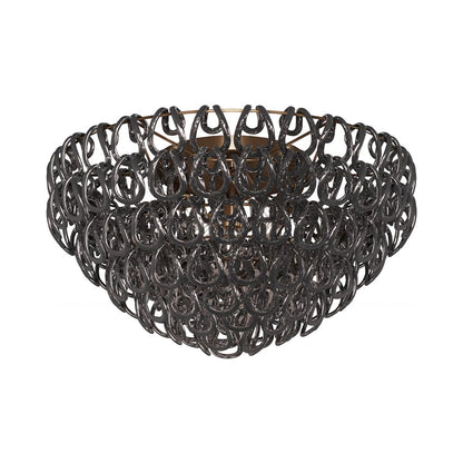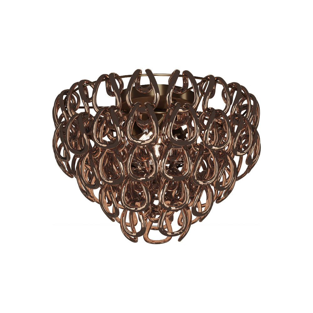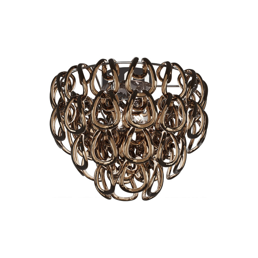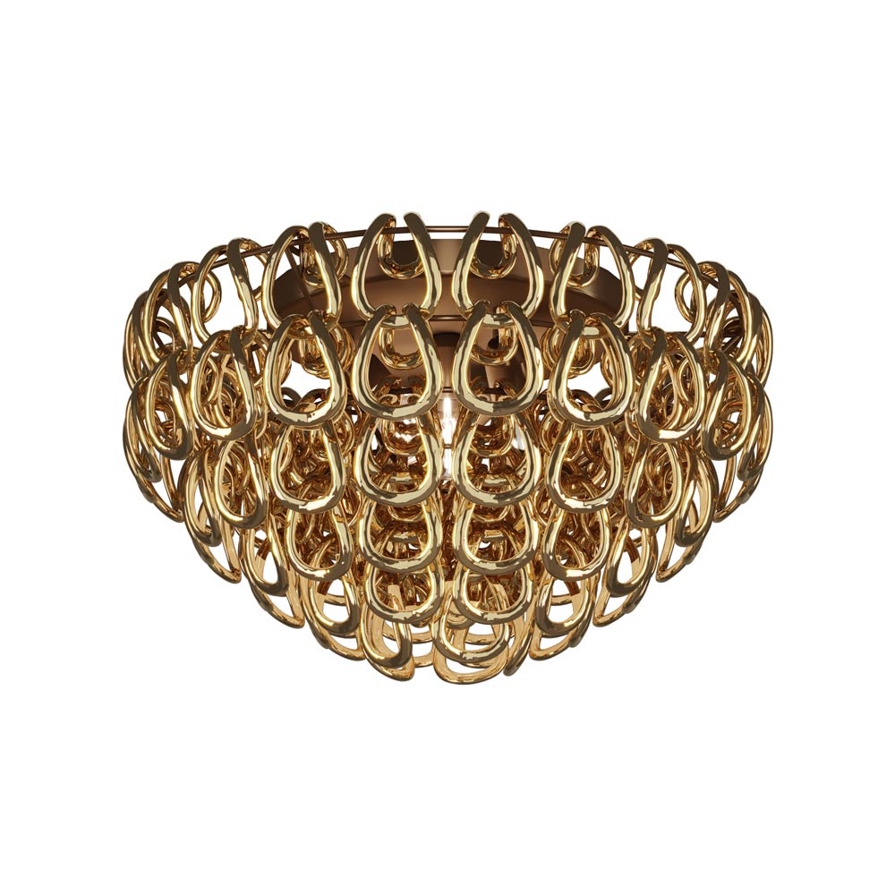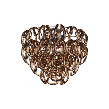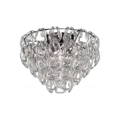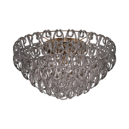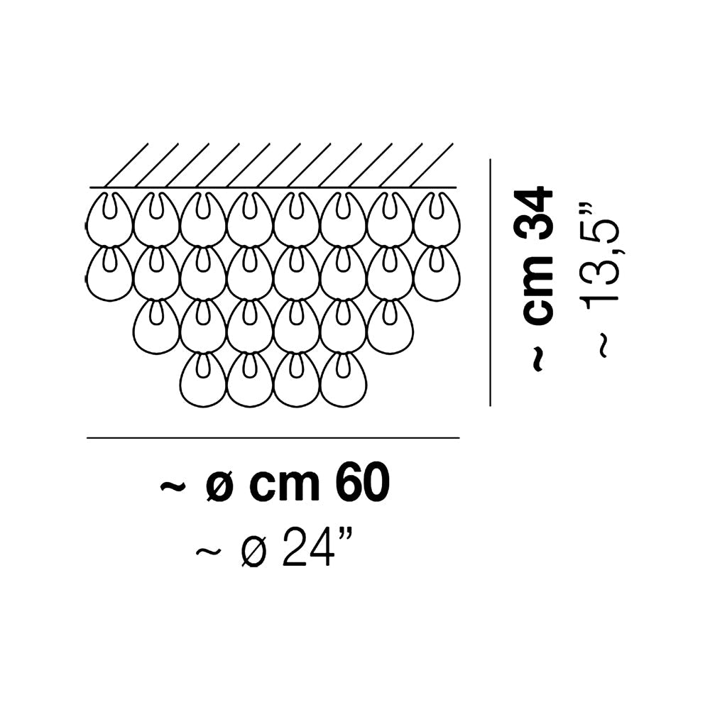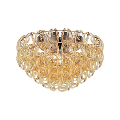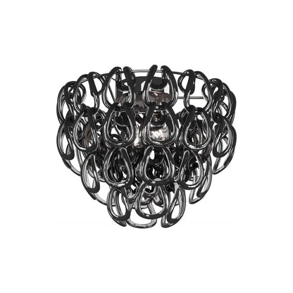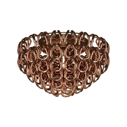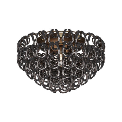 A unique blend of fine art and boho style adds a chic look to any space when the Giogali Flush Mount Ceiling Light from Vistosi becomes a central focus. Tapered silhouetting follows rows of delicate glass loops aligned around metal framing, offering a romantic effect in light reflection and transforming a living space into a gallery setting.