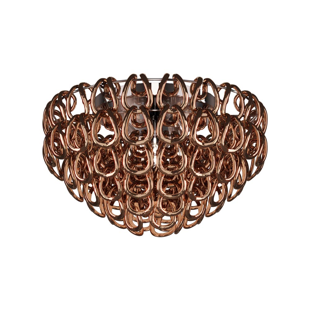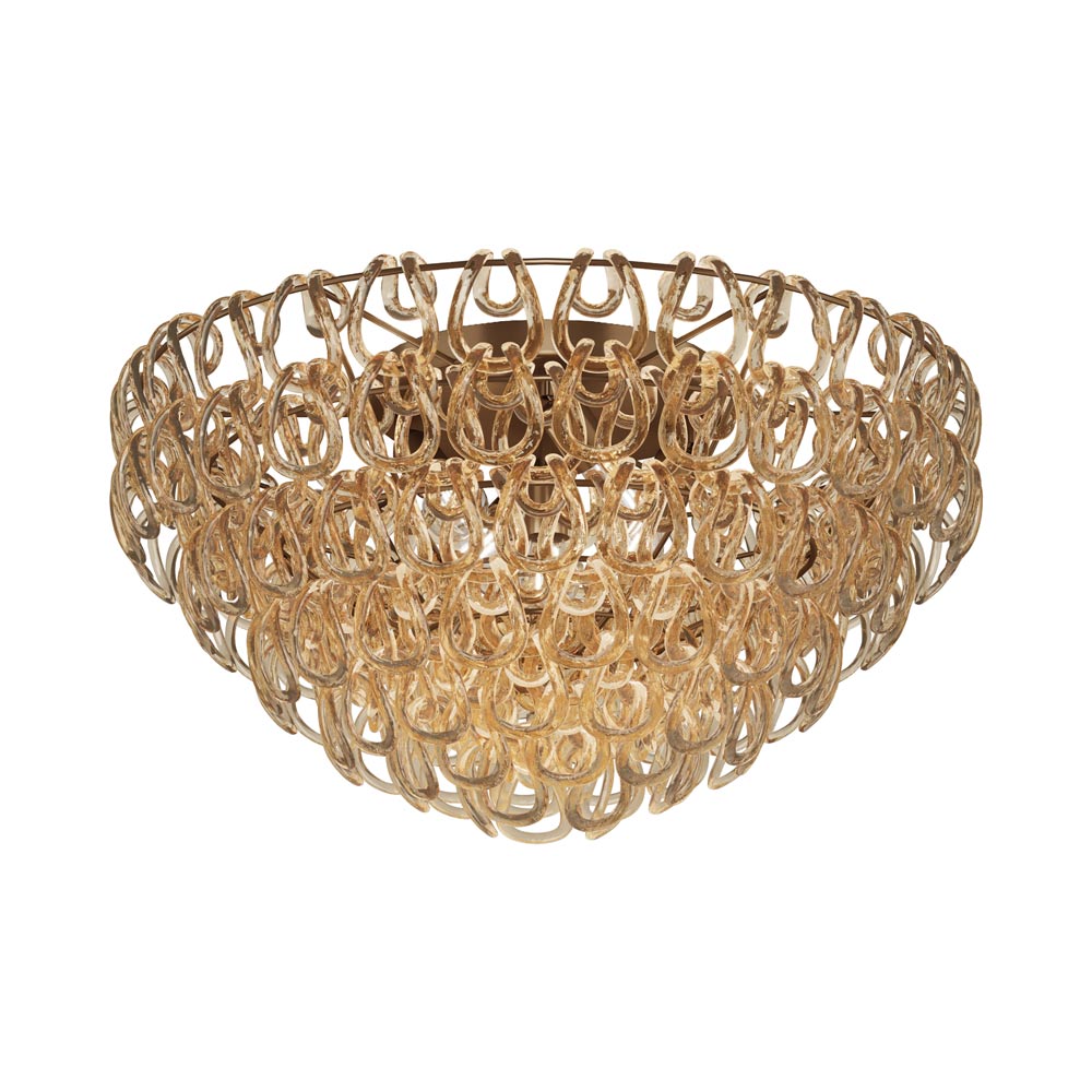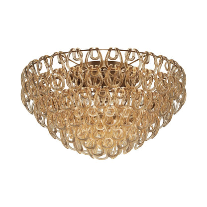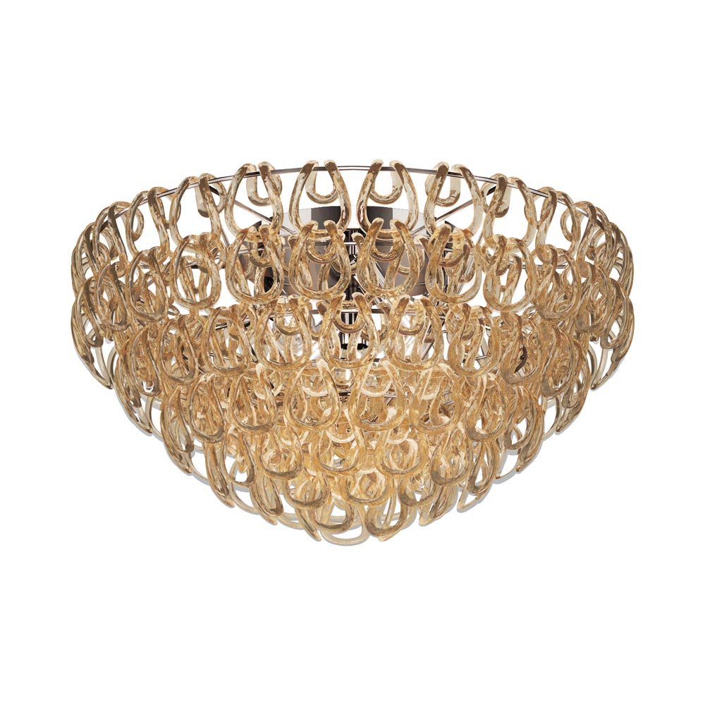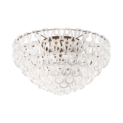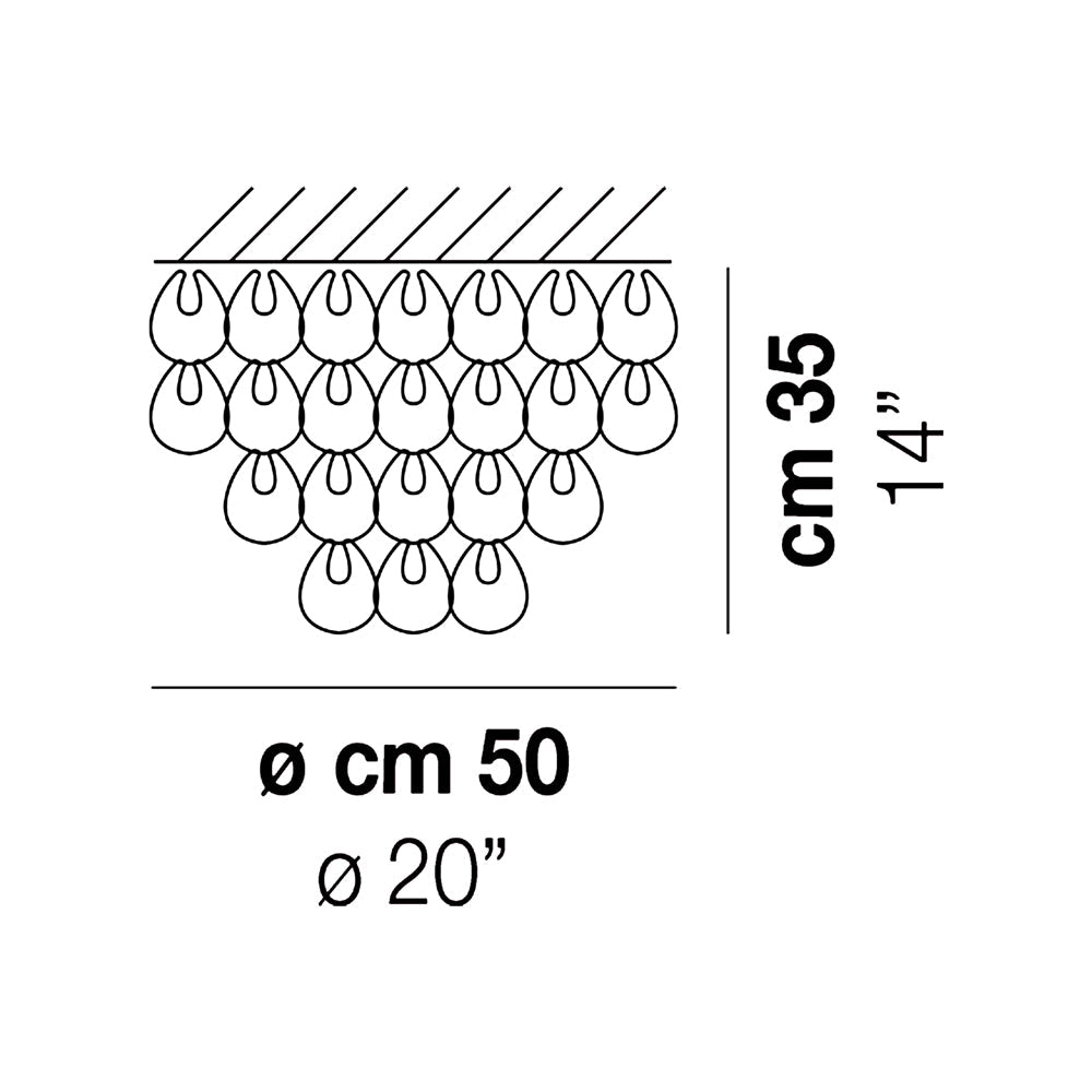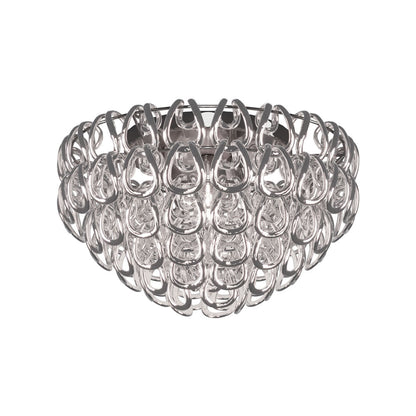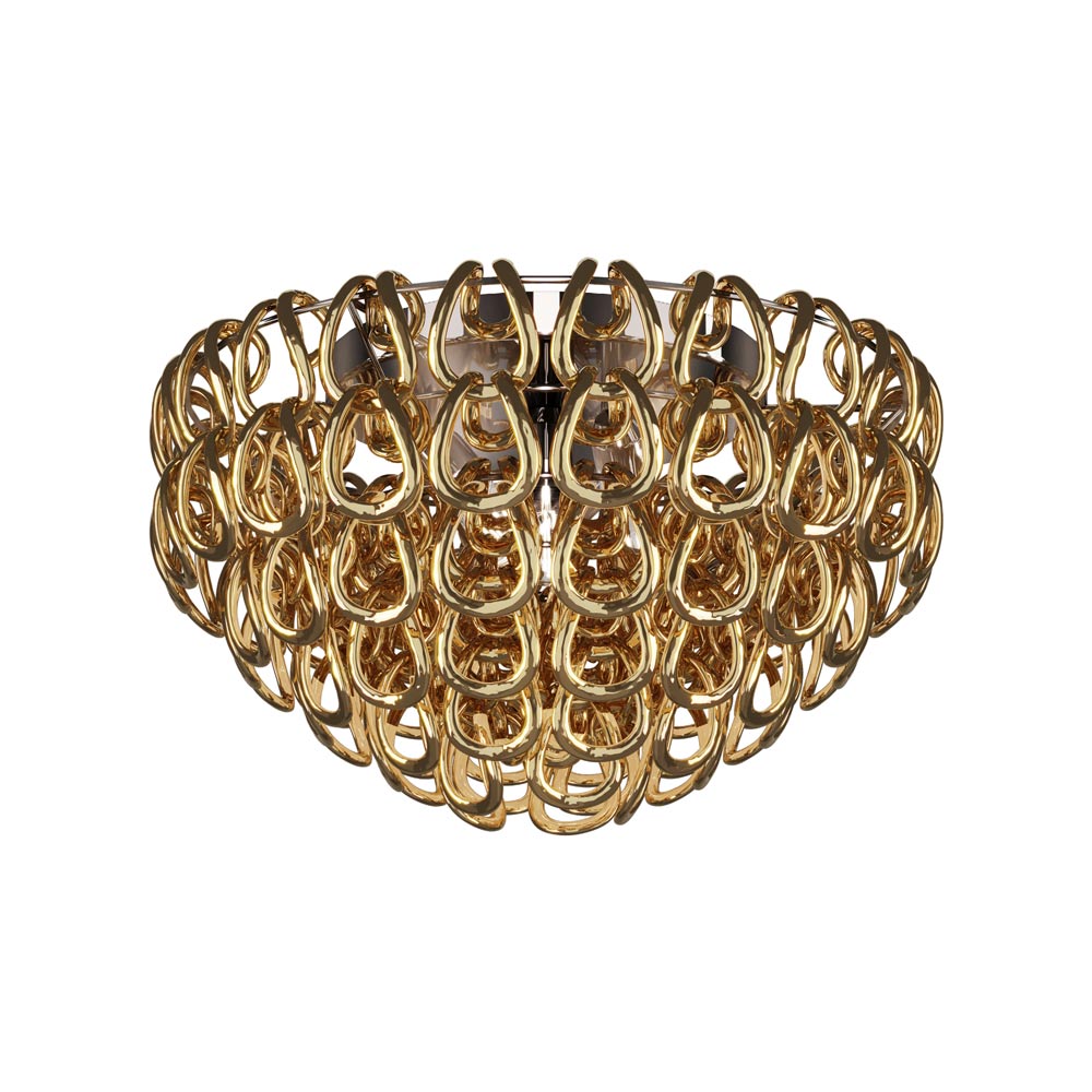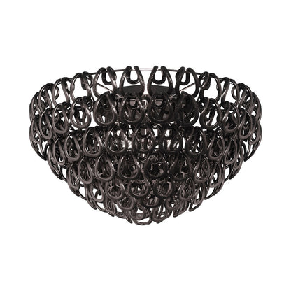 A unique blend of fine art and boho style adds a chic look to any space when the Giogali Flush Mount Ceiling Light from Vistosi becomes a central focus. Tapered silhouetting follows rows of delicate glass loops aligned around metal framing, offering a romantic effect in light reflection and transforming a living space into a gallery setting.