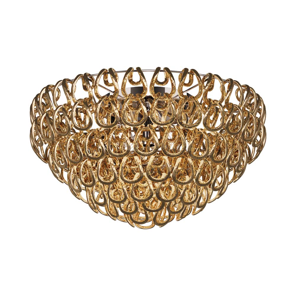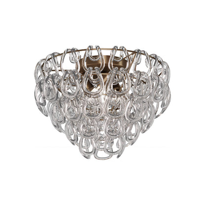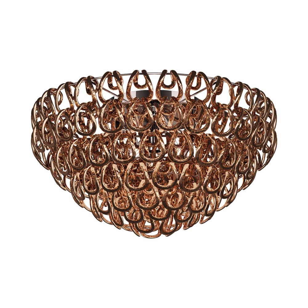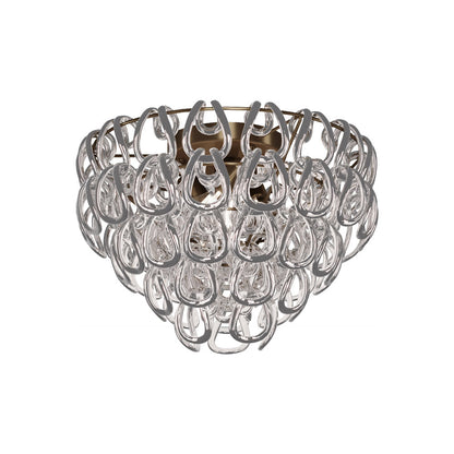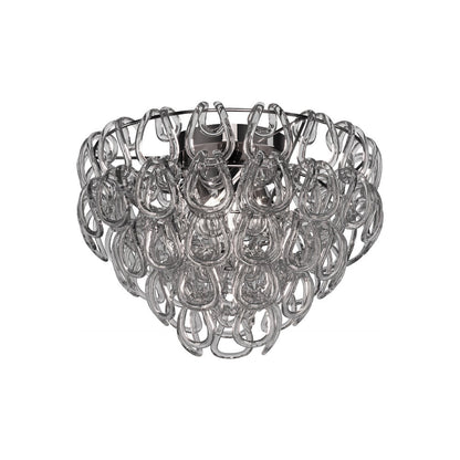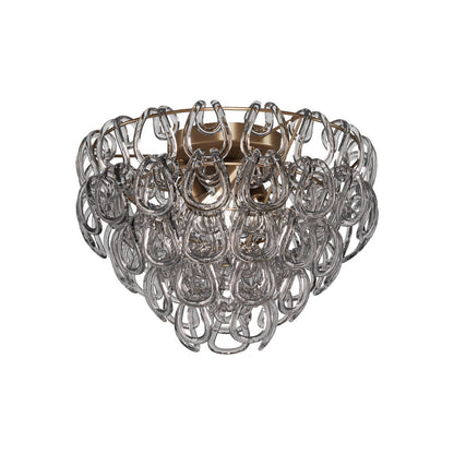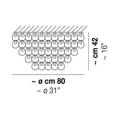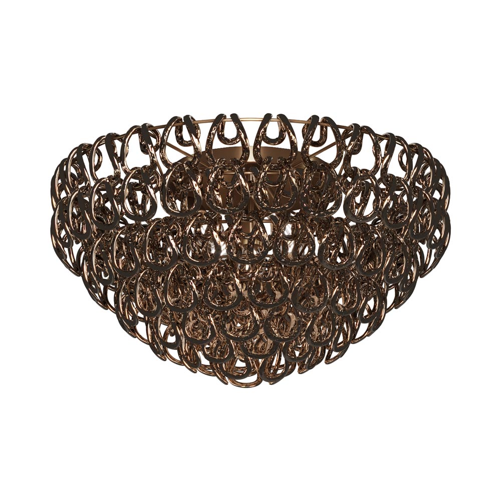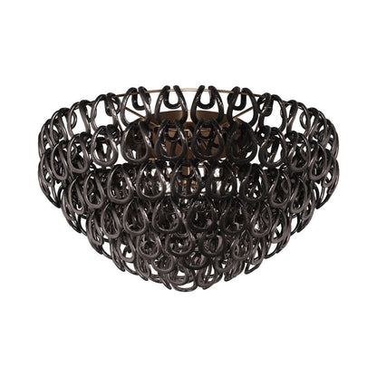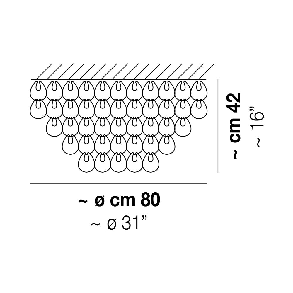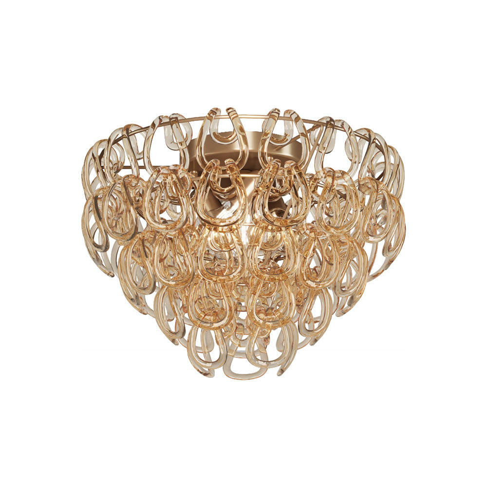 A unique blend of fine art and boho style adds a chic look to any space when the Giogali Flush Mount Ceiling Light from Vistosi becomes a central focus. Tapered silhouetting follows rows of delicate glass loops aligned around metal framing, offering a romantic effect in light reflection and transforming a living space into a gallery setting.