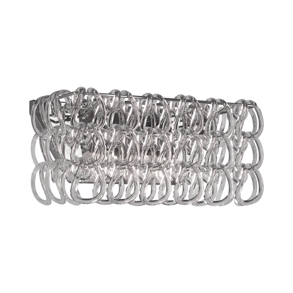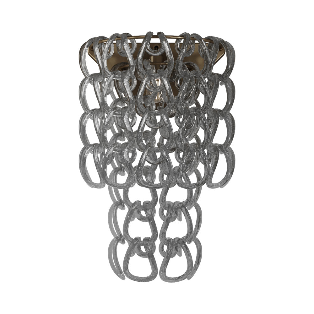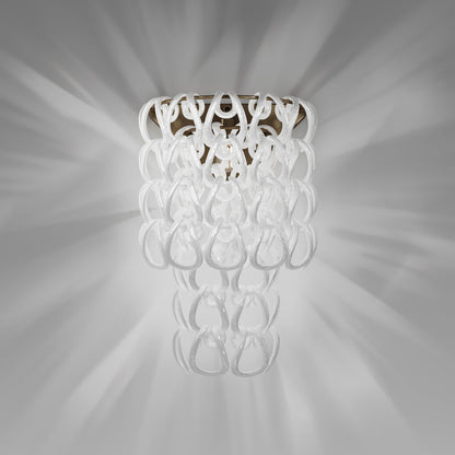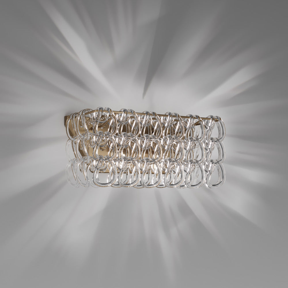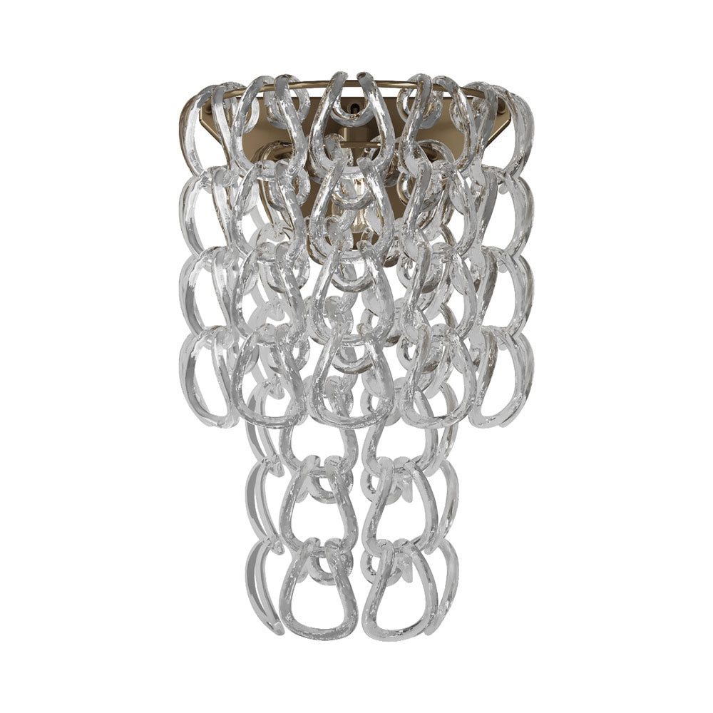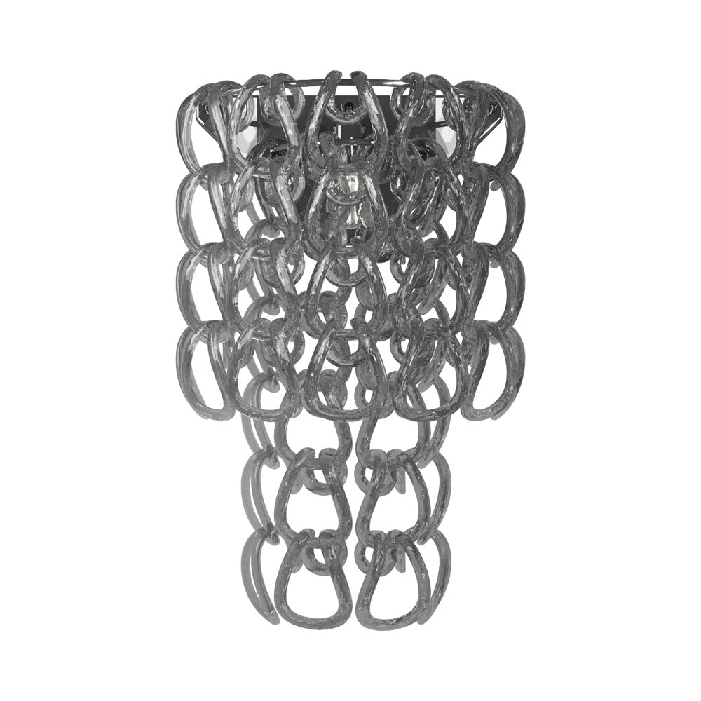 Work the Giogali Wall Light from Vistosi into a stylish interior setting, embracing the reflective power of glass in lighting and a striking industrial vibe. Chain-like links of delicate glass cascade over metal framing, creating a visually enticing effect with extraordinary personality.
