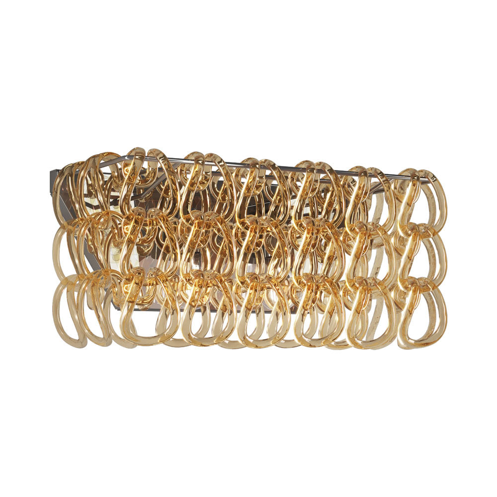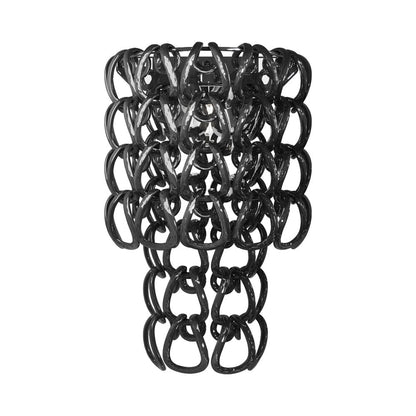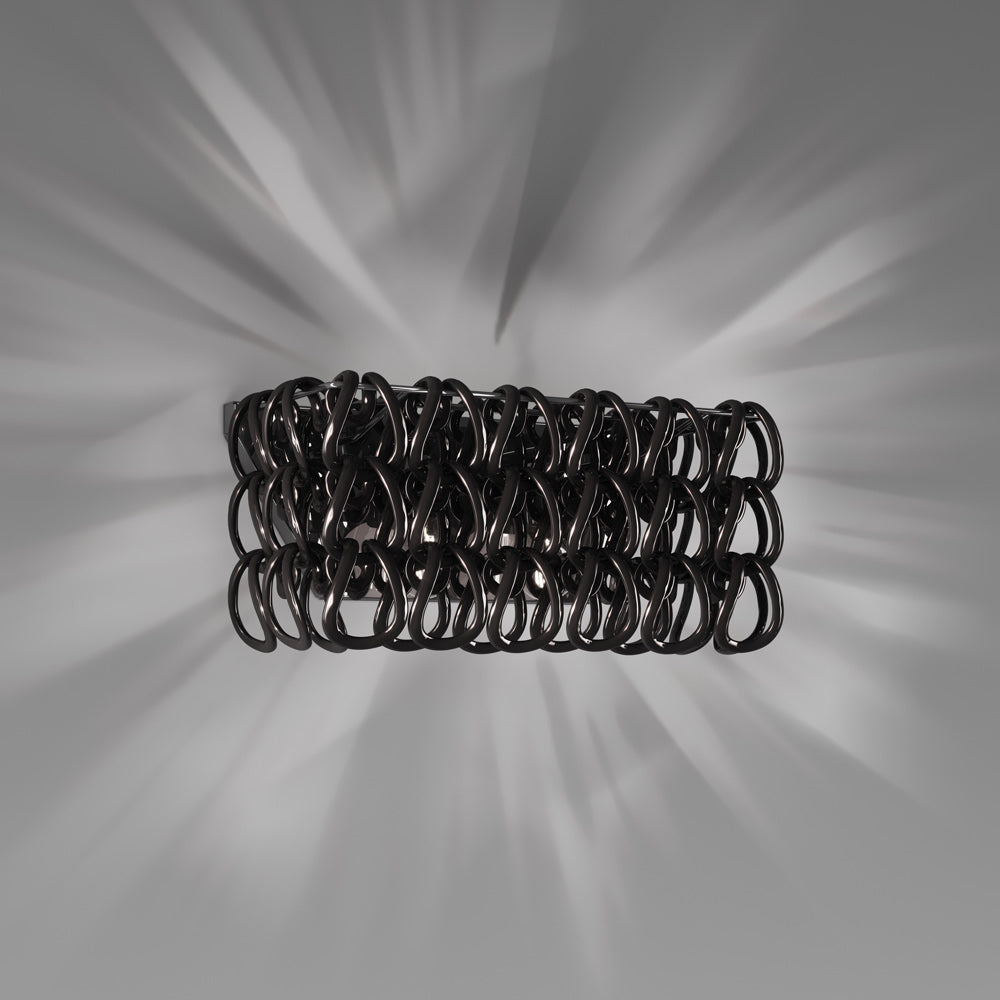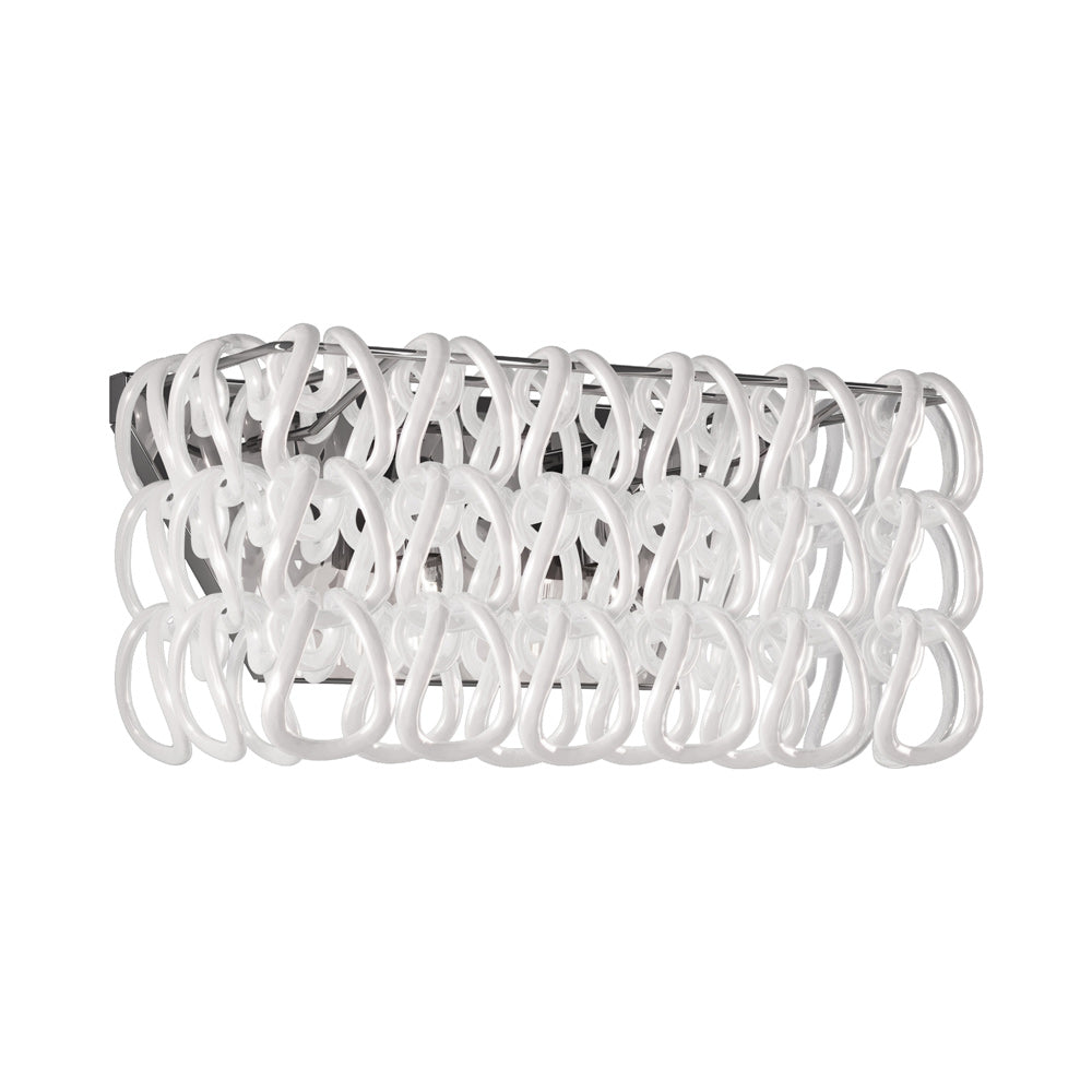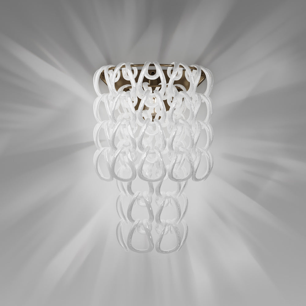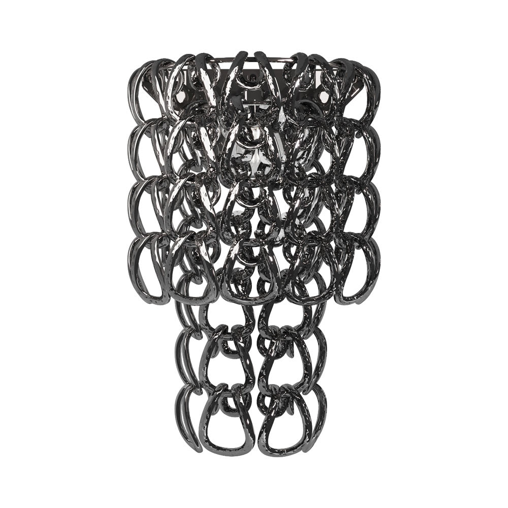 Work the Giogali Wall Light from Vistosi into a stylish interior setting, embracing the reflective power of glass in lighting and a striking industrial vibe. Chain-like links of delicate glass cascade over metal framing, creating a visually enticing effect with extraordinary personality.