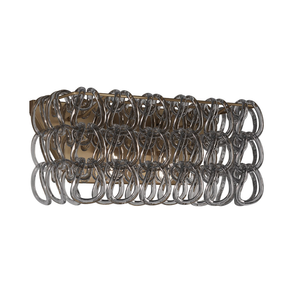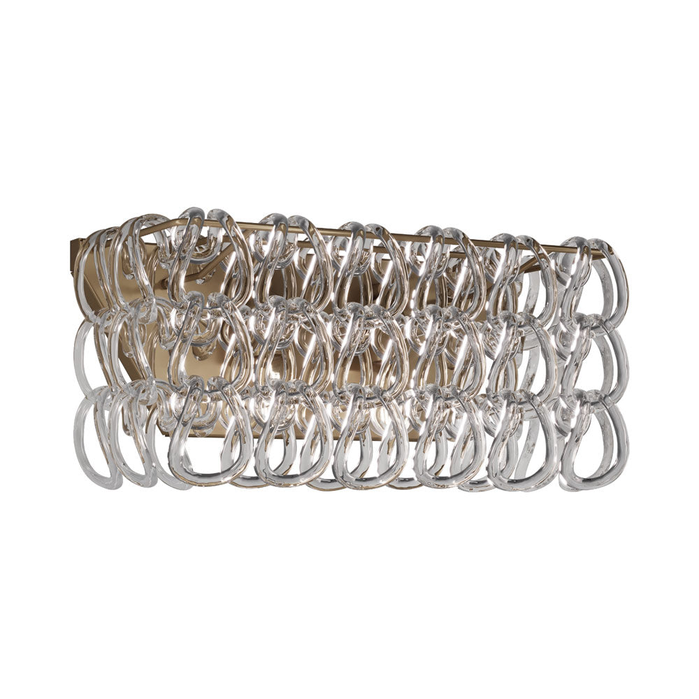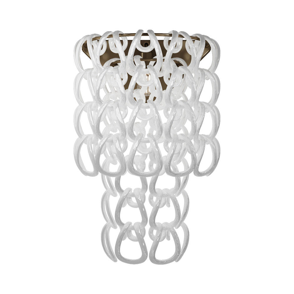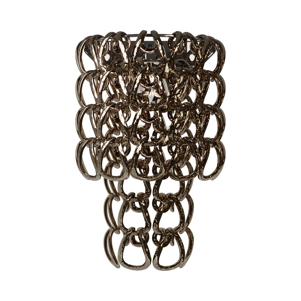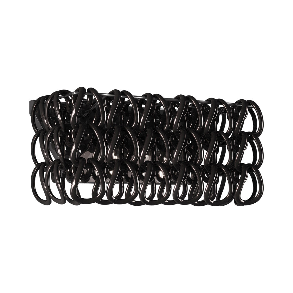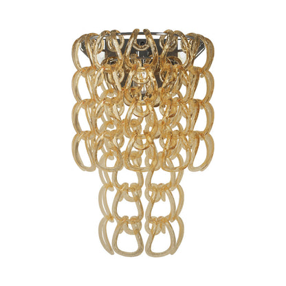 Work the Giogali Wall Light from Vistosi into a stylish interior setting, embracing the reflective power of glass in lighting and a striking industrial vibe. Chain-like links of delicate glass cascade over metal framing, creating a visually enticing effect with extraordinary personality.