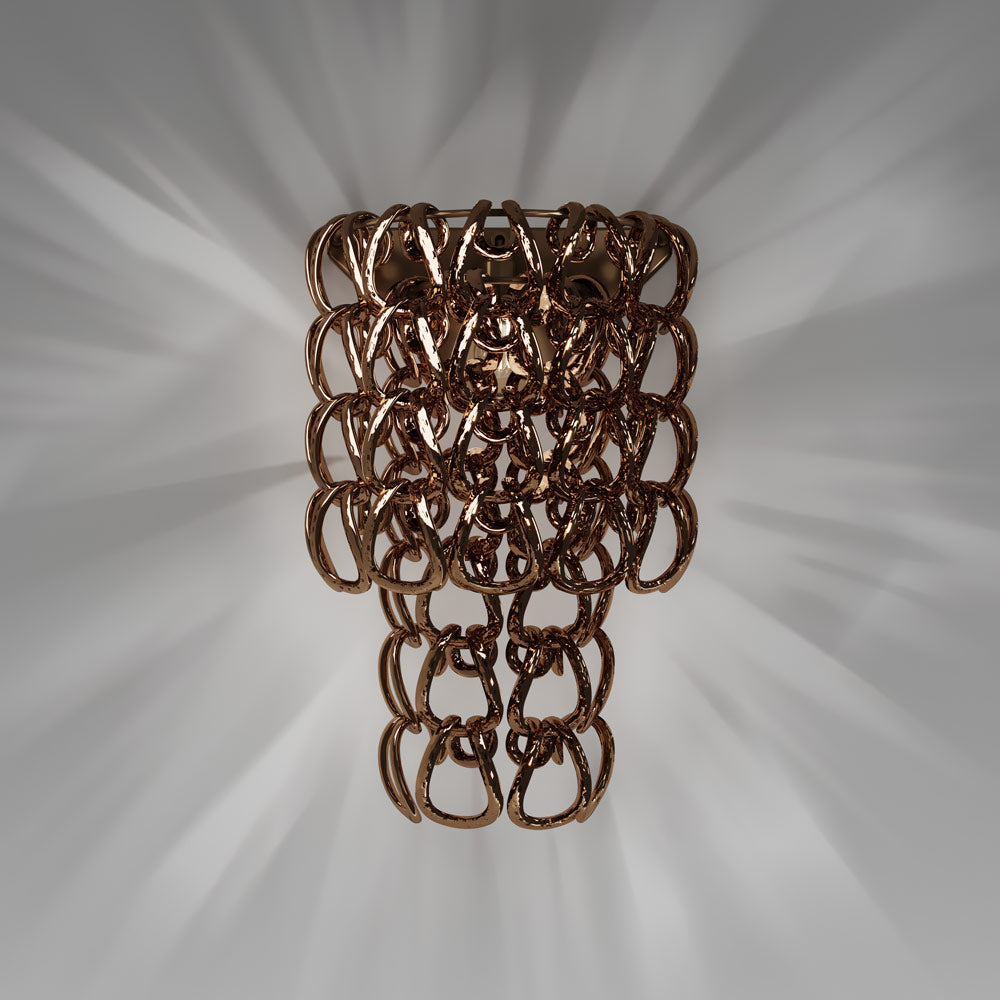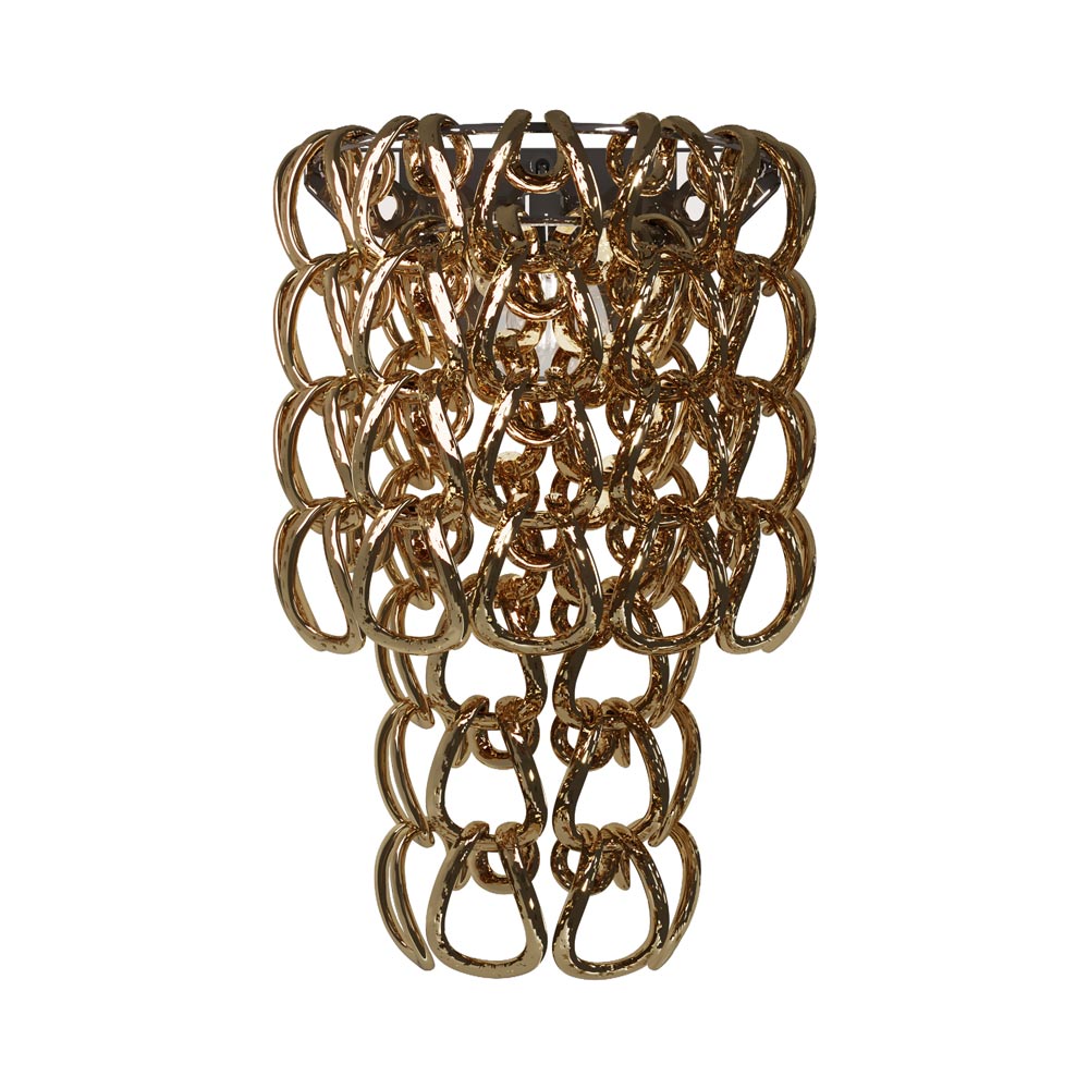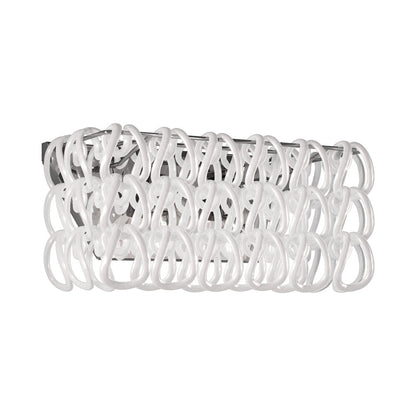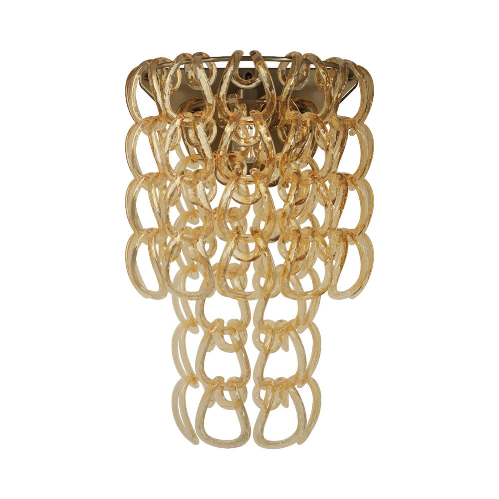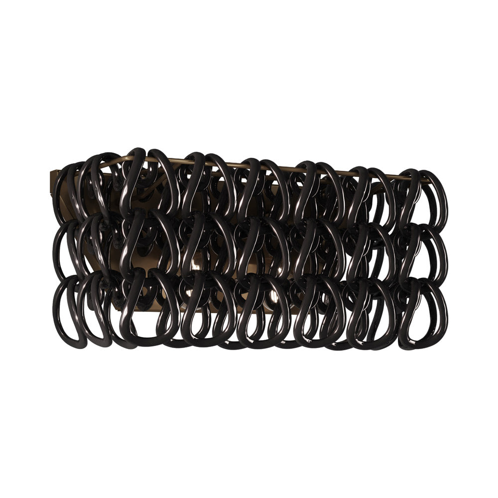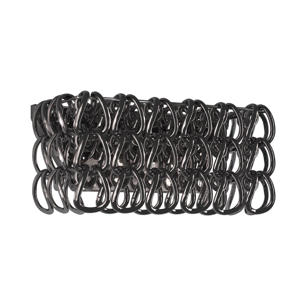 Work the Giogali Wall Light from Vistosi into a stylish interior setting, embracing the reflective power of glass in lighting and a striking industrial vibe. Chain-like links of delicate glass cascade over metal framing, creating a visually enticing effect with extraordinary personality.