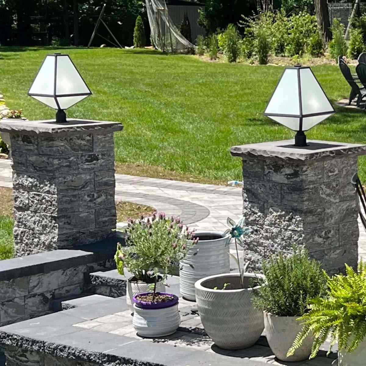 With a workable blend of olde village and maritime design styles, the Glacier Outdoor Post Light from Crystorama ups the game in a yard space, garden, or along a walkway. An iconic lantern motif is modernized with a geometric silhouette, angled and sharp, yet softened with a shapely post holder. Bold black metal framing features a textured effect, with glass panels that give way to a tucked-away light cluster.