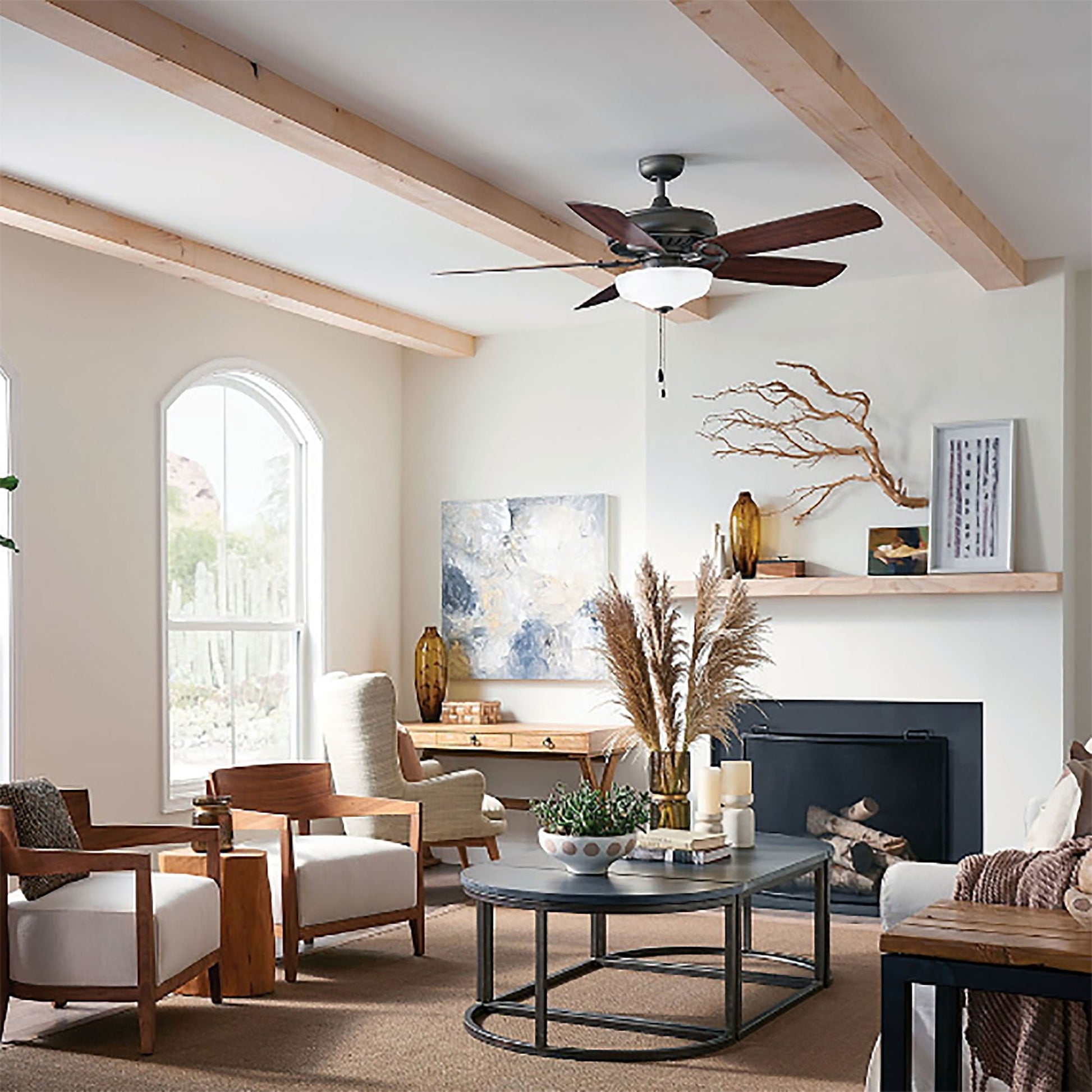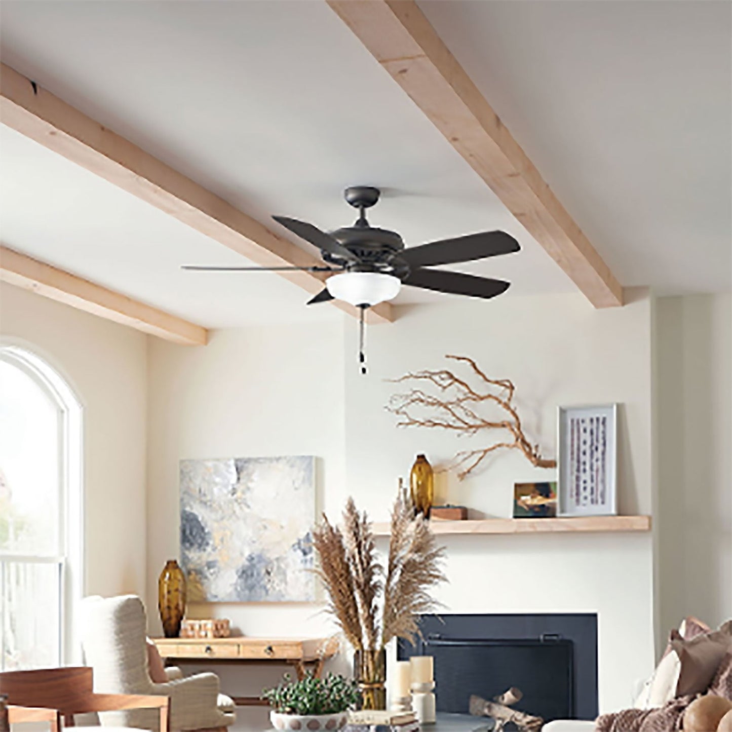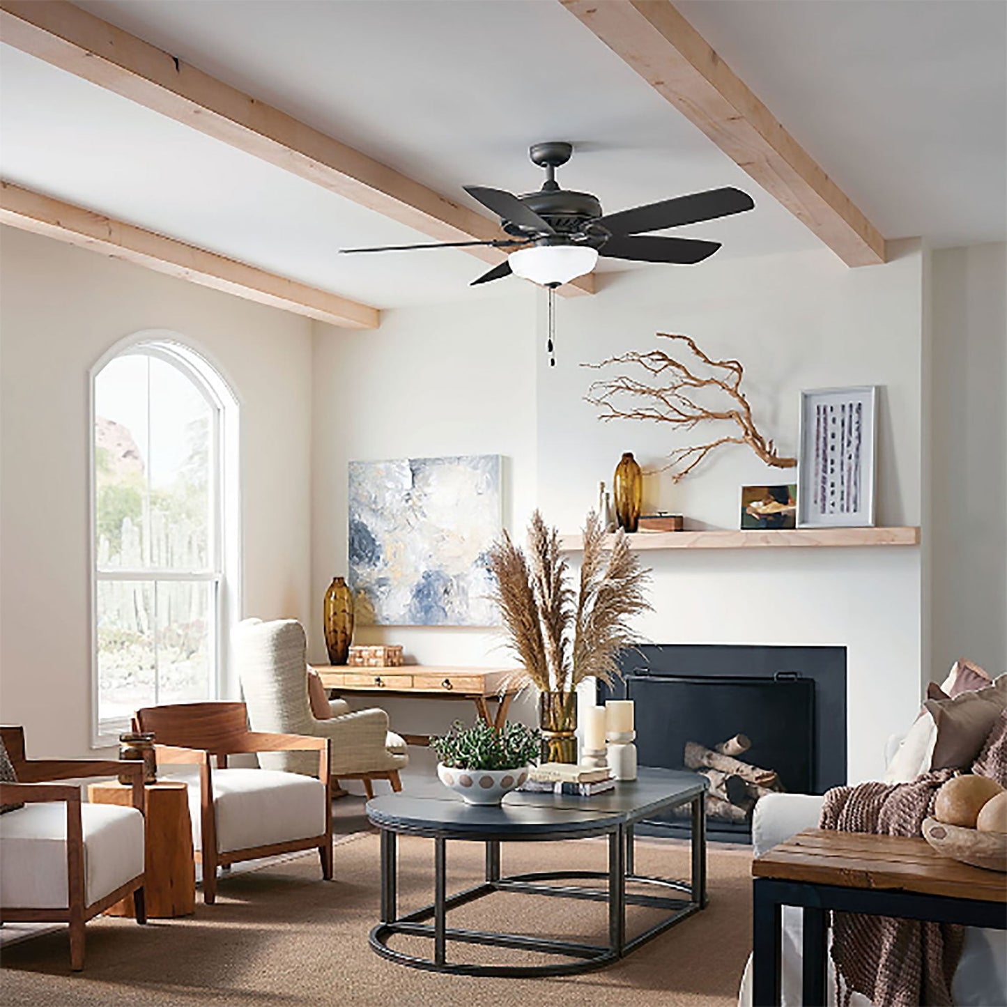 The Gladiator LED Ceiling Fan from Hinkley is the perfect addition to your bedroom or home office. It boasts a seamless transitional design in a range of finish choices and features five blades for excellent air movement and a light kit for energy efficient illumination.