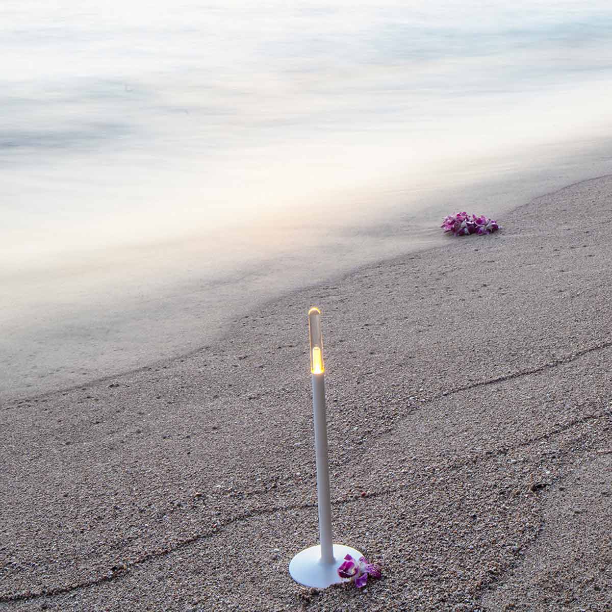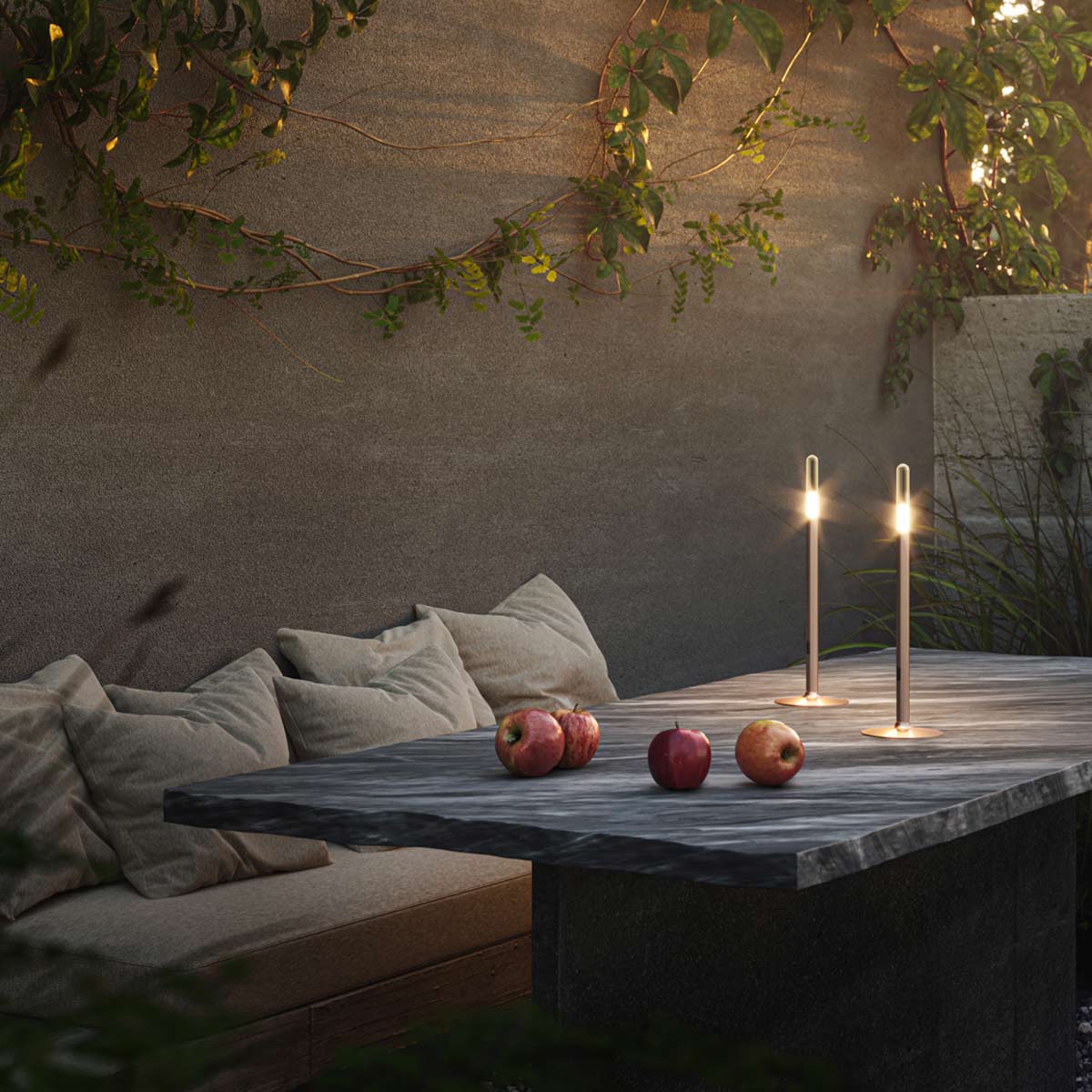 Inspired by a classic taper candle and updated for modern living, the Glim Outdoor LED Portable Table Lamp from IP44.DE is an ingenious design with a magnetic base, allowing you to remove the light from its base and attach it to a metal surface. Its slim, sleek silhouette is perfect for a patio coffee or dining table, allowing you to create a custom arrangement of illumination.