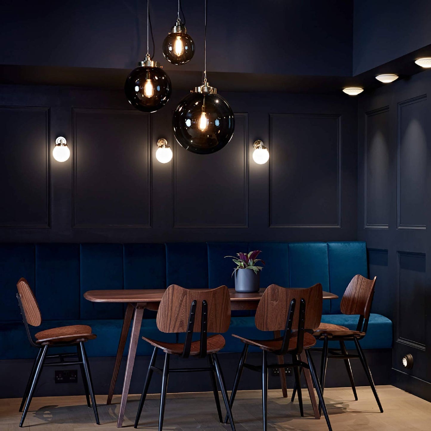 Enrich a transitional space from the celebrated retro vibe of a light fixture with lasting design creds. The Globe Pendant Light from Original BTC delivers a dramatic style statement with its festive glass globe affixed to intricately detailed metal framing. Implanted within each globe is an exposed squirrel cage light bulb adds a more nuanced contemporary motif.
