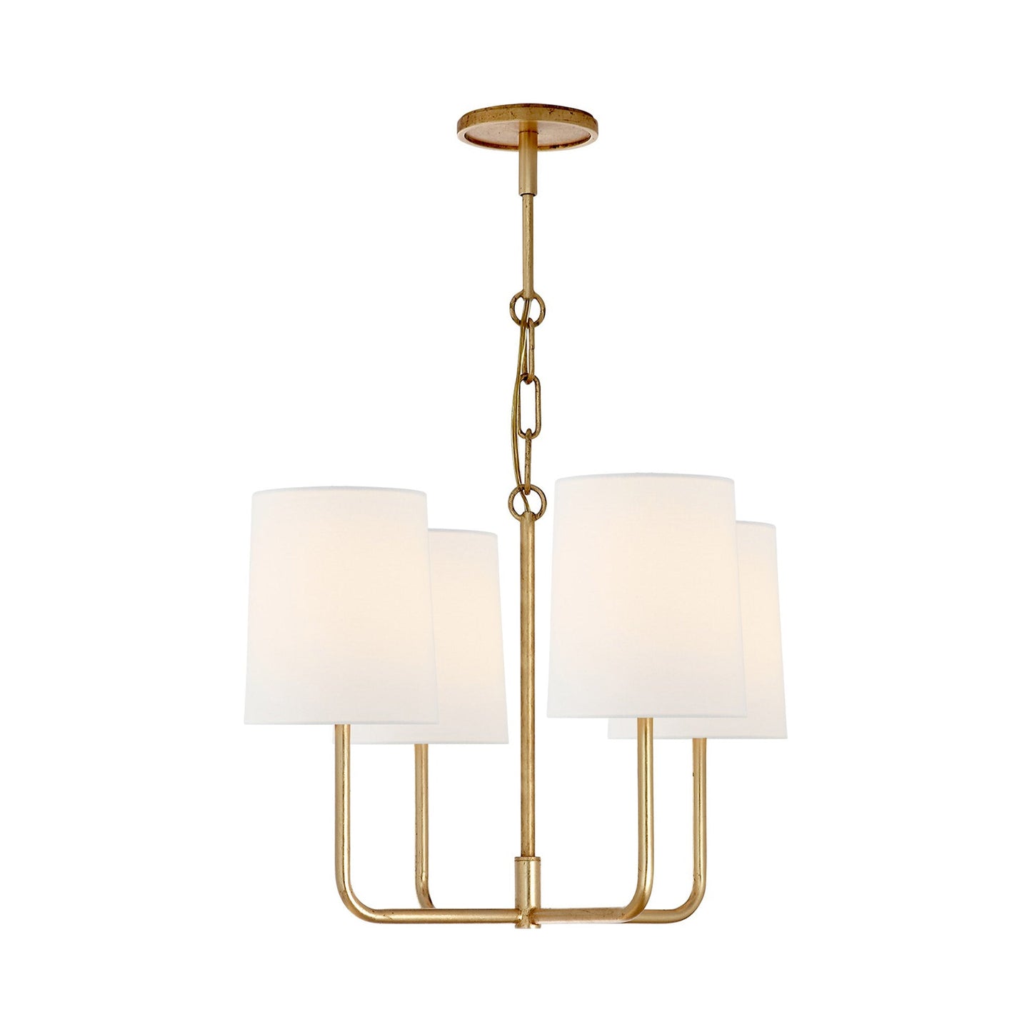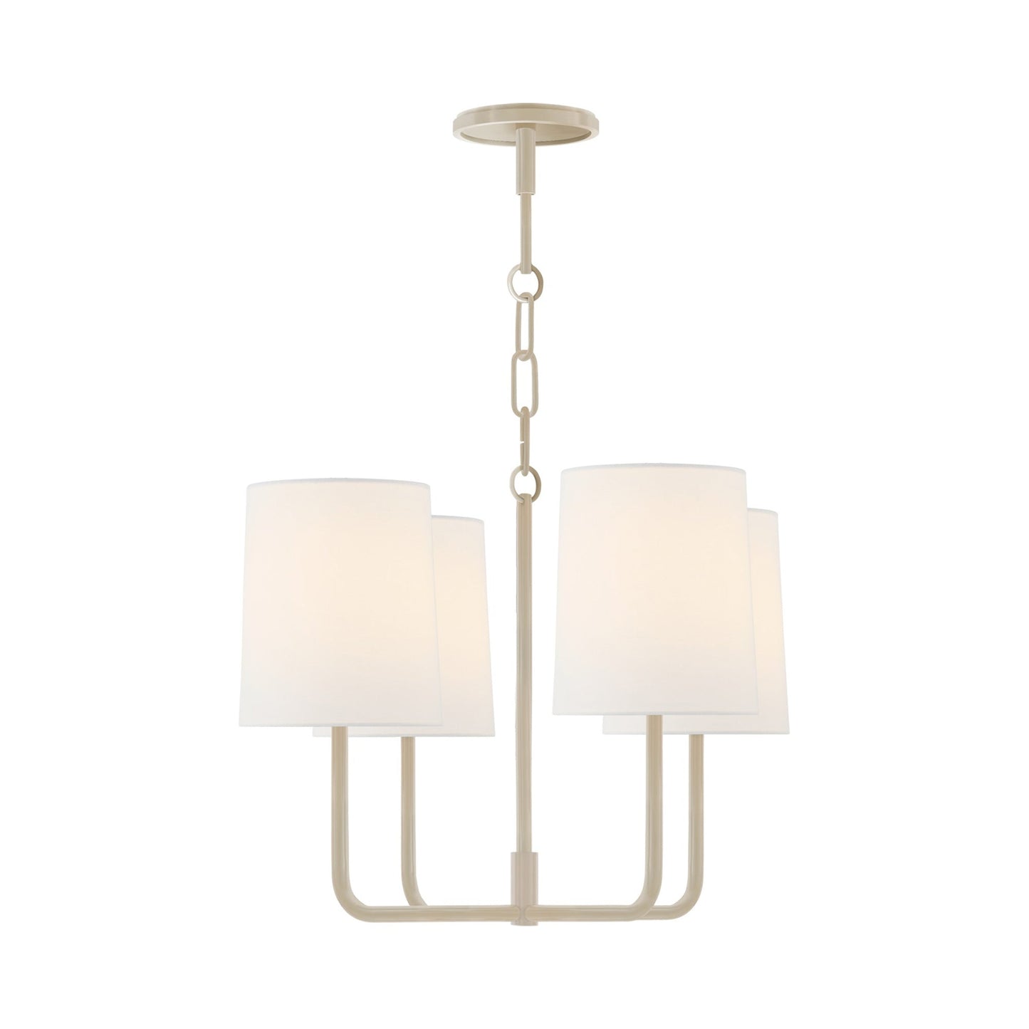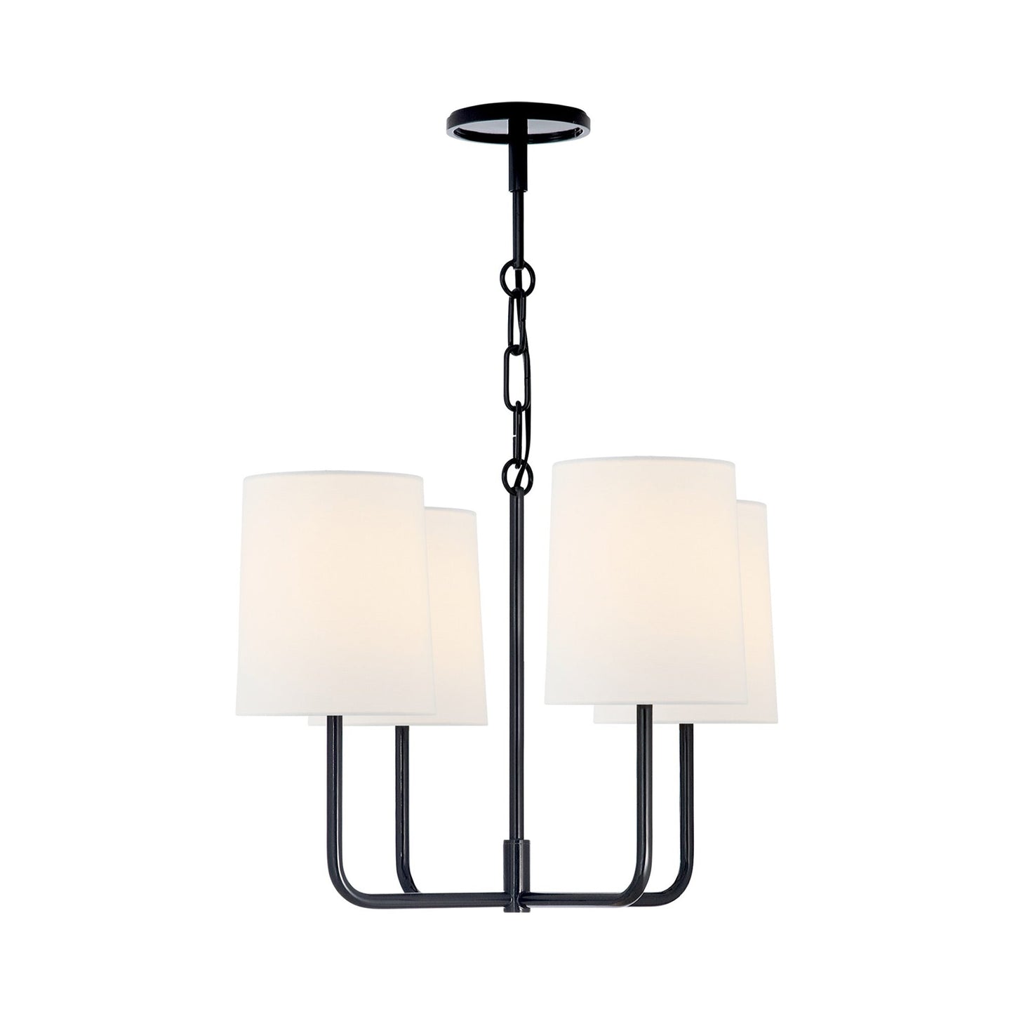 Four arms display a classic candelabra design on the Go Lightly Chandelier from Visual Comfort Signature. This piece pulls together small dining looks overlooking the cityscape.