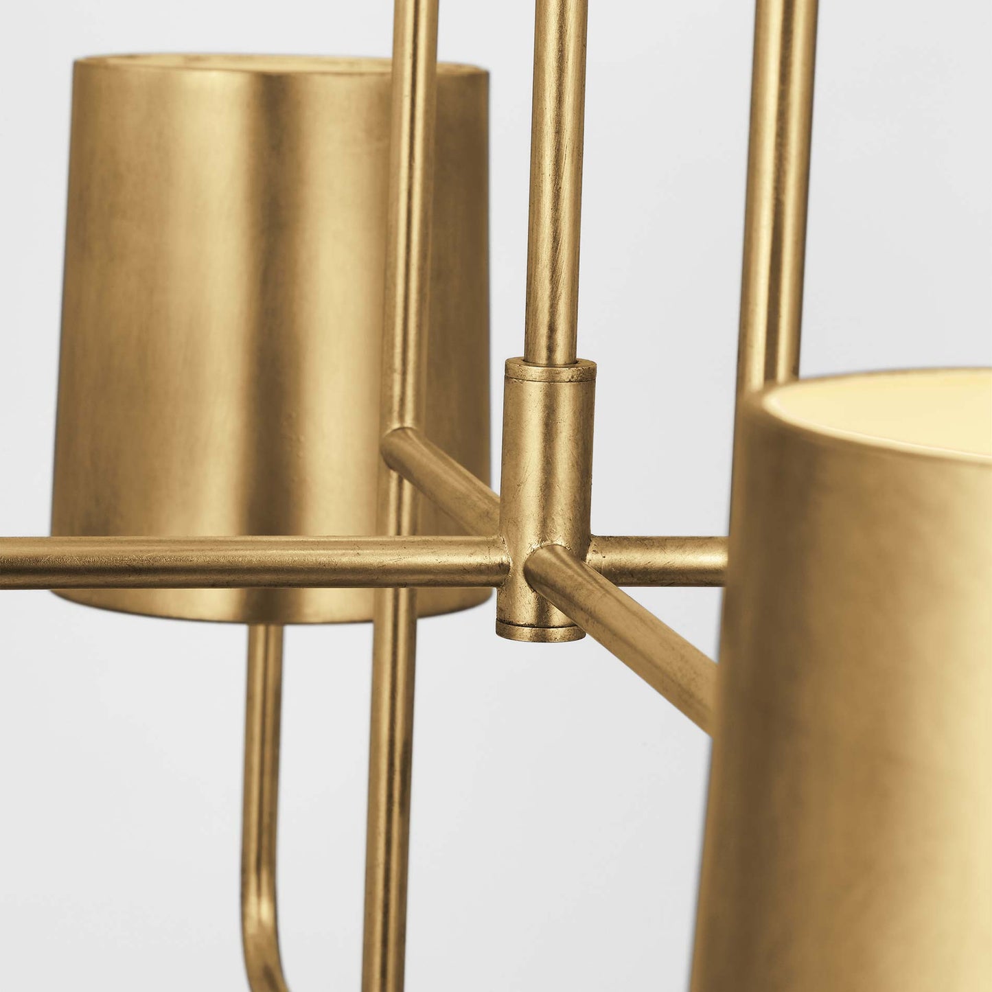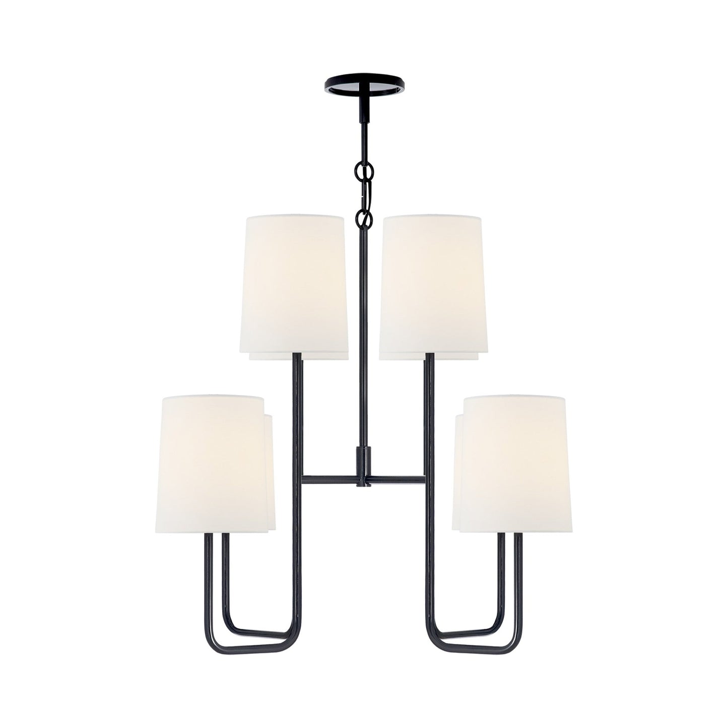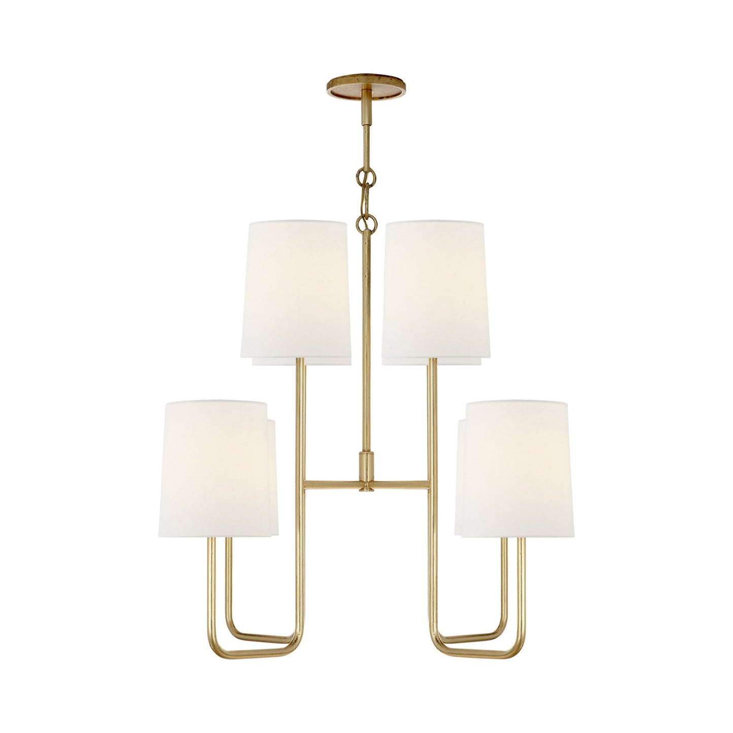 Four arms display a classic candelabra design on the Go Lightly Chandelier from Visual Comfort Signature. This piece pulls together small dining looks overlooking the cityscape.
