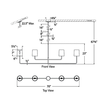 • 4-Light: 70"W X 23"H; 67.76" max height