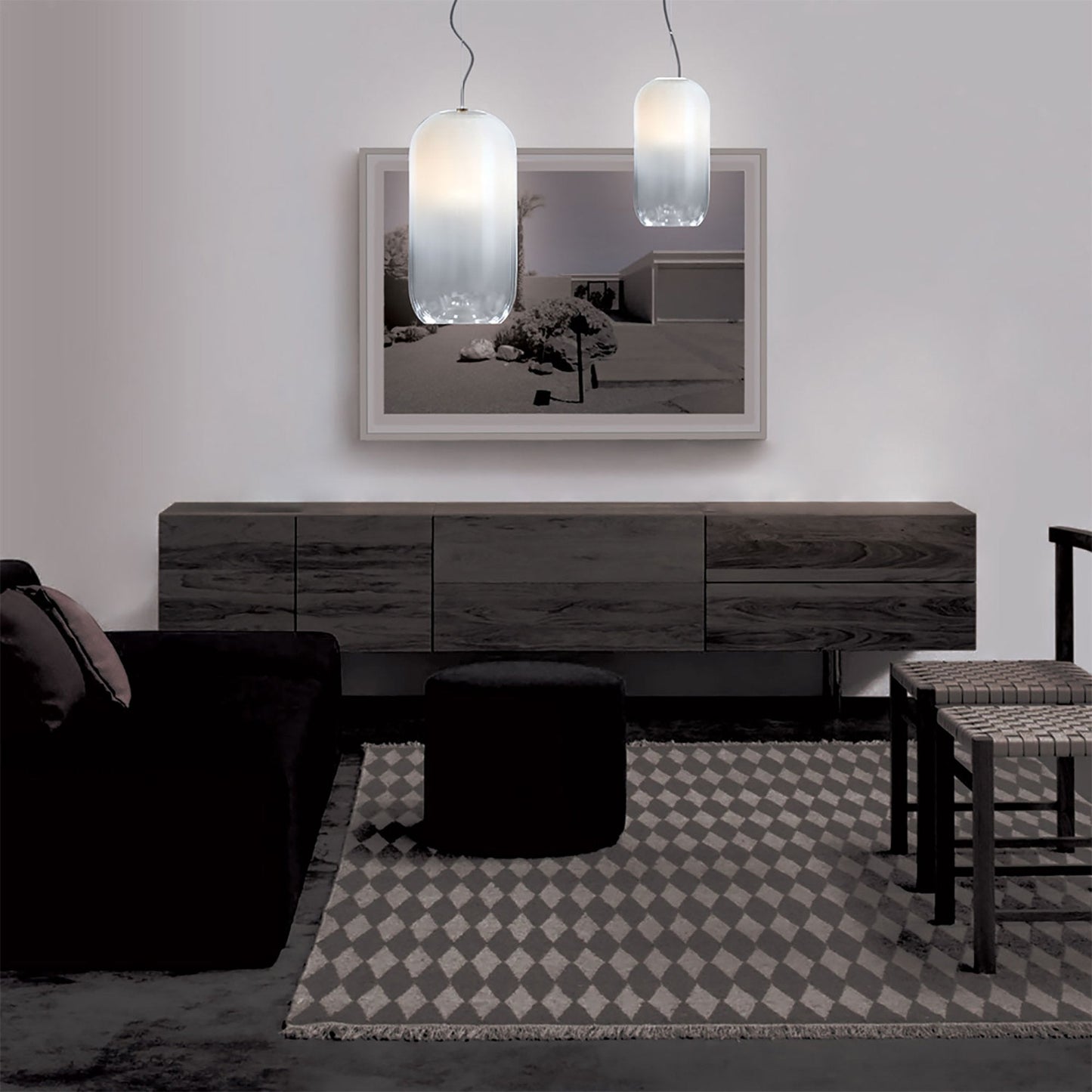 Infused with artistry and elegance, the Gople Mini Pendant Light from Artemide is a striking choice alone or in series. It's a statement piece over a powder room vanity, or adds refined character and color to your kitchen island.