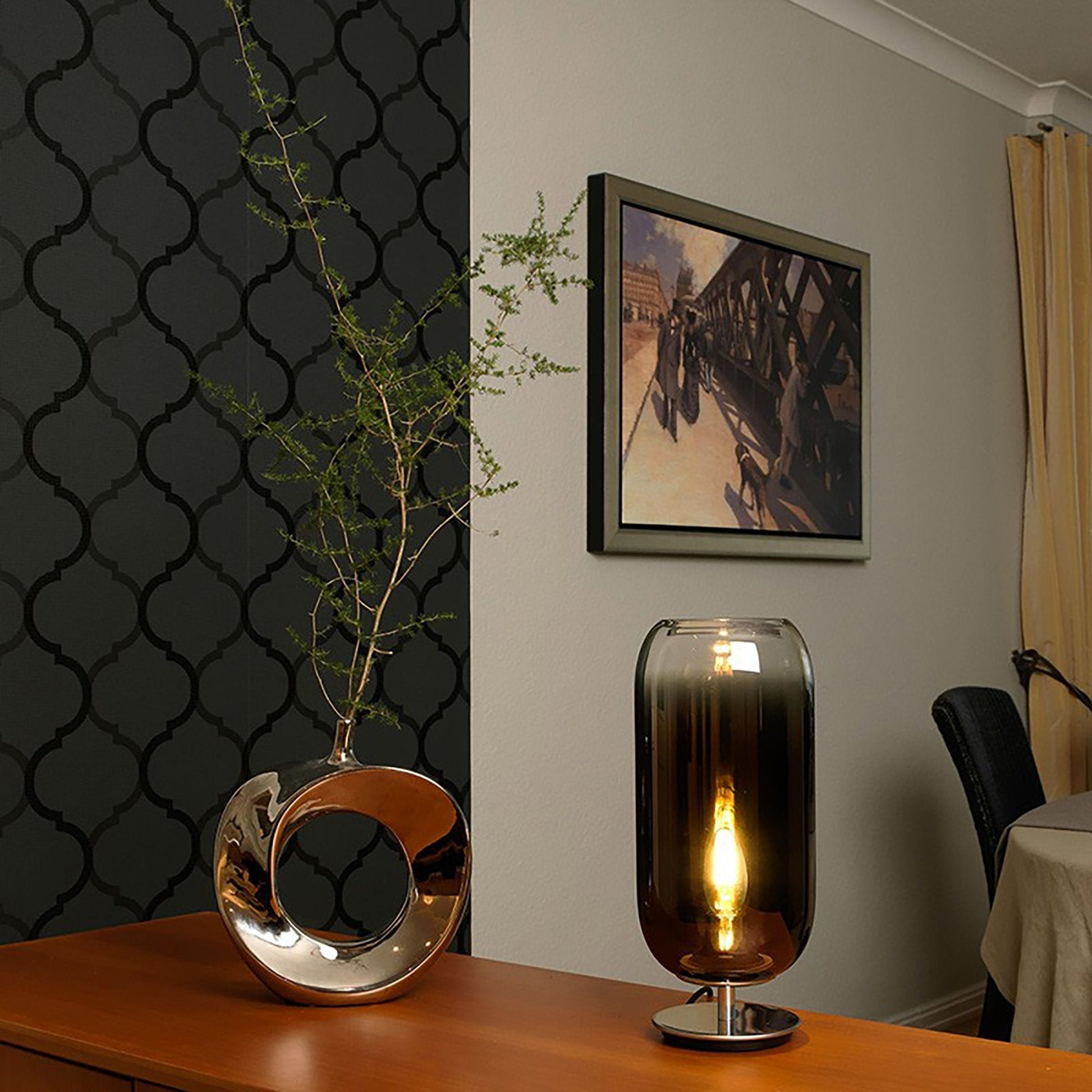 Perfectly rounded edges and beautiful color highlight the handblown glass shade on this contemporary Gople Mini Table Lamp from Artemide.