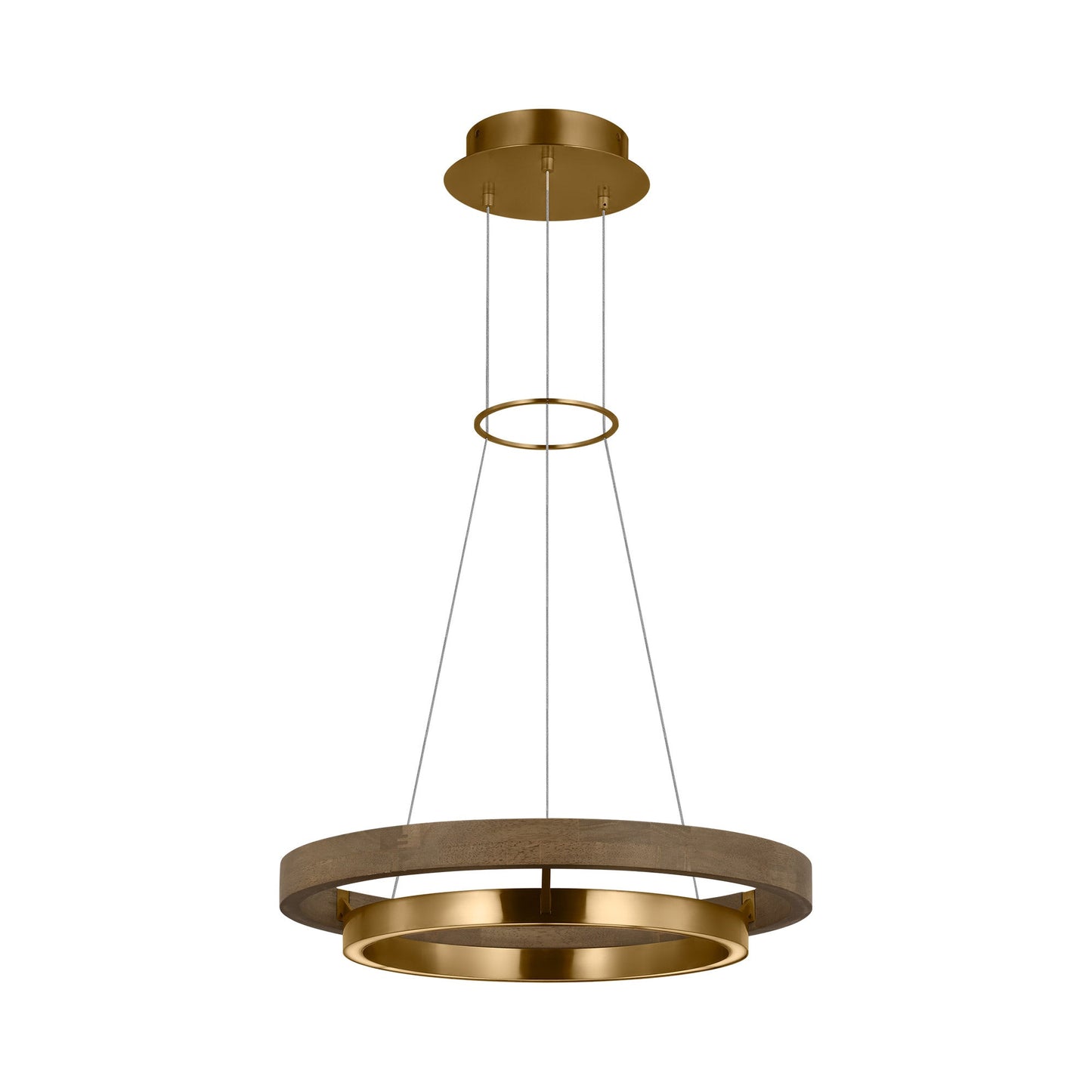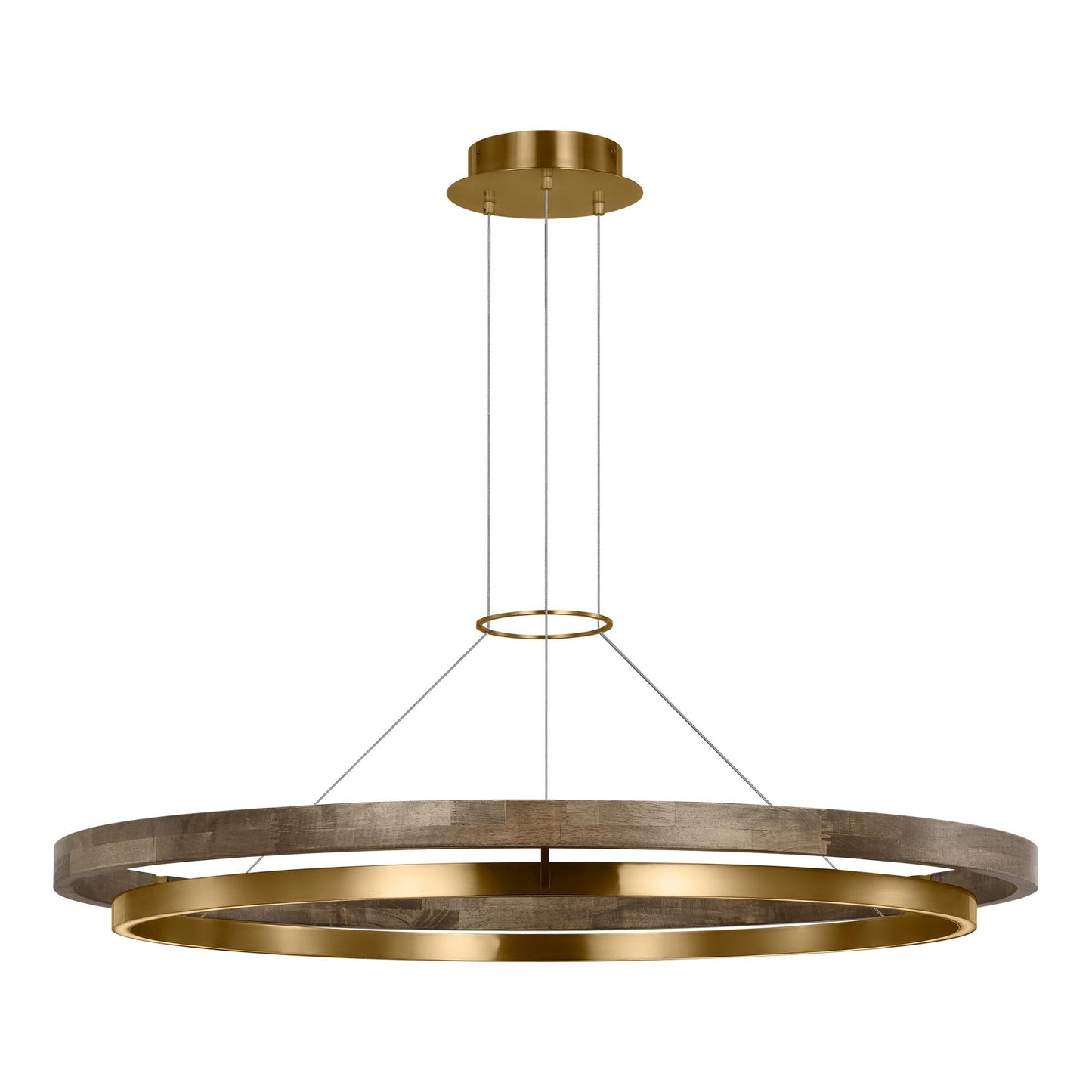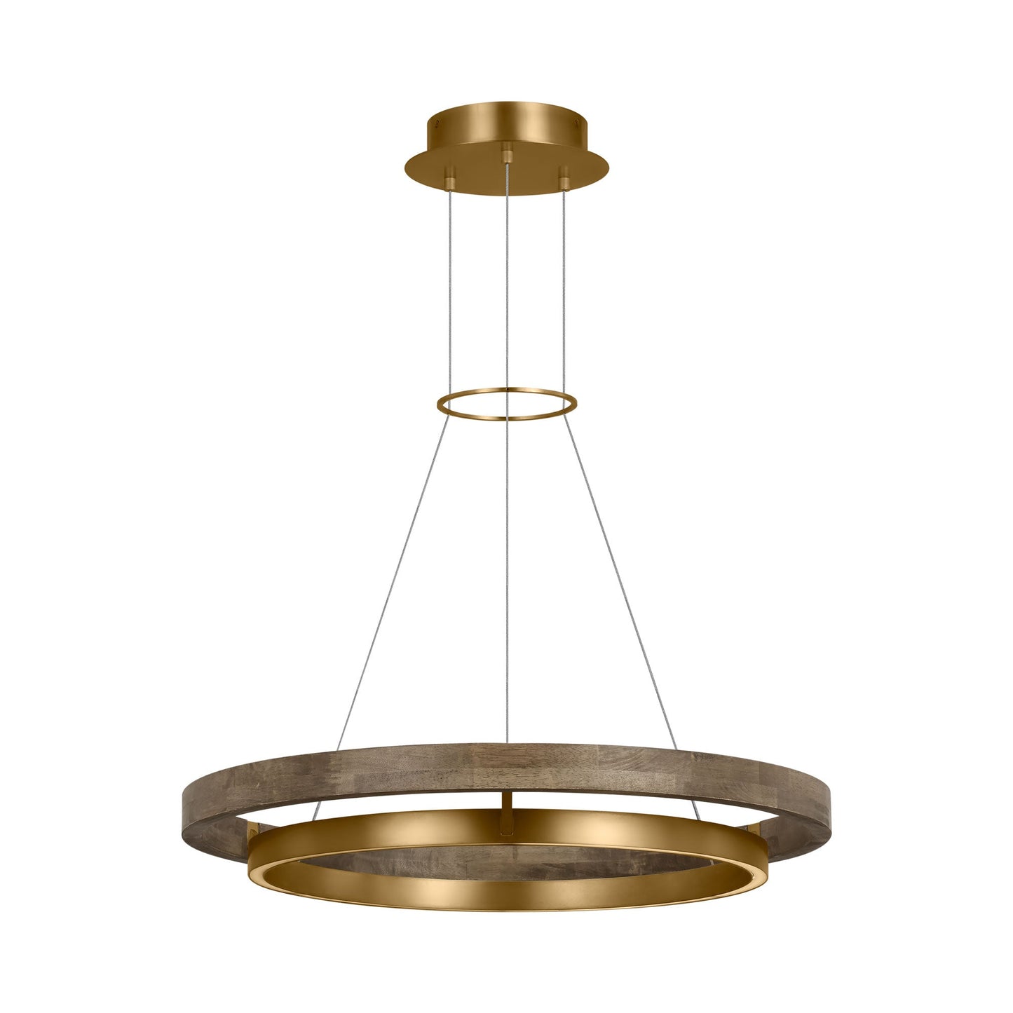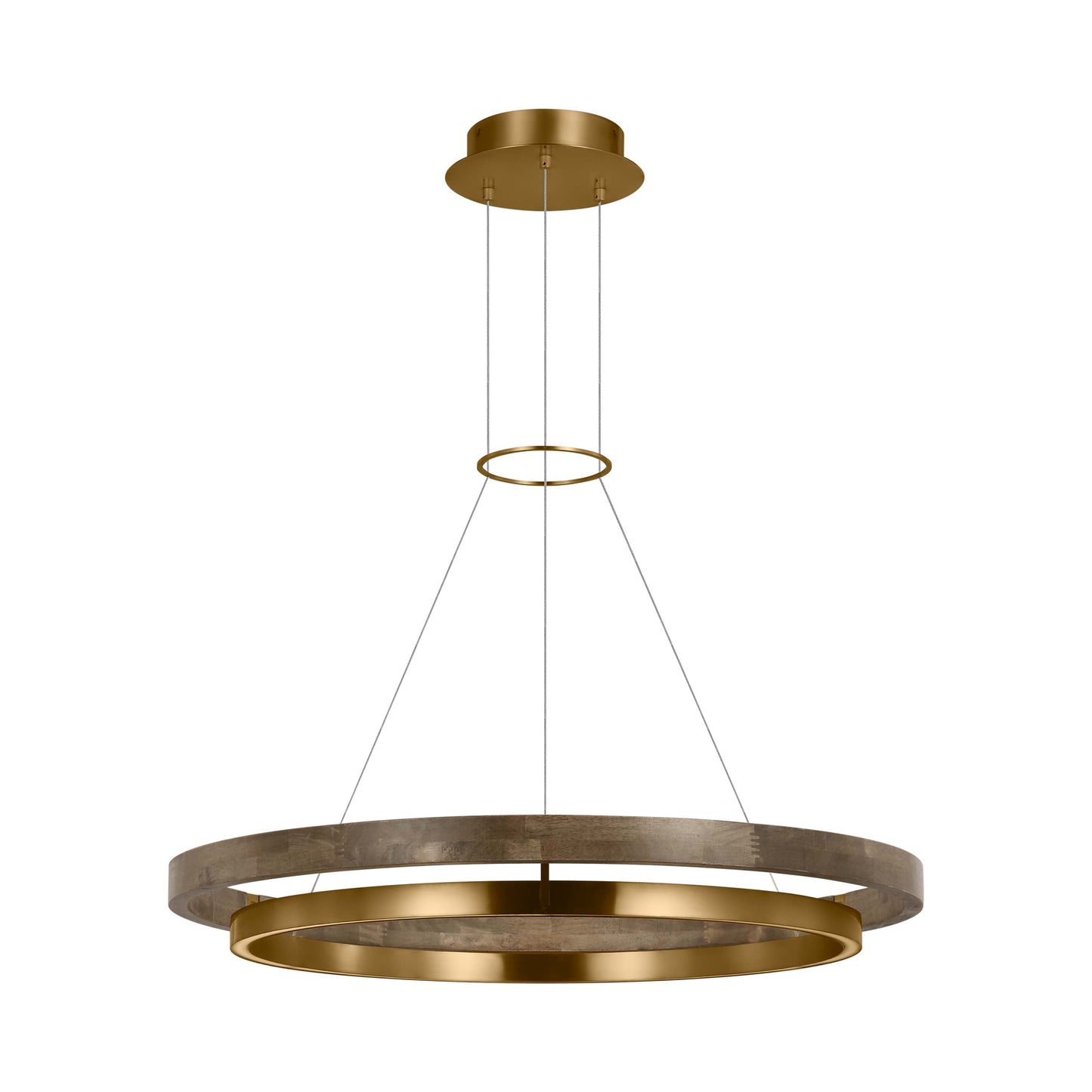 Grace LED Chandelier by Sean Lavin for Visual Comfort Modern is designed with two rings that illuminate this contemporary chandelier. A large weathered oak outer ring has organic texture complemented by a decorative black inner ring housing gently diffused upward and downward LEDs. Featuring integrated LED technology on the inner ring, the Grace chandelier provides a graceful halo of light. All aged brass finish also available. Offered in two large diameters, 30" and 36", to highlight your space. Lamping options are compatible with most dimmers. Refer to the Dimming Chart for more information.