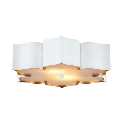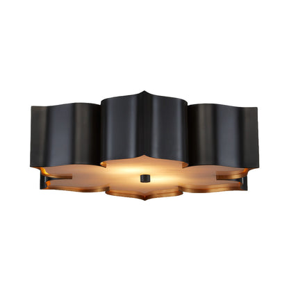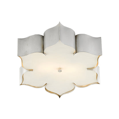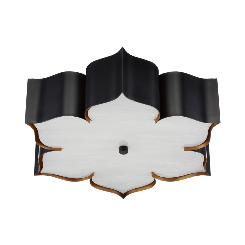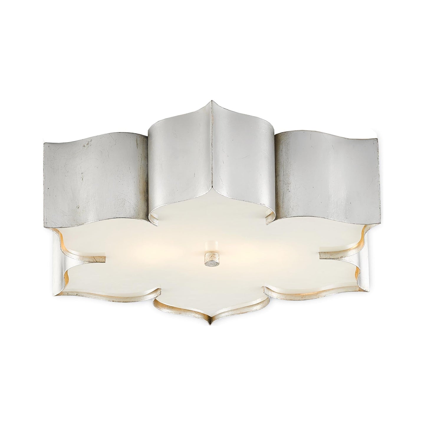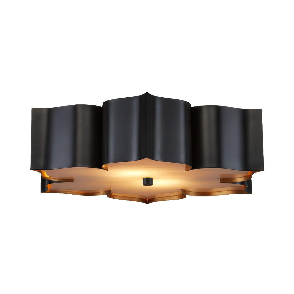 Exquisite craftsmanship and organic design are in full display with the Grand Lotus Flush Mount Ceiling Light from Currey and Company. Sheets of wrought iron receive a glowing antique gold finish and are fashioned to create the silhouette of a lovely lotus bloom. An acrylic diffuser softens its illumination while creating a soothing sense of elegance.