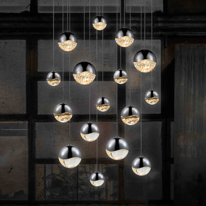Form a stunning gallery-inspired aesthetic in a modern space with the chic Grapes® 16-Light Square LED Multipoint Pendant Light from Sonneman Lighting, with globe lenses made of glass and metal suspend to create a compelling visual, adding the mood-enhancing convenience of dimmable light levels.
