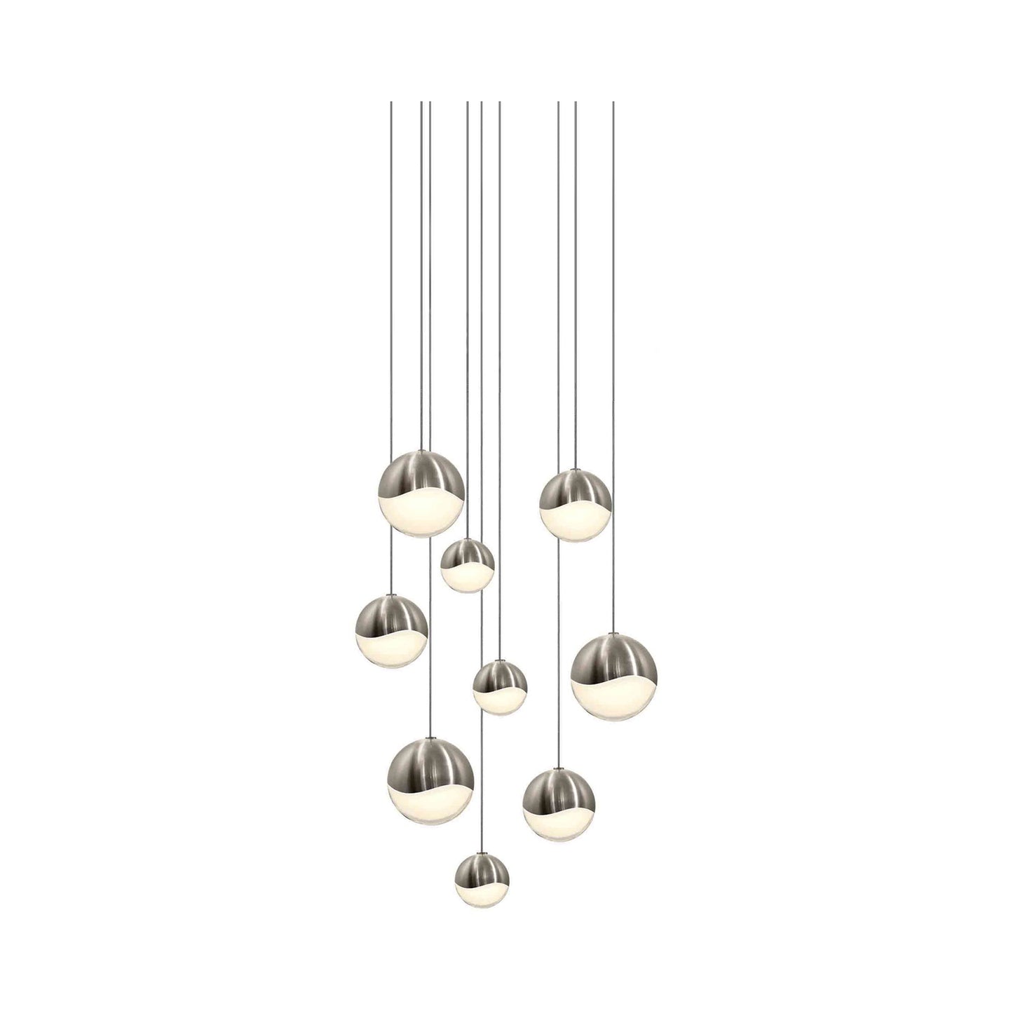 Indulge in a holiday-inspired motif year-round with the Grapes® LED Multipoint Pendant Light from Sonneman Lighting and its collection of elegant glass and metal bulbs dangling from wires and offering soft illumination in a contemporary space.