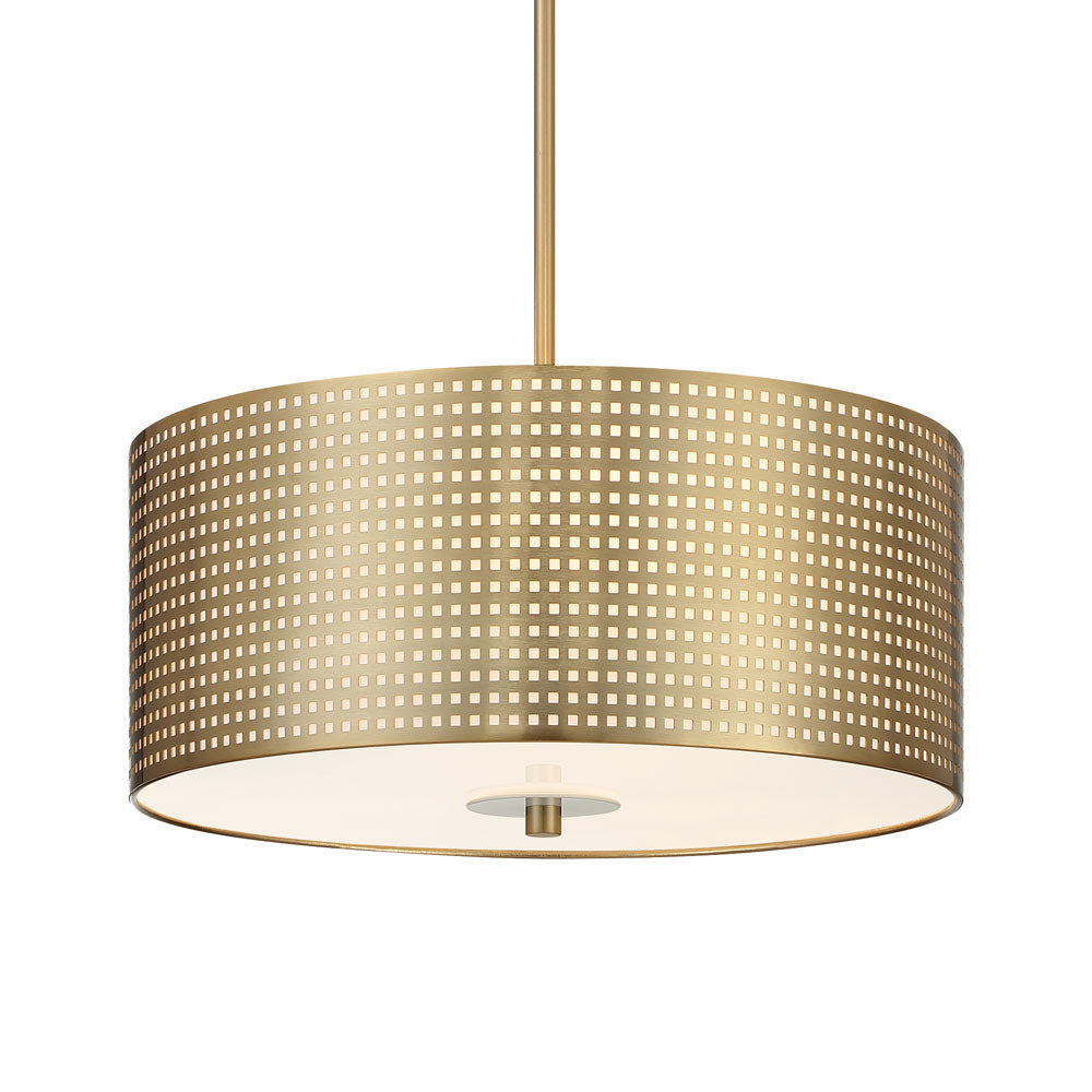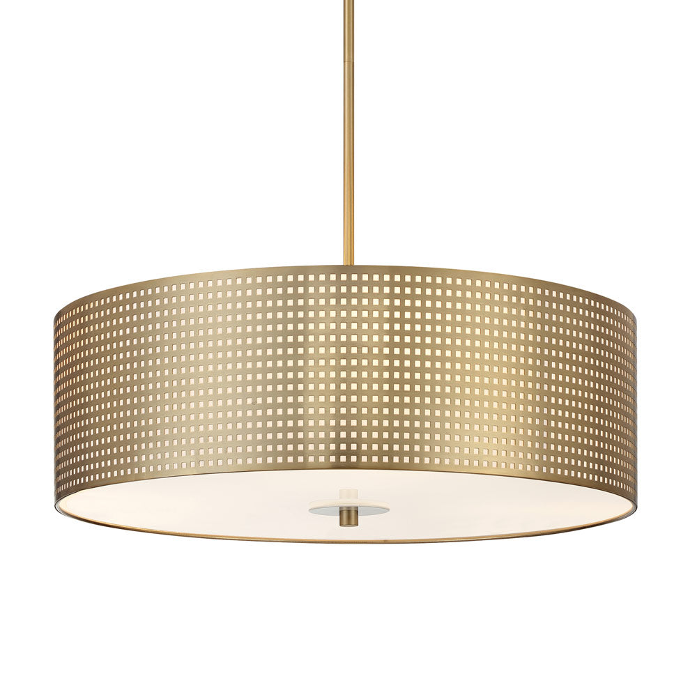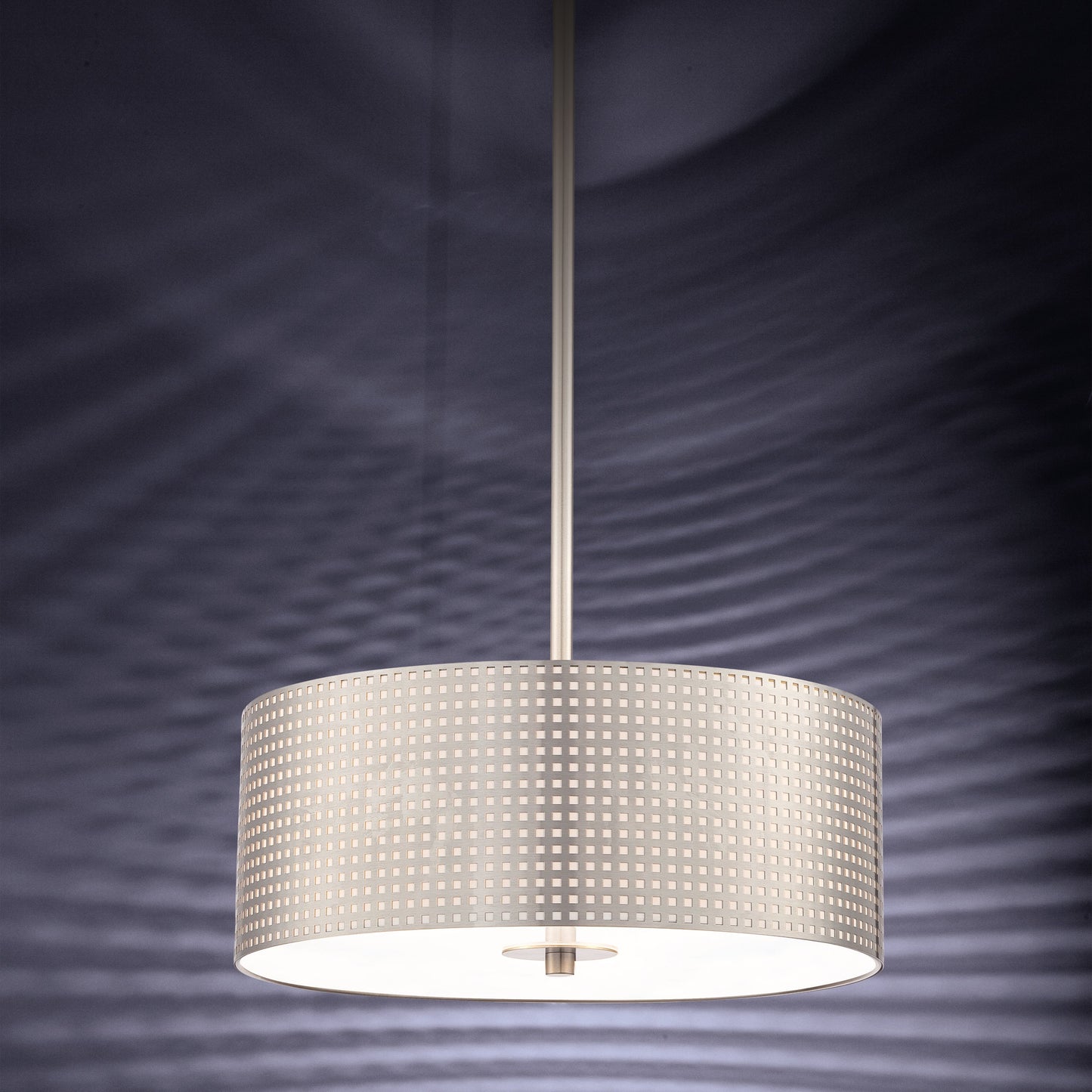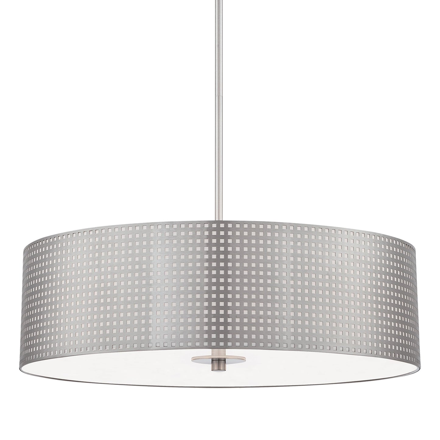 Delicate perforations create a grid structure for the structured shade of the contemporary Grid Pendant Light from George Kovacs.