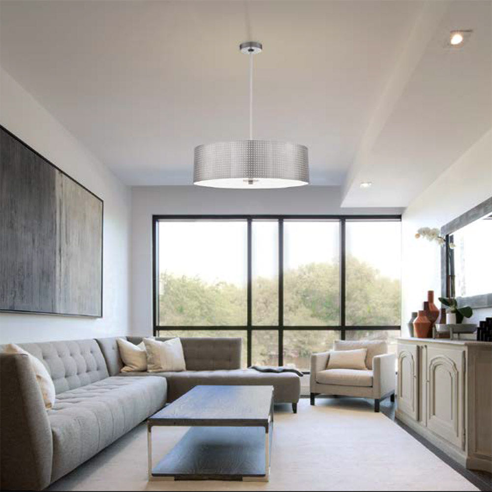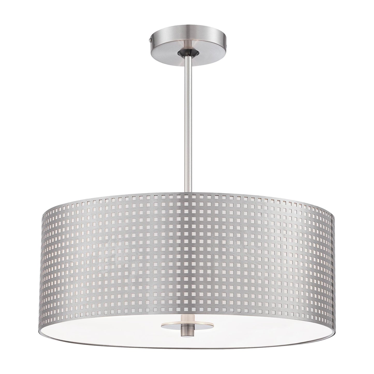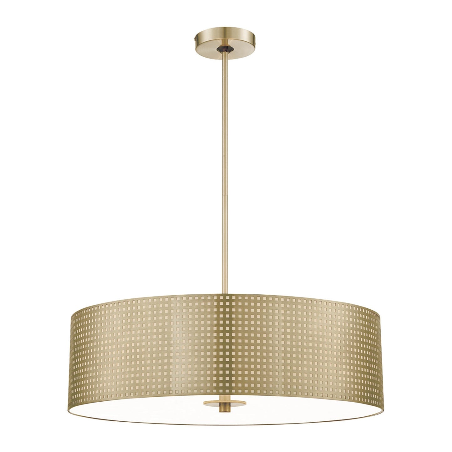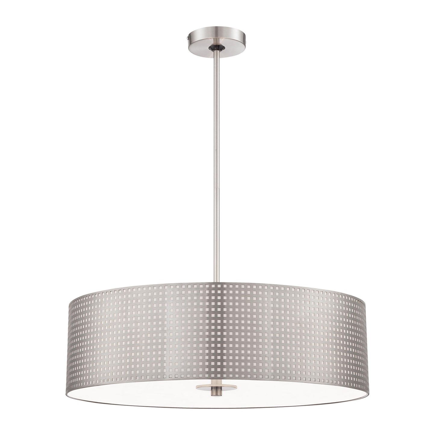 Delicate perforations create a grid structure for the structured shade of the contemporary Grid Pendant Light from George Kovacs.