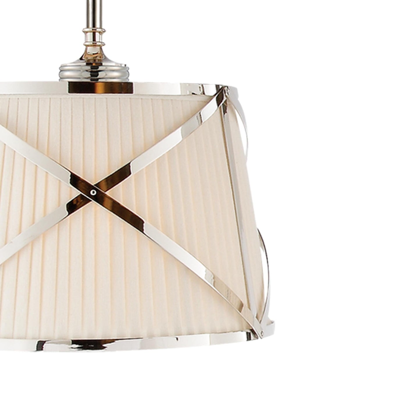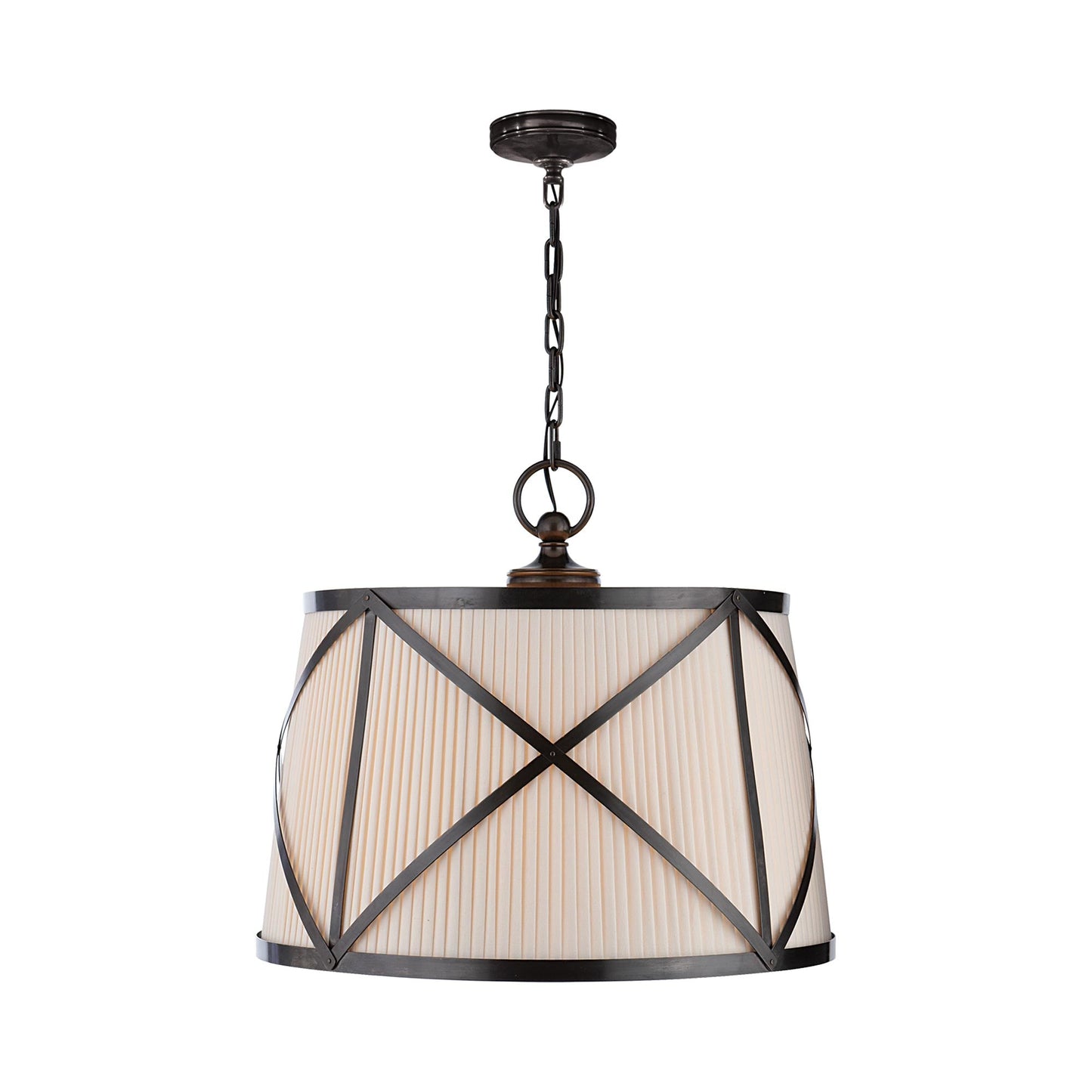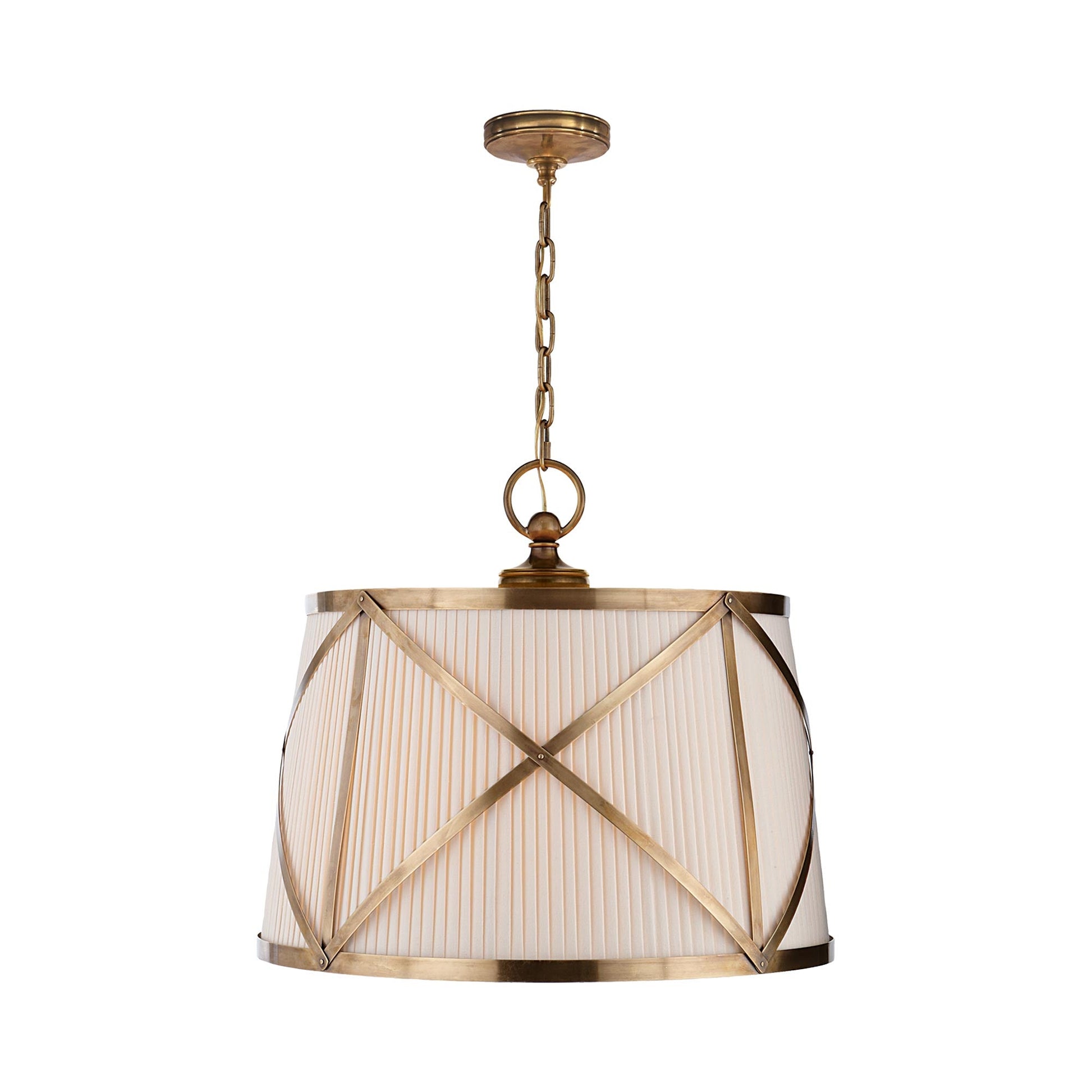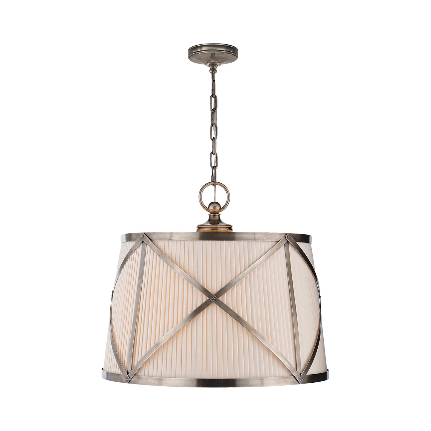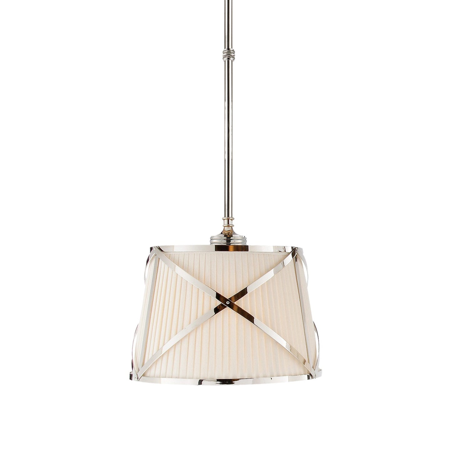 The Grosvenor Pendant Light from Visual Comfort Signature delves into experimental design efforts, culminating in a chic fixture worthy of placement in a visible space. The classic look of an accordion shade is embellished with busy metal strips in a gleaming finish, producing an intriguing source of ambient lighting for a modern dining or living space.
