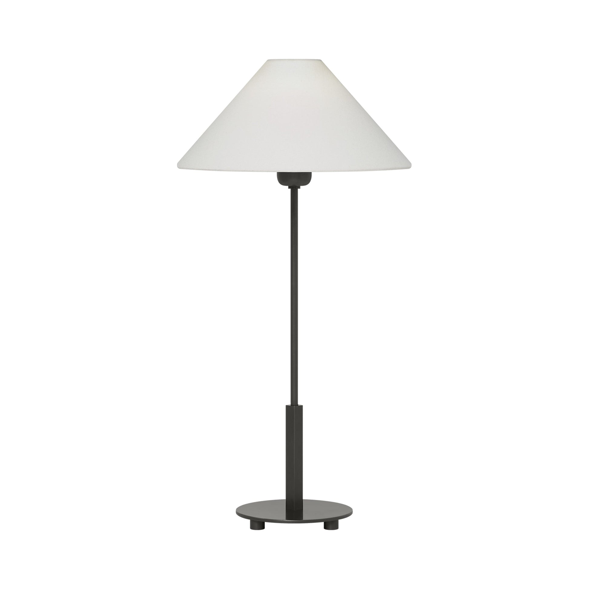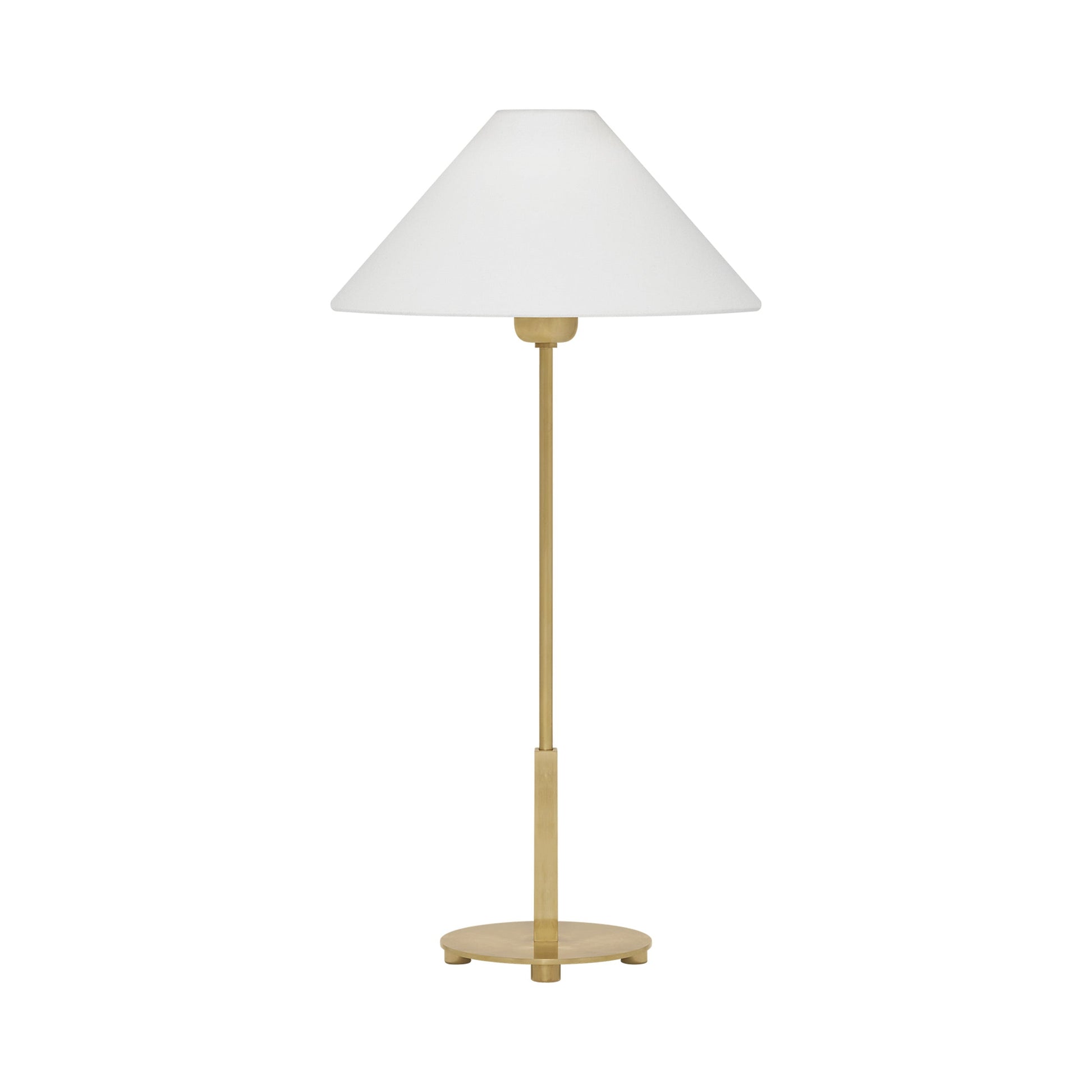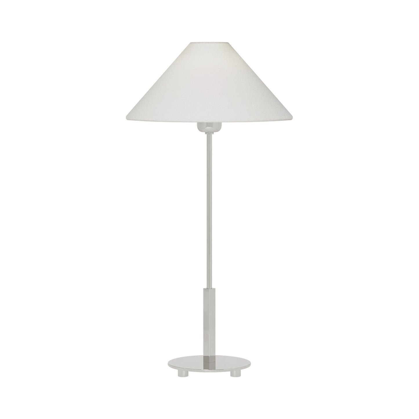 Dabbling in a textural update to minimalism, the Hackney Table Lamp from Visual Comfort Signature makes the most of iconic metal construction. Find versatility in its sleek design, with a slender stem culminating in a thicker lower stem and round base. Artisan impact flows from a chic Eastern-inspired linen shade that filters glowing light.