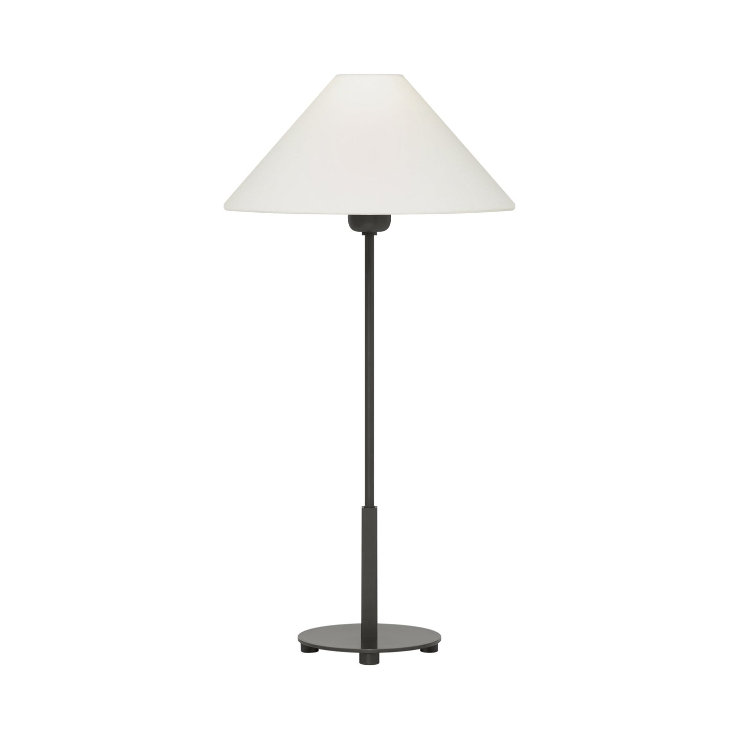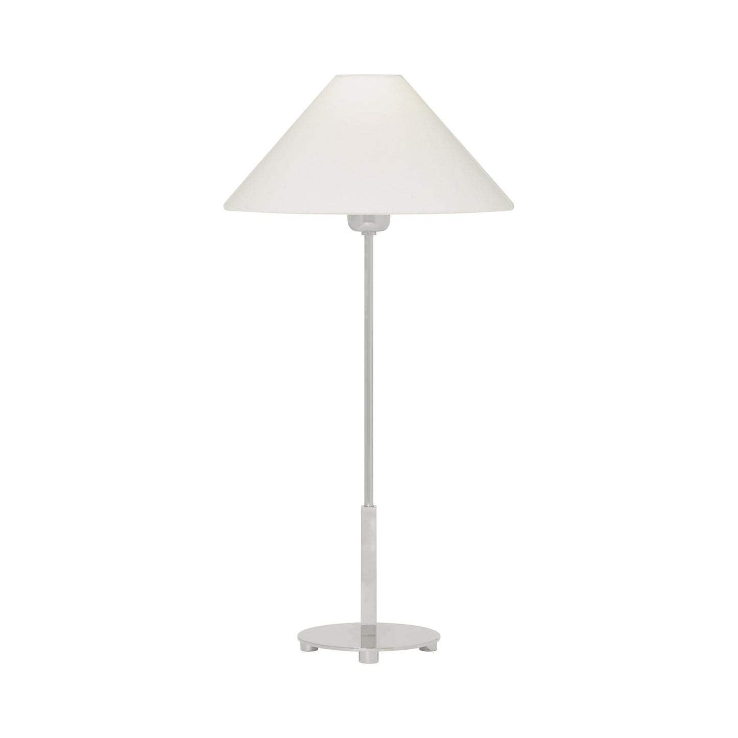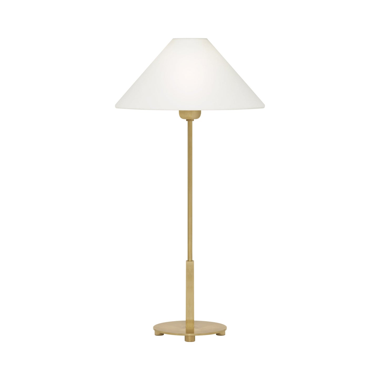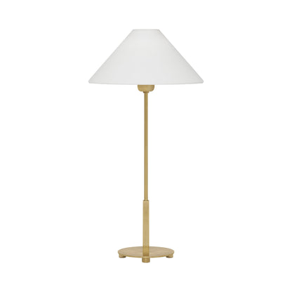 Dabbling in a textural update to minimalism, the Hackney Table Lamp from Visual Comfort Signature makes the most of iconic metal construction. Find versatility in its sleek design, with a slender stem culminating in a thicker lower stem and round base. Artisan impact flows from a chic Eastern-inspired linen shade that filters glowing light.