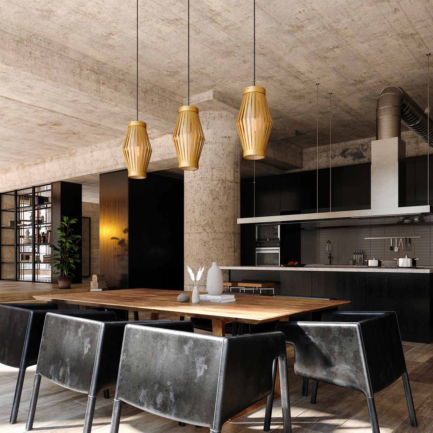 Repurpose the organic artistry of Japanese lanterns with a twist, choosing the Hana Pendant Light from Alora Mood to set the mood in a custom space. Metal embellishes the concave silhouette of a decadent fixture formed of strips that filter light emanating from romantic opal matte glass.