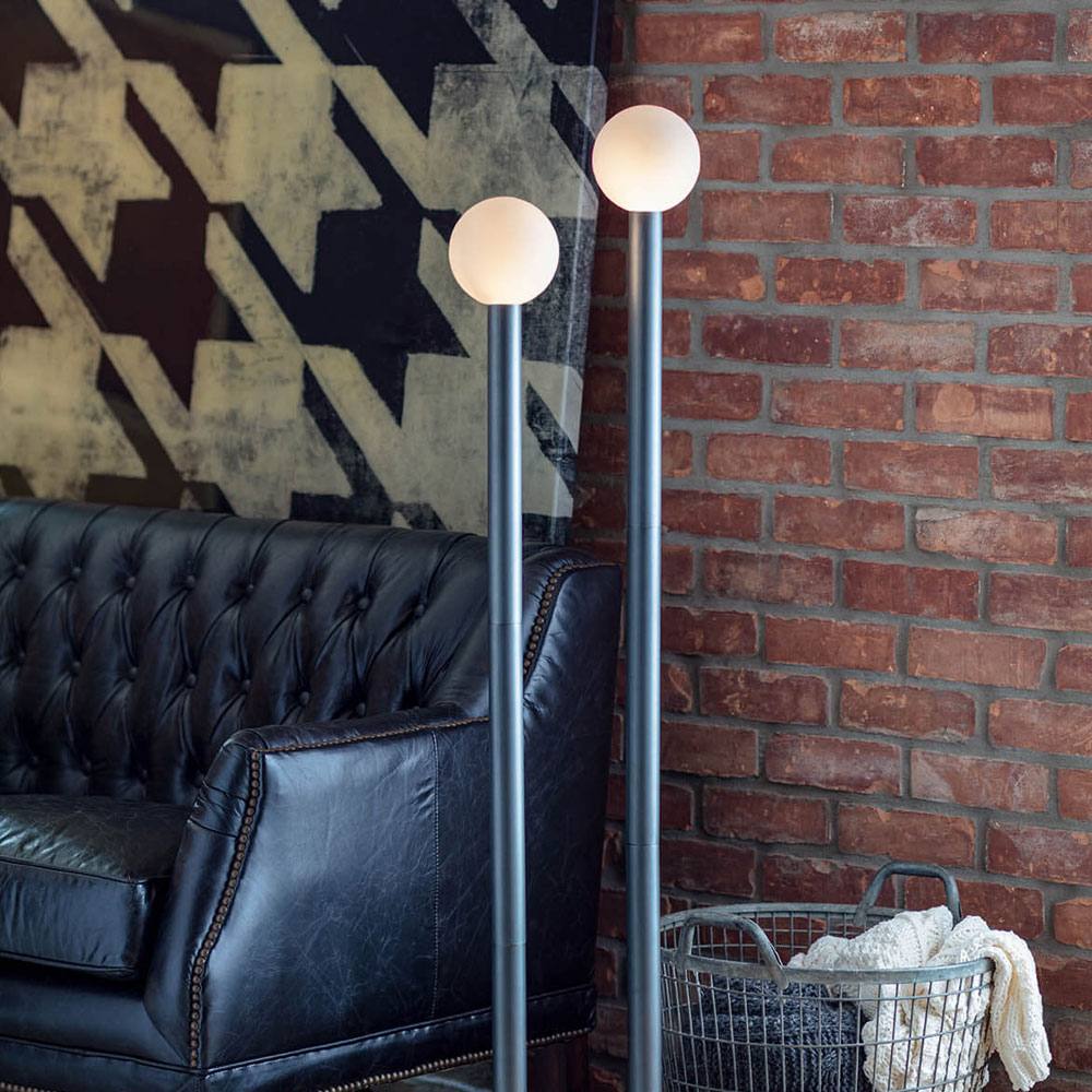 Consider the Happy Floor Lamp from Regina Andrew a source of Art Deco influence ideal for a transitional space. With a two-prong tubular metal frame creating a slender U shape, it's a compelling study in design and a remarkable style element. White glass globes direct light in multiple directions, illuminating a living room or bedroom in pure elegance.