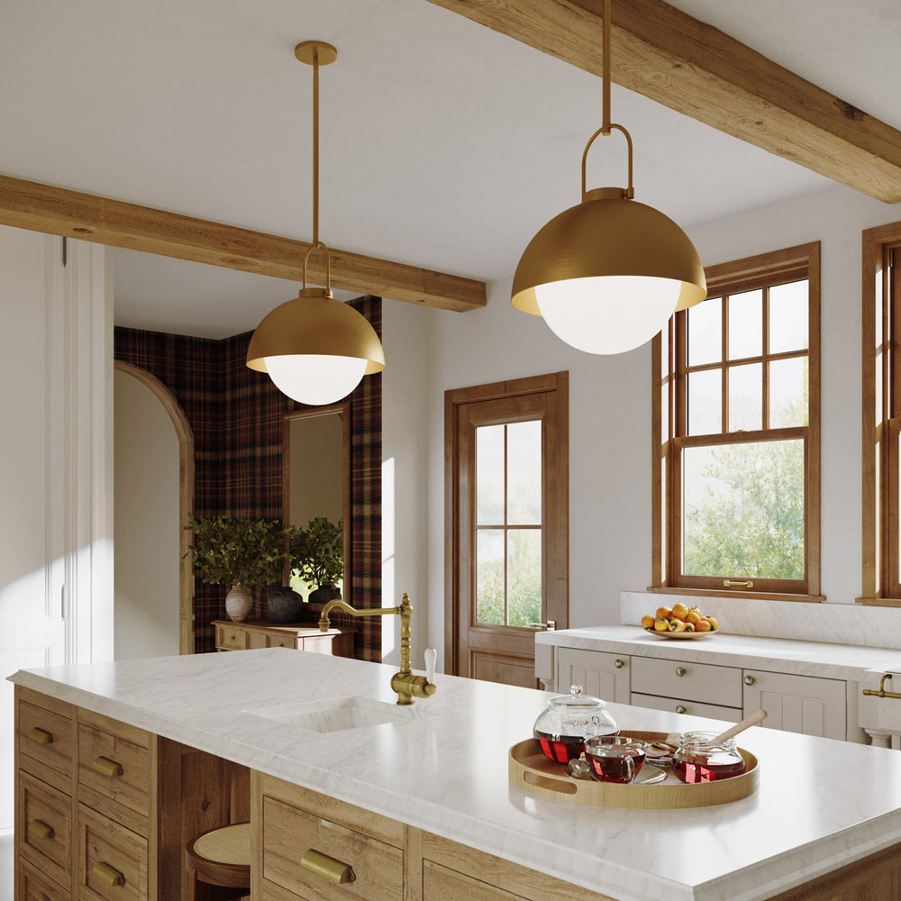 Indulge in farmhouse industrial flavor with a fixture that captures a prominent element of casual décor. The Harper Pendant Light from Alora Mood and its classic metal construction plays with shapes and angles, focusing on a bell silhouette with a semi-dome shade and charming accents that make it a must-have source of ambient lighting.