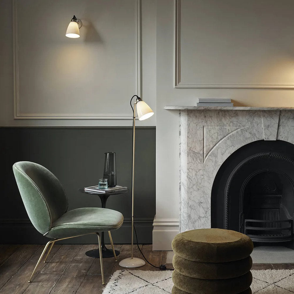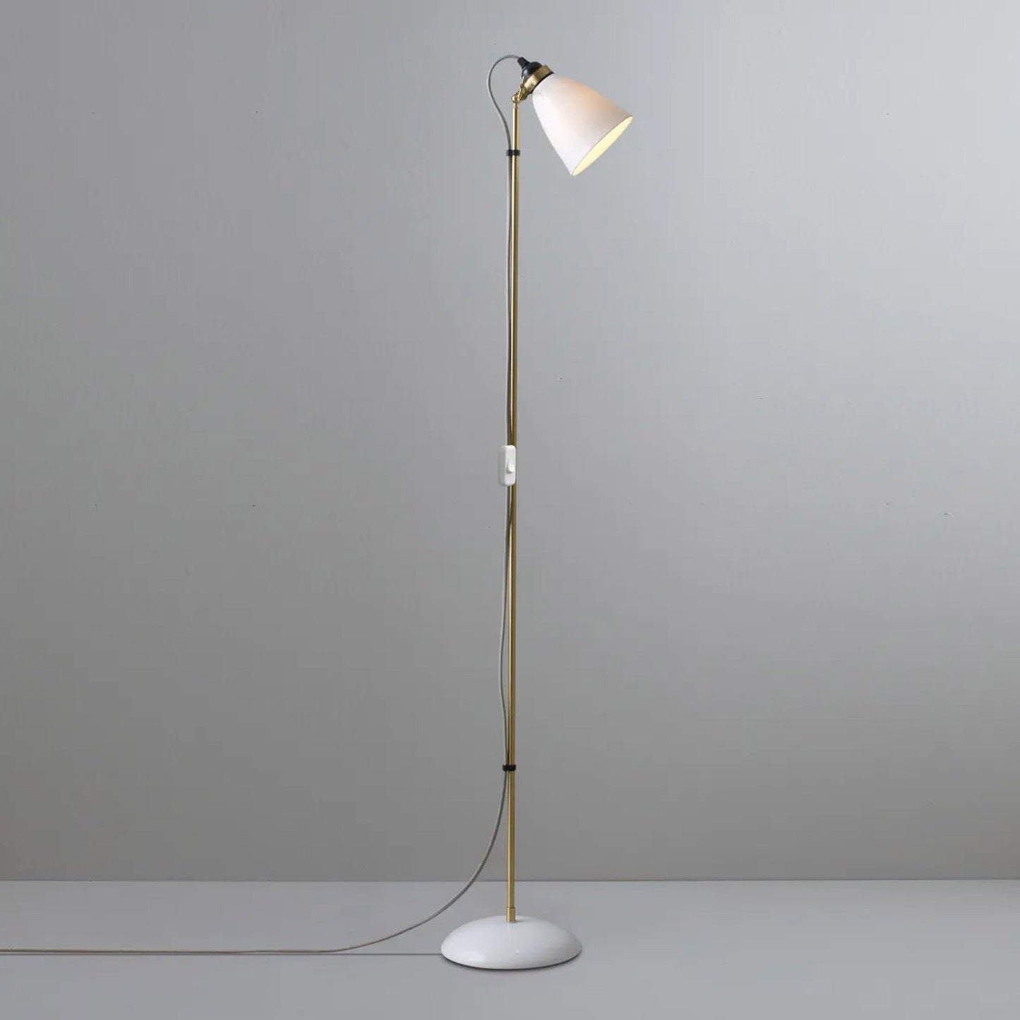 The Hector Floor Lamp from Original BTC creates a transitional approachability to interior lighting, making itself at home in a living room or bedroom, and even a home office. Smooth bone china forms a dome shade that glows with ambient light, with a matching dome base and metal stem shifting focus to the artisanal ceramic element. An exposed cotton cord elevates the iconic studio flavor of a classic lamp.