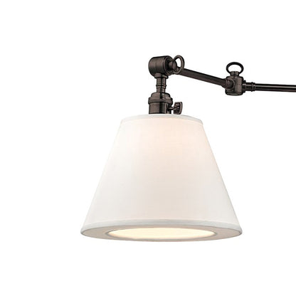 Versatile and attractive, Hillsdale Swing Arm Wall Light combines the ingenuity of early-twentieth century task lighting with a smart decorative touch from the twenty-first. Vintage cast swivels give the sconces wide-range adjustability, while custom contemporary linen shades swath your space in soft ambient light.