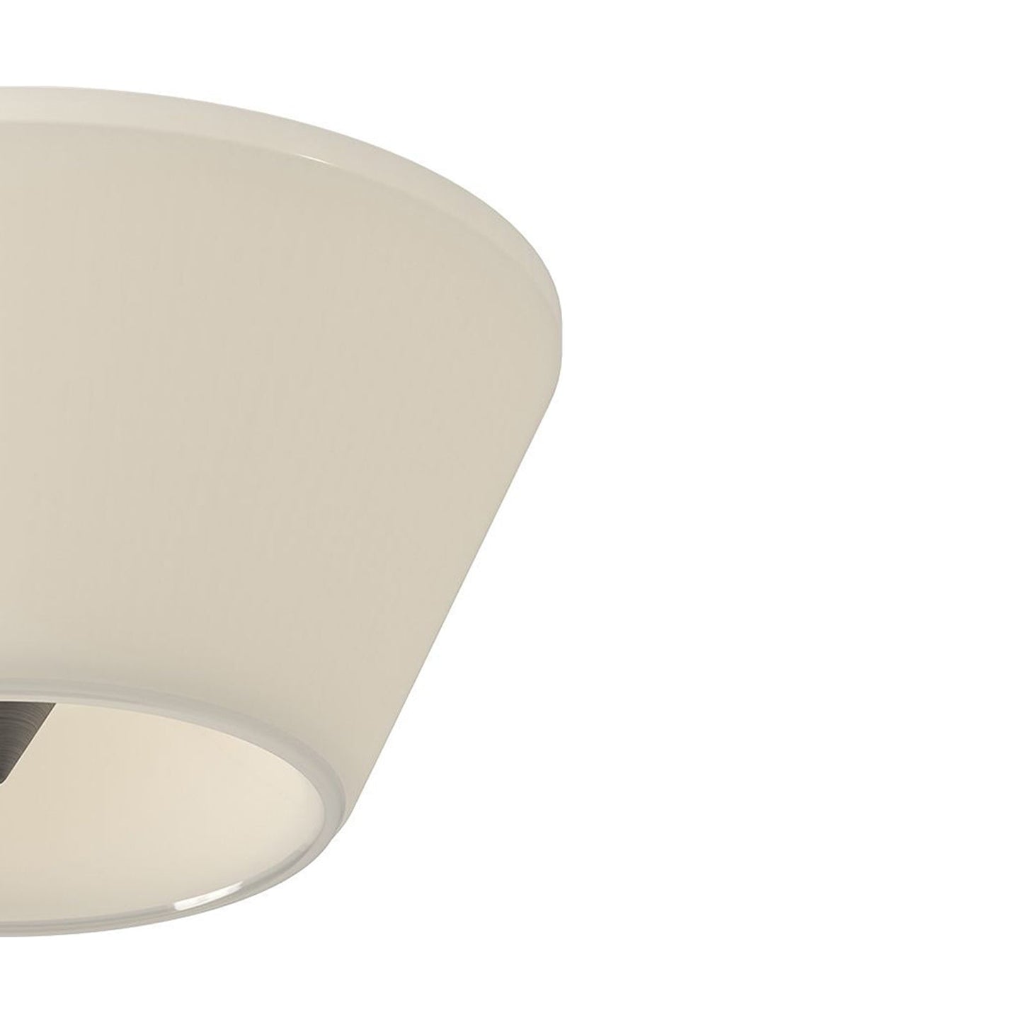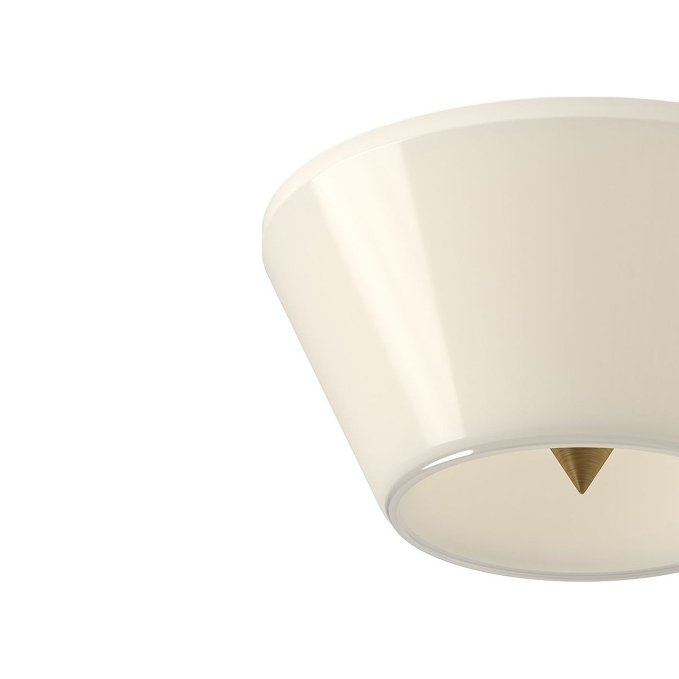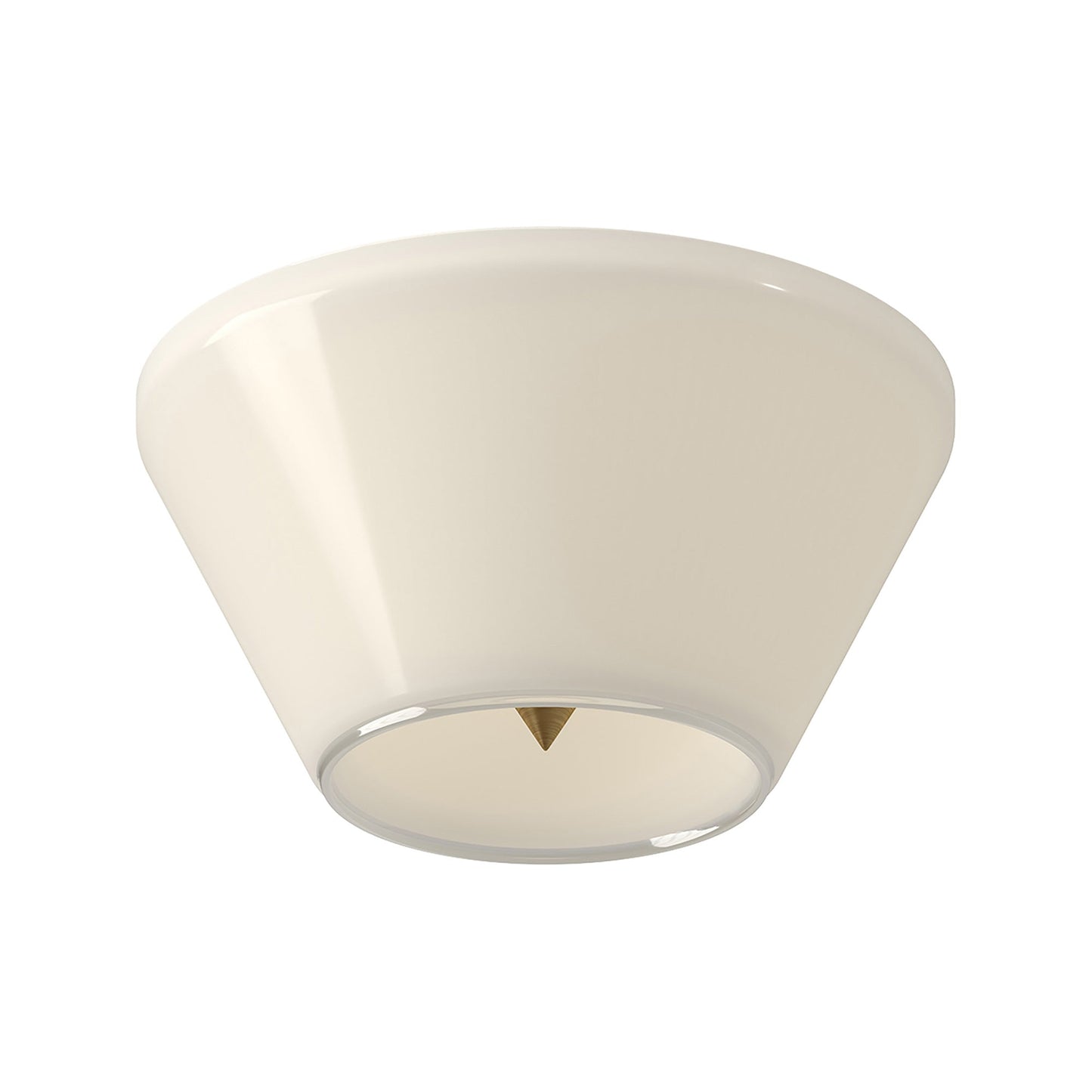 The appearance of minimalism defies a glam luxe motif hidden in the Holt LED Flush Mount Ceiling Light from Kuzco Lighting. Decadence takes on a retro vibe with a conical shade fashioned of glossy opal glass. An inner metal pyramid is perfectly visible from below, offering an intriguing element embellished by soft lighting.