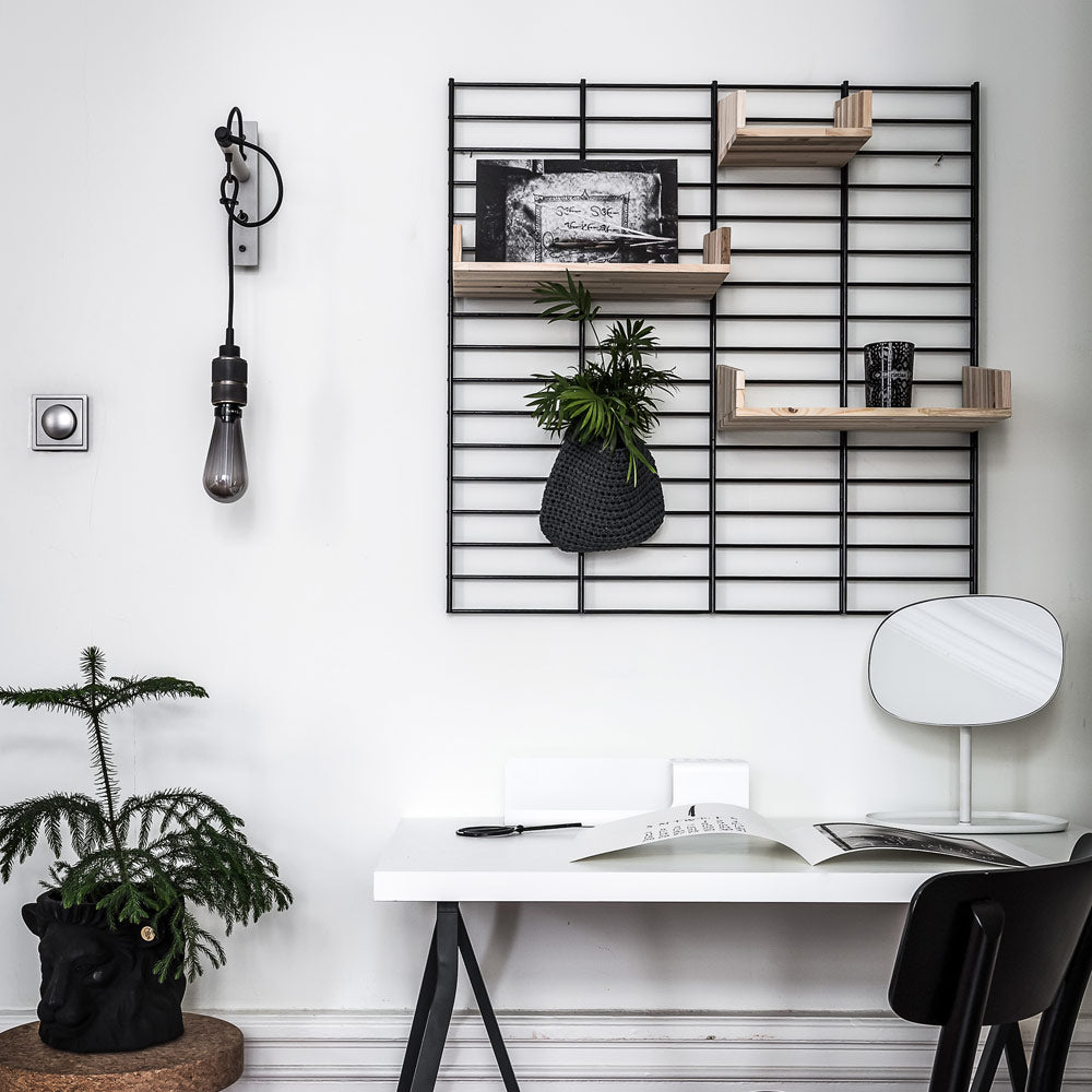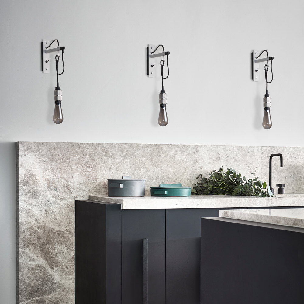 Repurpose the romantic look of industrial farmhouse lore with the Hooked Nude Wall Light from Buster + Punch. Its busy design motif features metal framing with a casually looped suspension cord dangling an exposed bulb adjustable to accommodate a custom height. This fixture hits the feel of a low-key style motif with flexibility.