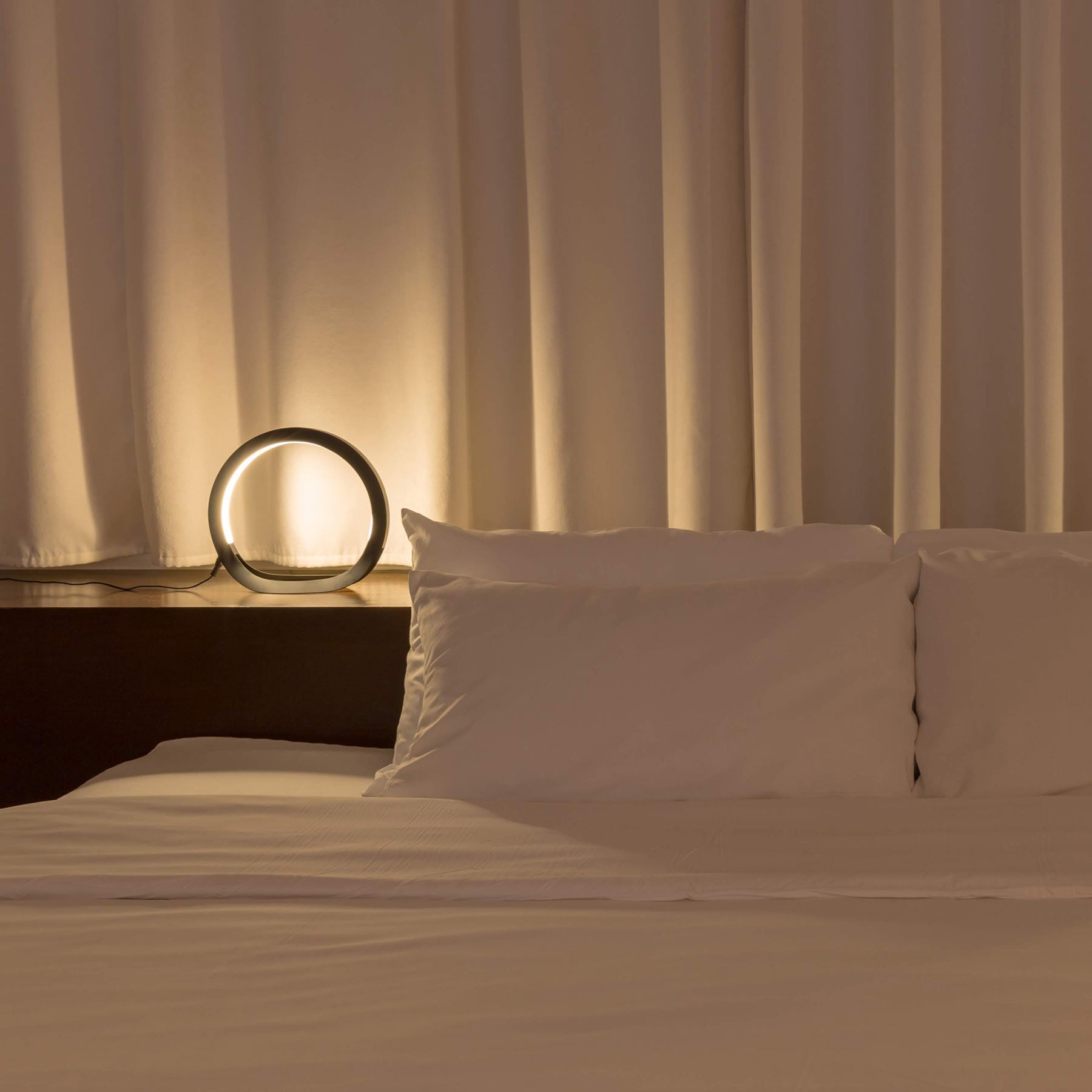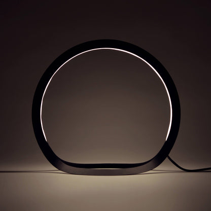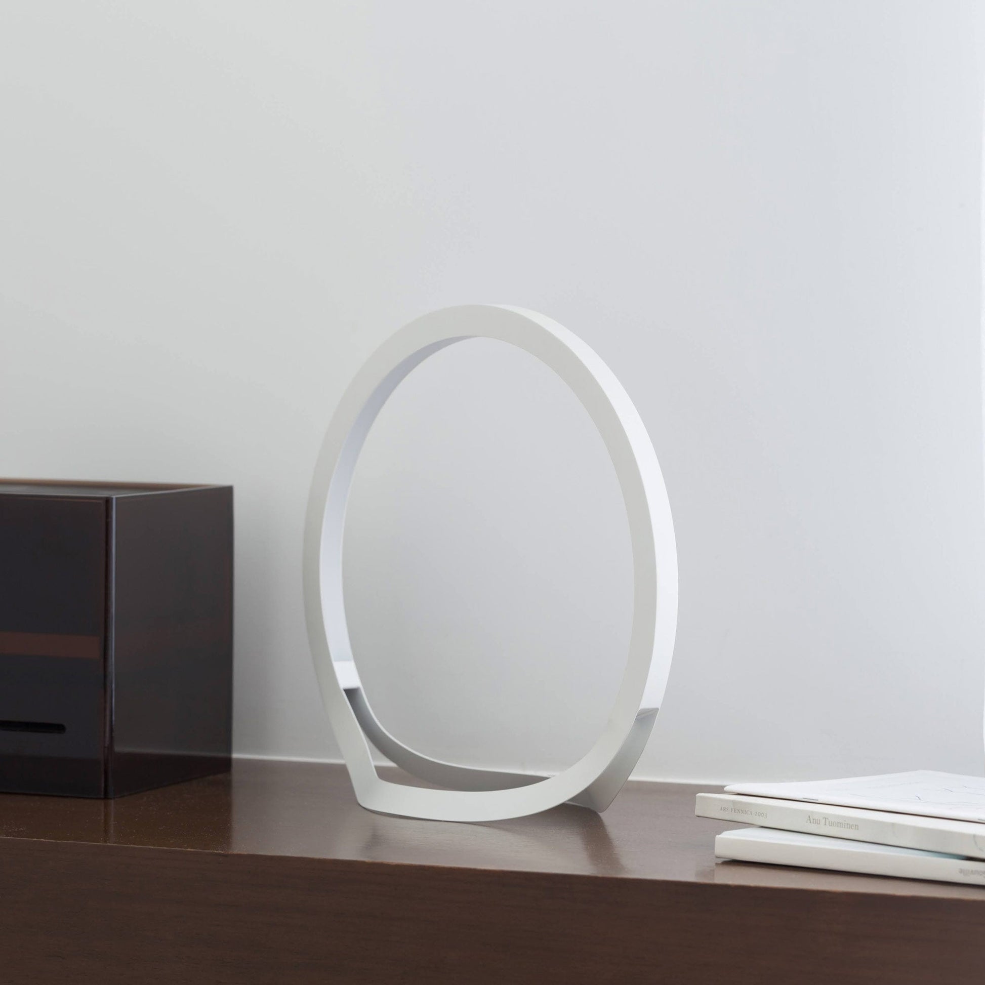 Representing the circle of life in a low-key aesthetic, the Hoop LED Table Lamp from Y.S.M simplifies a design-forward look in energy-efficient lighting. Sculptural silhouetting with an openwork frame delivers devout transparency as this charming lamp and its delicate aesthetic bring surprising design power in a living room or bedrooms.