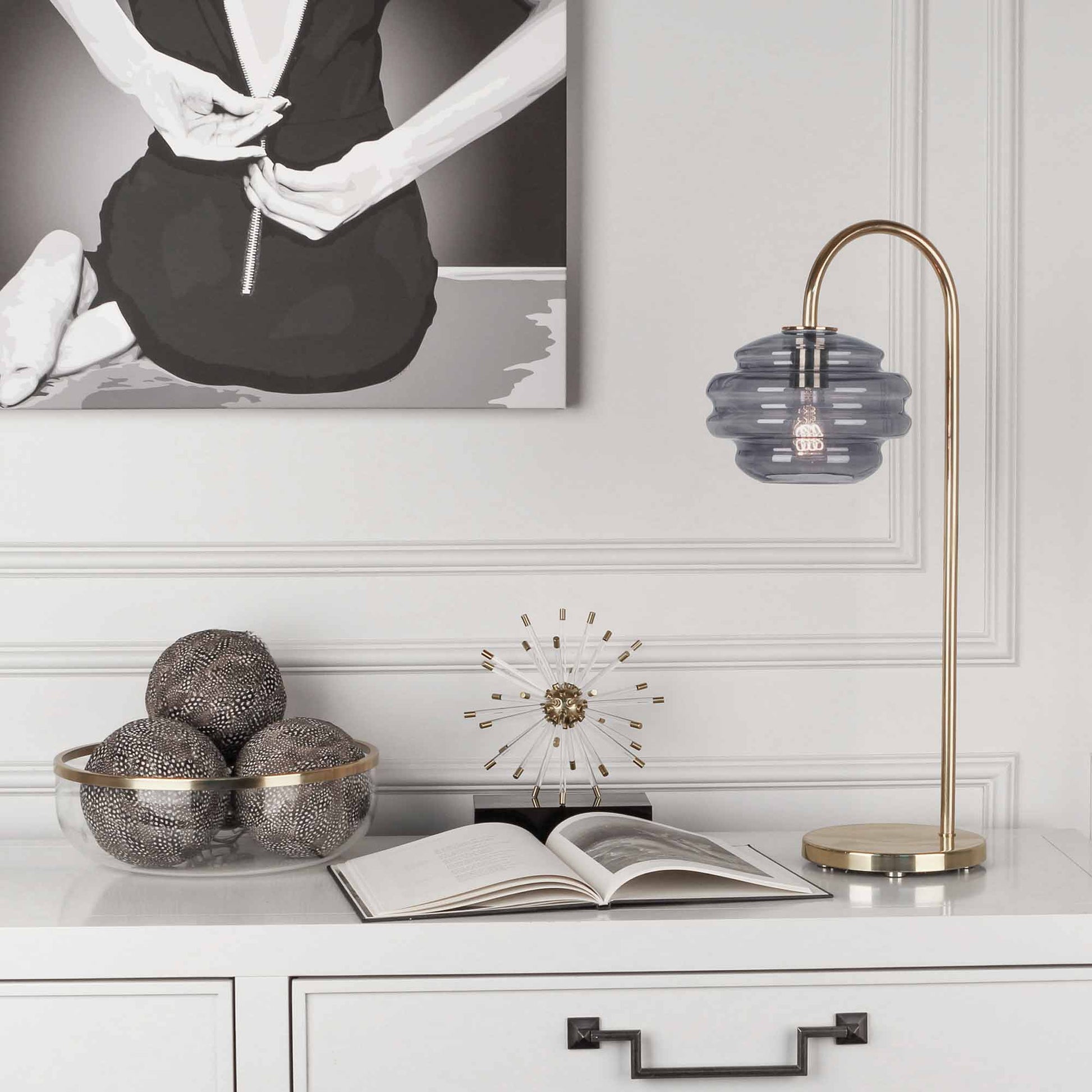 Follow a sensual arc silhouette culminating in a gleaming glass shade, creating a work of art in the Horizon Table Lamp from Robert Abbey.