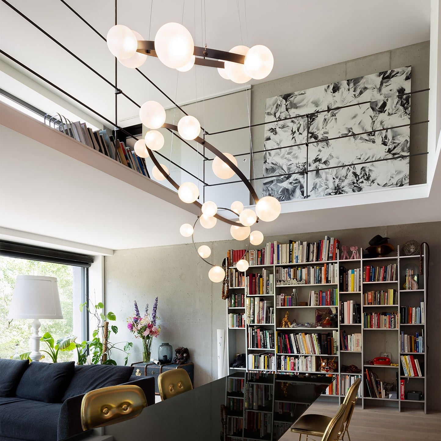 Bubble globes in an iridescent finish make a spectacular display with the Hubble Bubble Chandelier from Moooi. Bubble bulbs surround the circular construction of this piece for an eternity of beauty and energy efficient lighting.