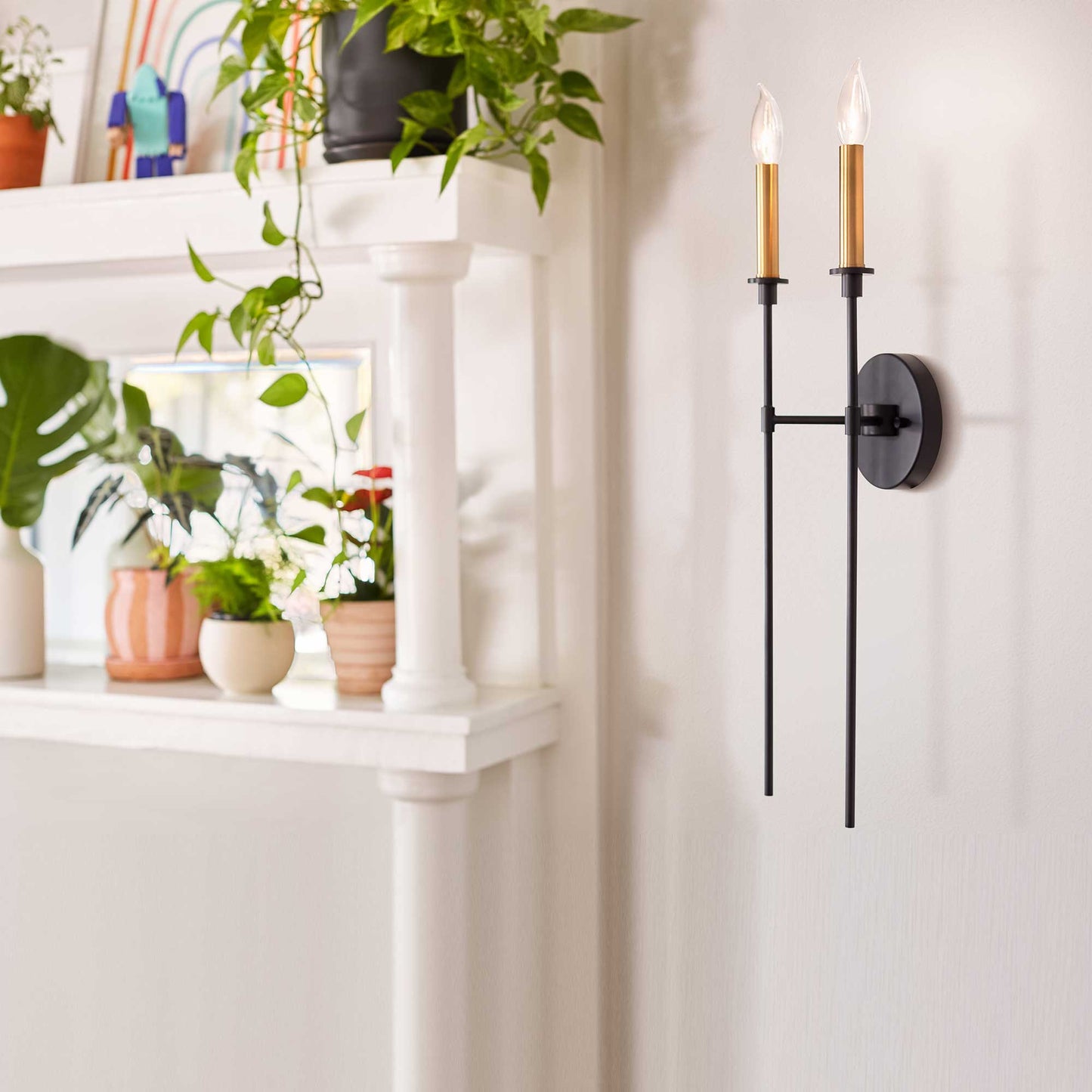 Pairing a modern minimalist torch silhouette with classic black and brass finishes, the Hux Wall Light from LARK is a gorgeous addition in an entry or living room. Delivering beautiful accent lighting, the elongated fixture is a balanced, eye-catching choice for any room.