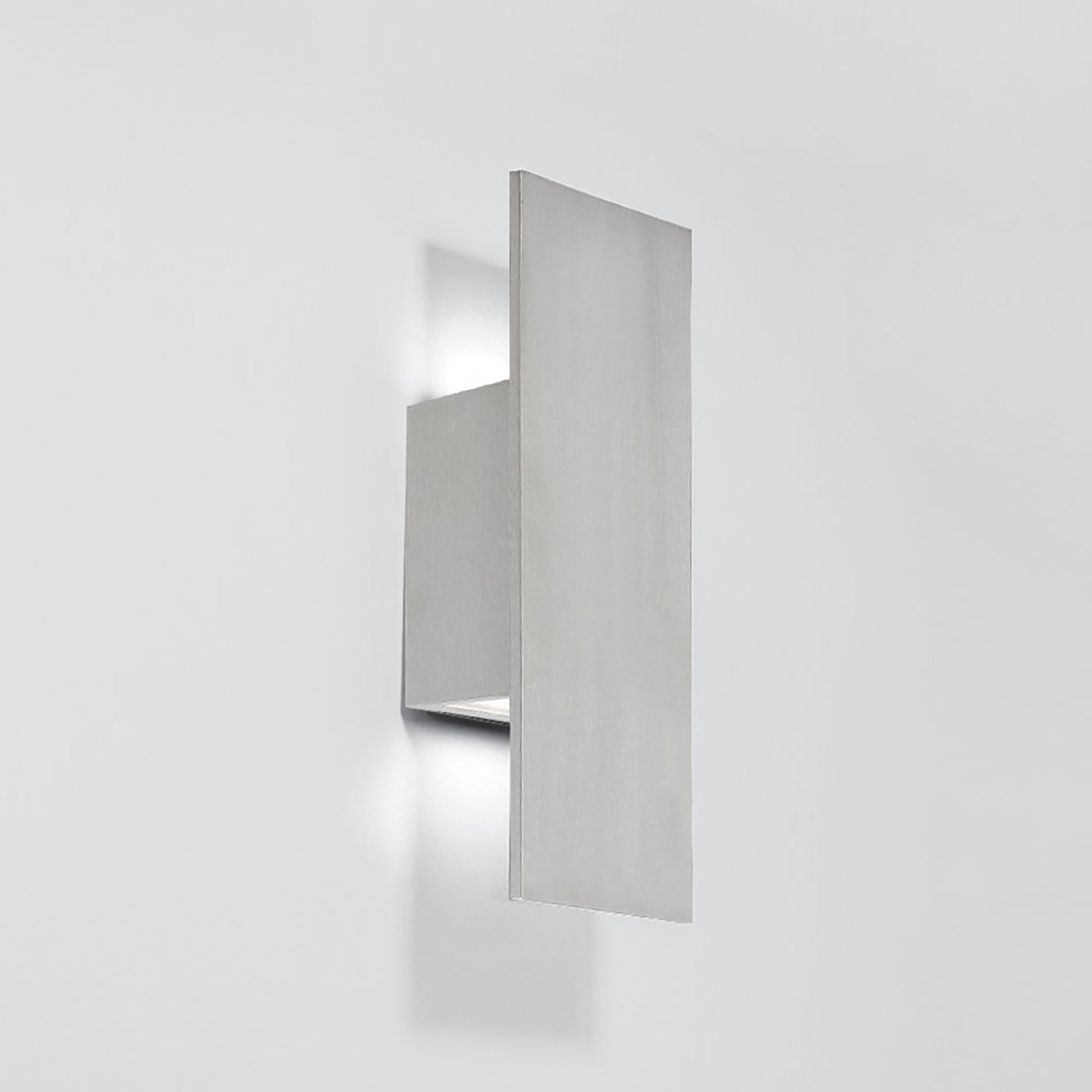 Simplicity delivers a bold look in the die-cast aluminum frame and wall mount of the Icon Indoor/Outdoor LED Wall Light from dweLED, featuring a shielded source of illumination for subtle lighting through a glass diffuser.
