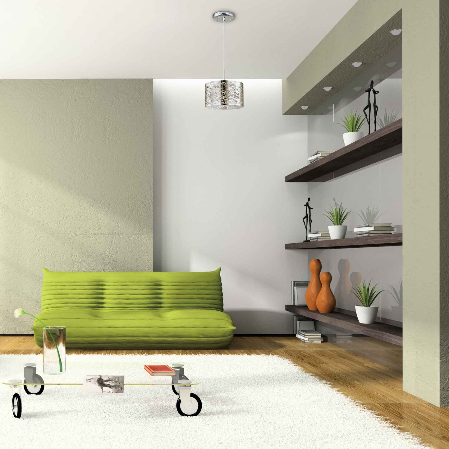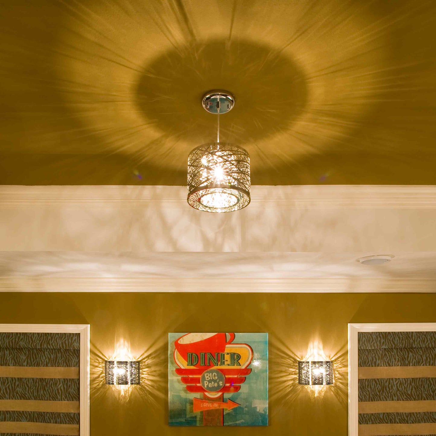 A laser cut shade adds modern artistry and precision to the glitter crystals tucked within the Inca Mini Pendant Light from ET2 Lighting.