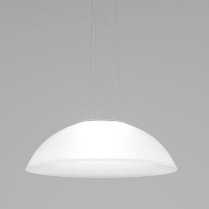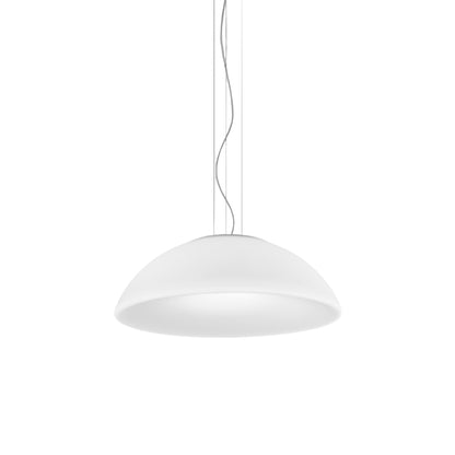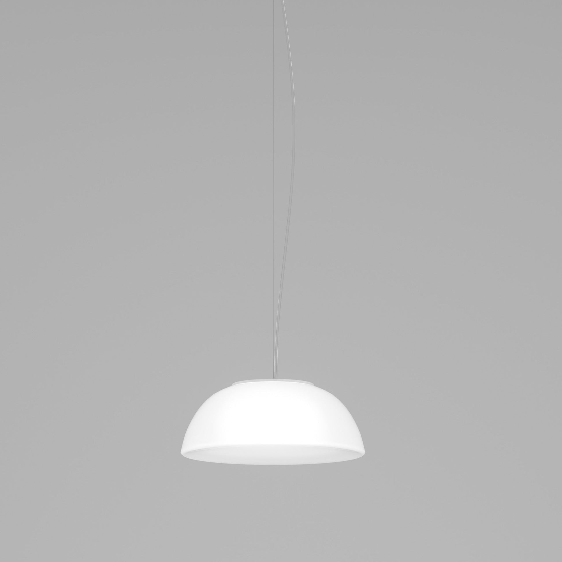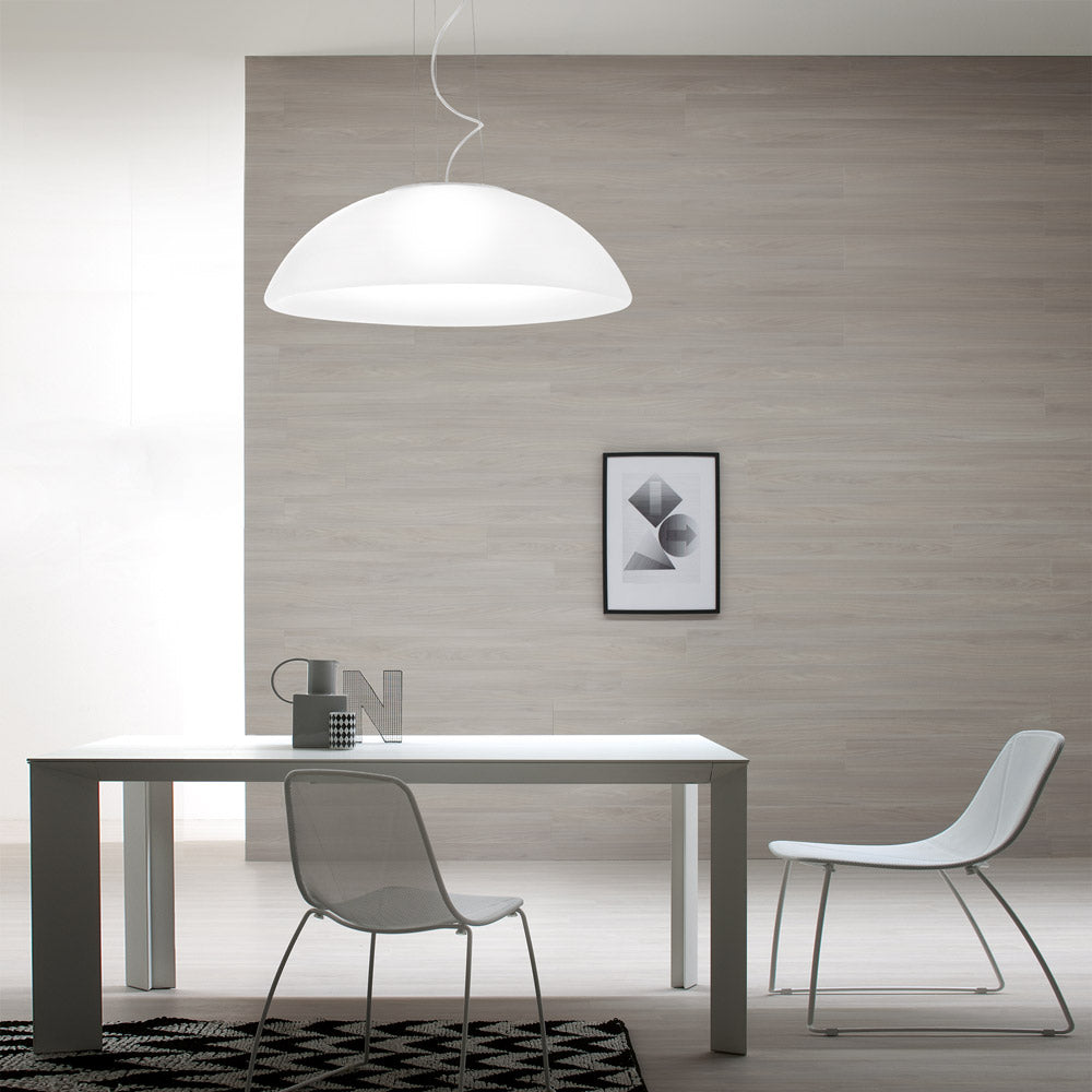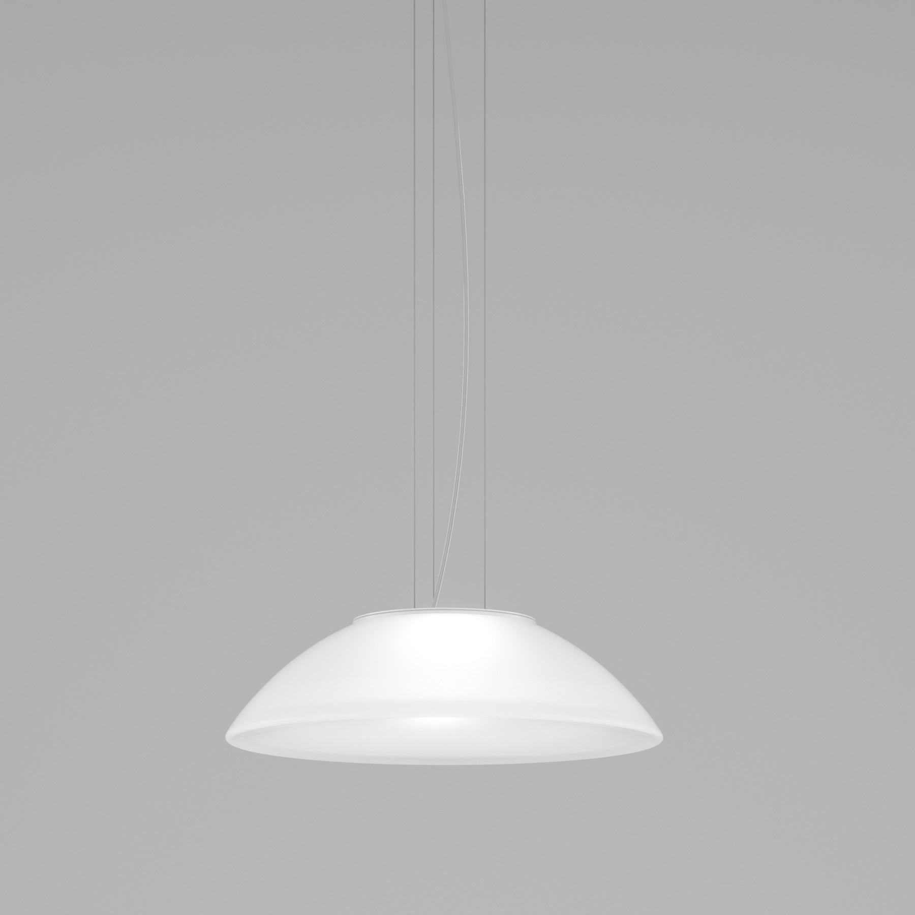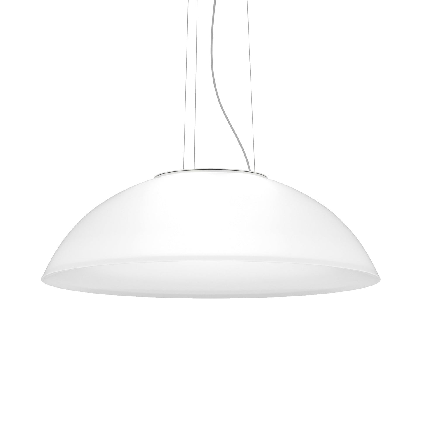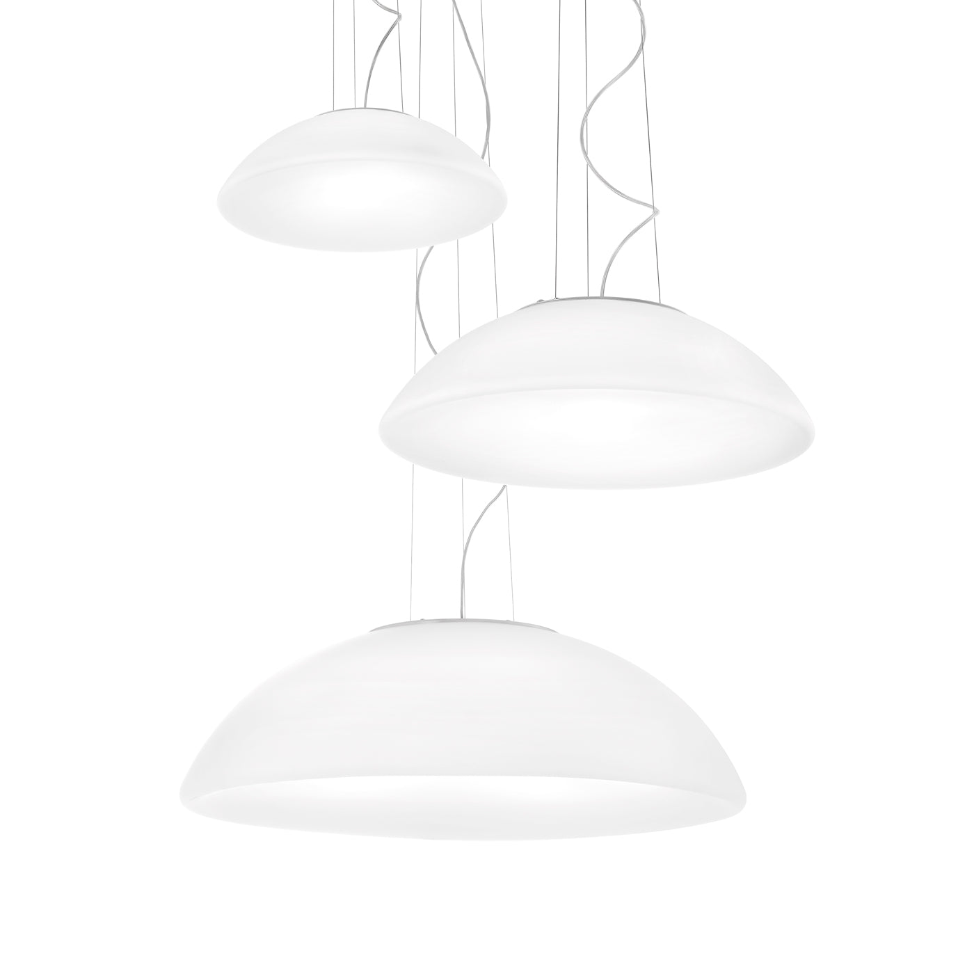 Casual yet eloquent, the Infinita Pendant Light from Vistosi captures the essence of retro inspiration in lighting. Embrace the inverted saucer silhouette design adding tasteful sophistication in any venue. Fashioned of opulent white satin finish glass and glossy white finish metal framing, this fixture becomes a staple with limitless versatility.