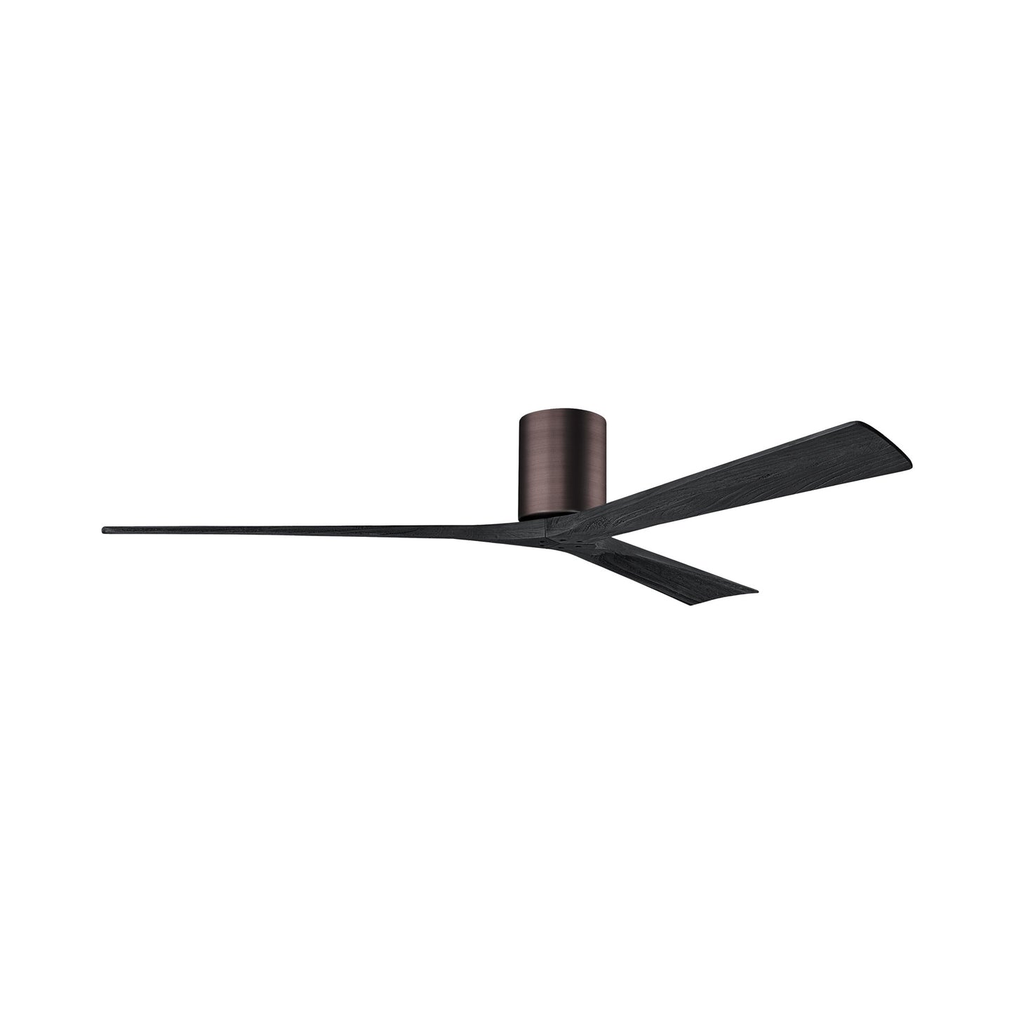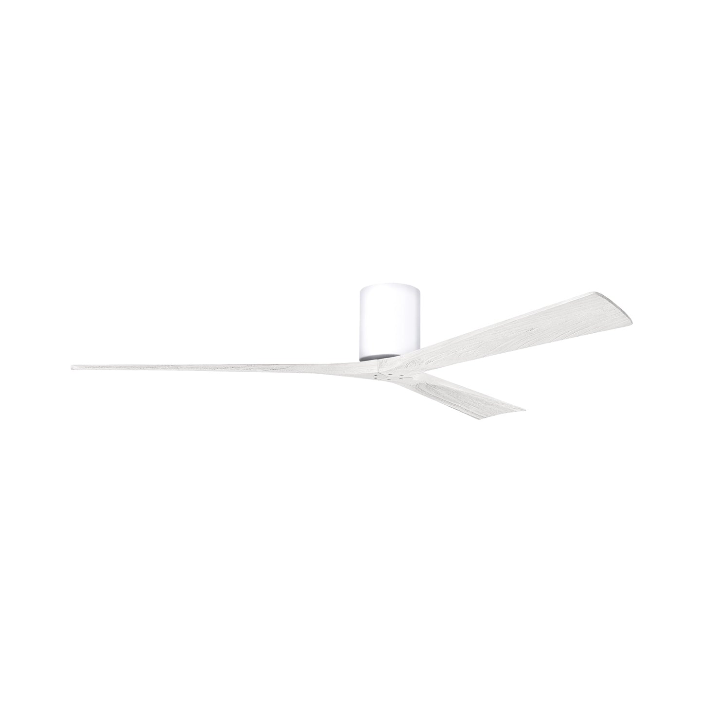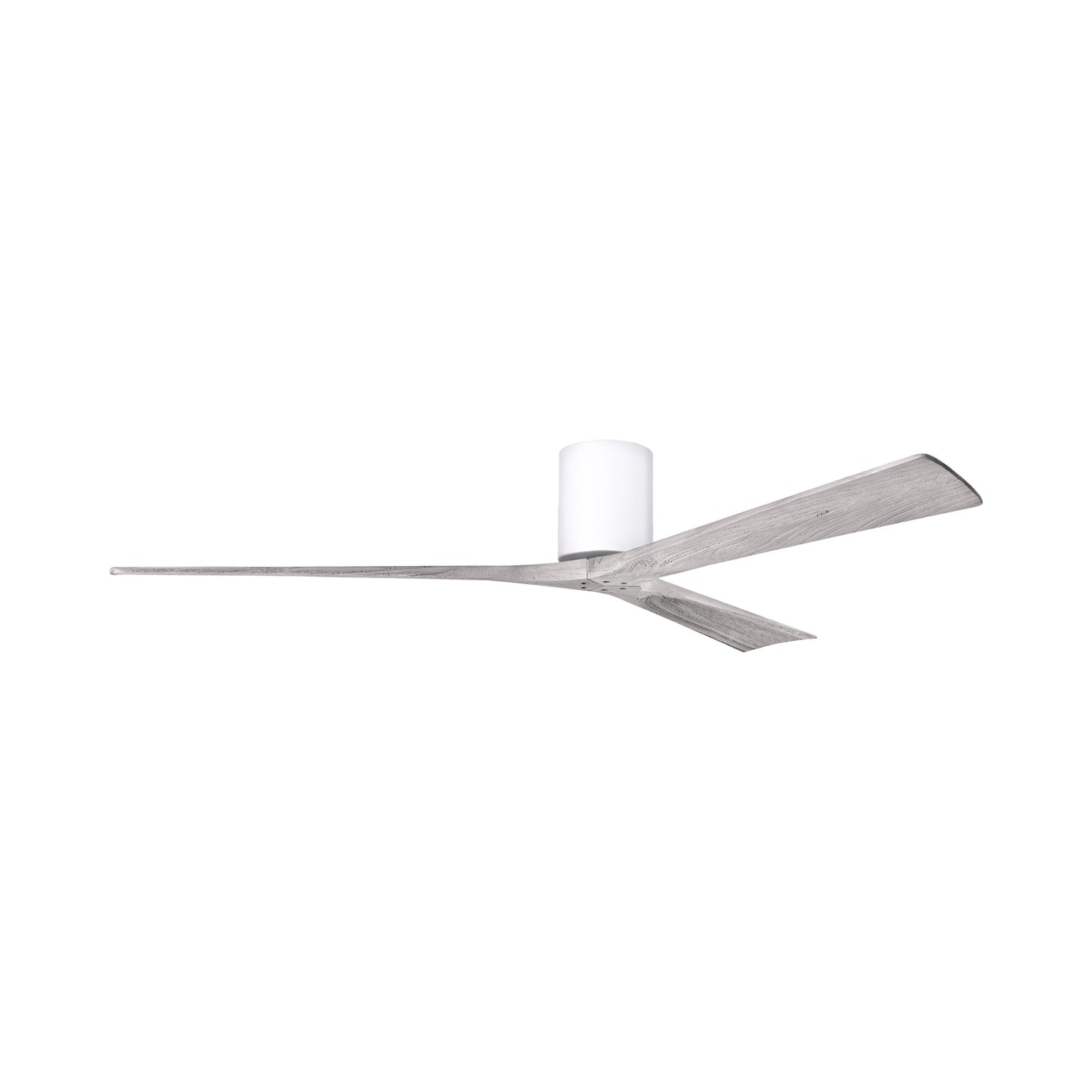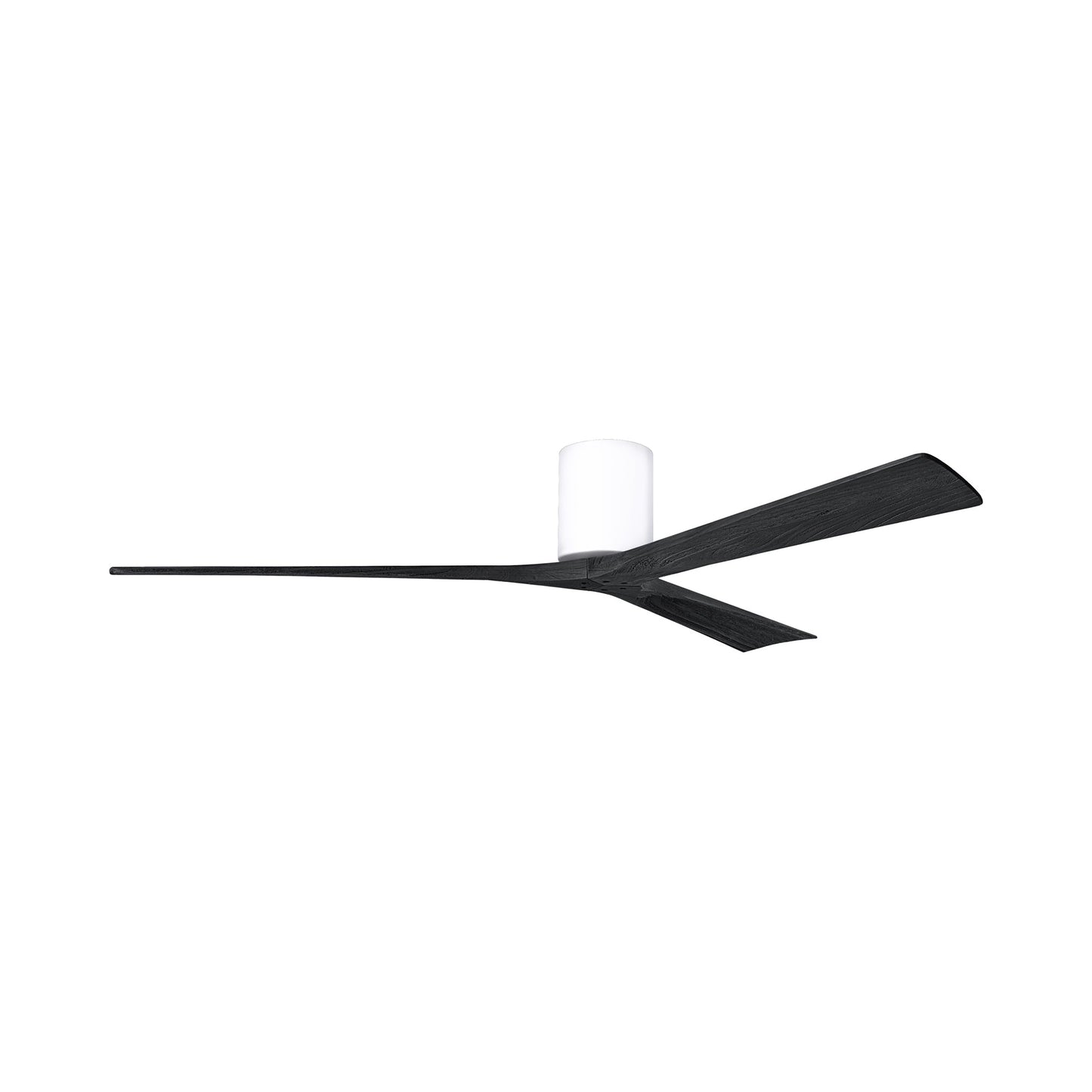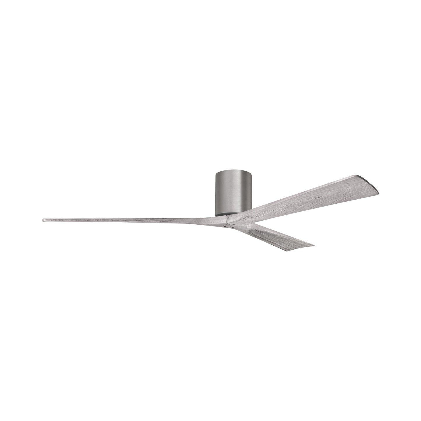 A trio of streamlined blades are paired with a modern, cylindrical housing in the cool, sleek Irene IR3H Indoor / Outdoor Flush Mount Ceiling Fan from Matthews Fan Company.