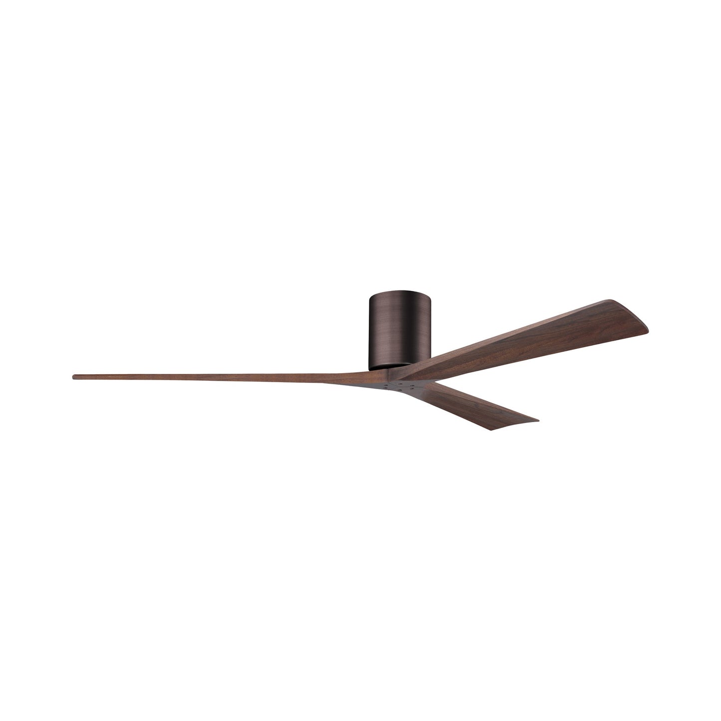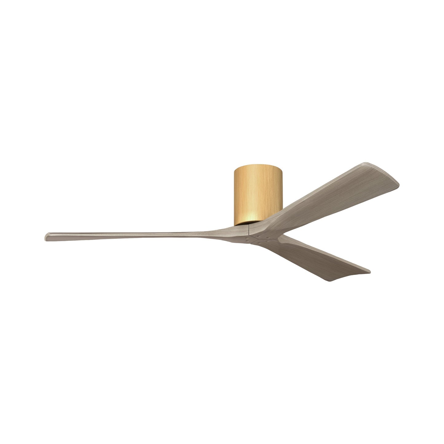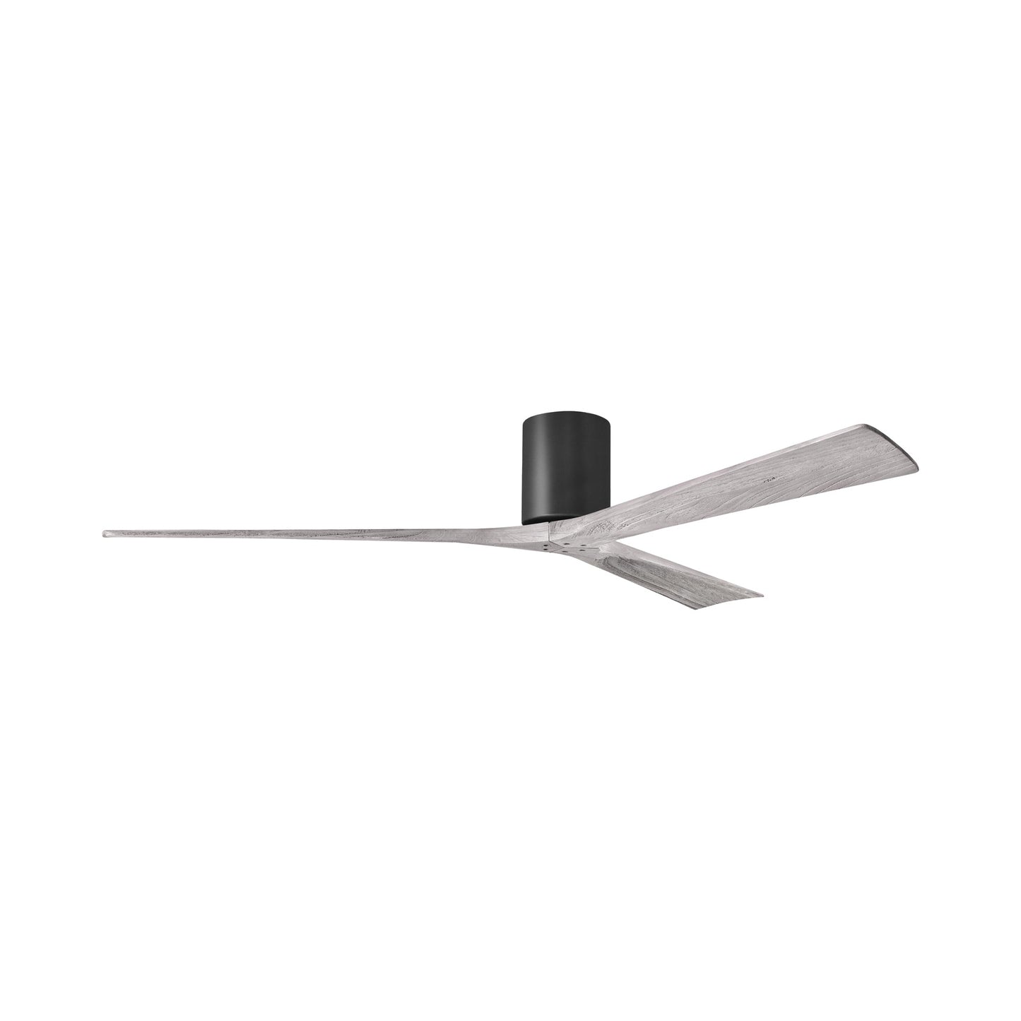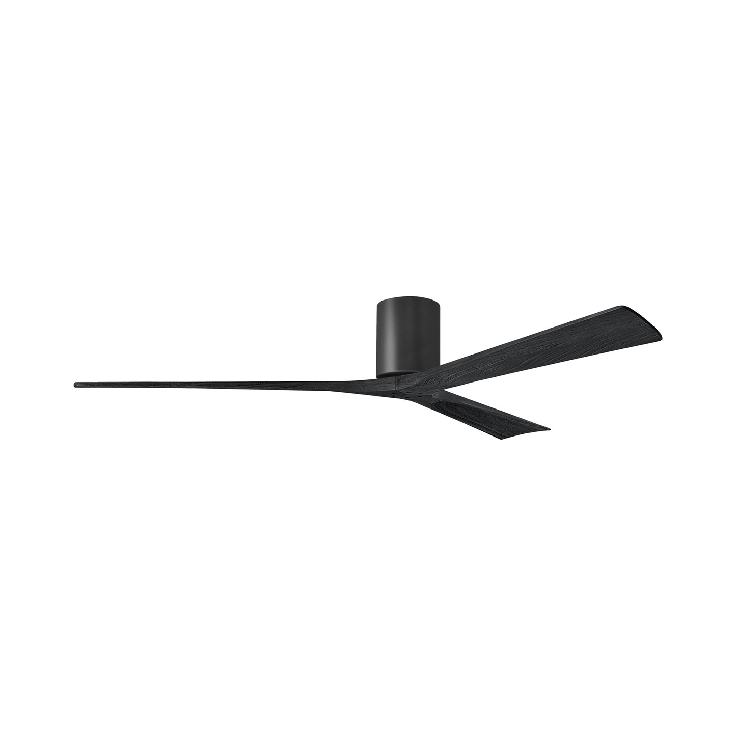 A trio of streamlined blades are paired with a modern, cylindrical housing in the cool, sleek Irene IR3H Indoor / Outdoor Flush Mount Ceiling Fan from Matthews Fan Company.