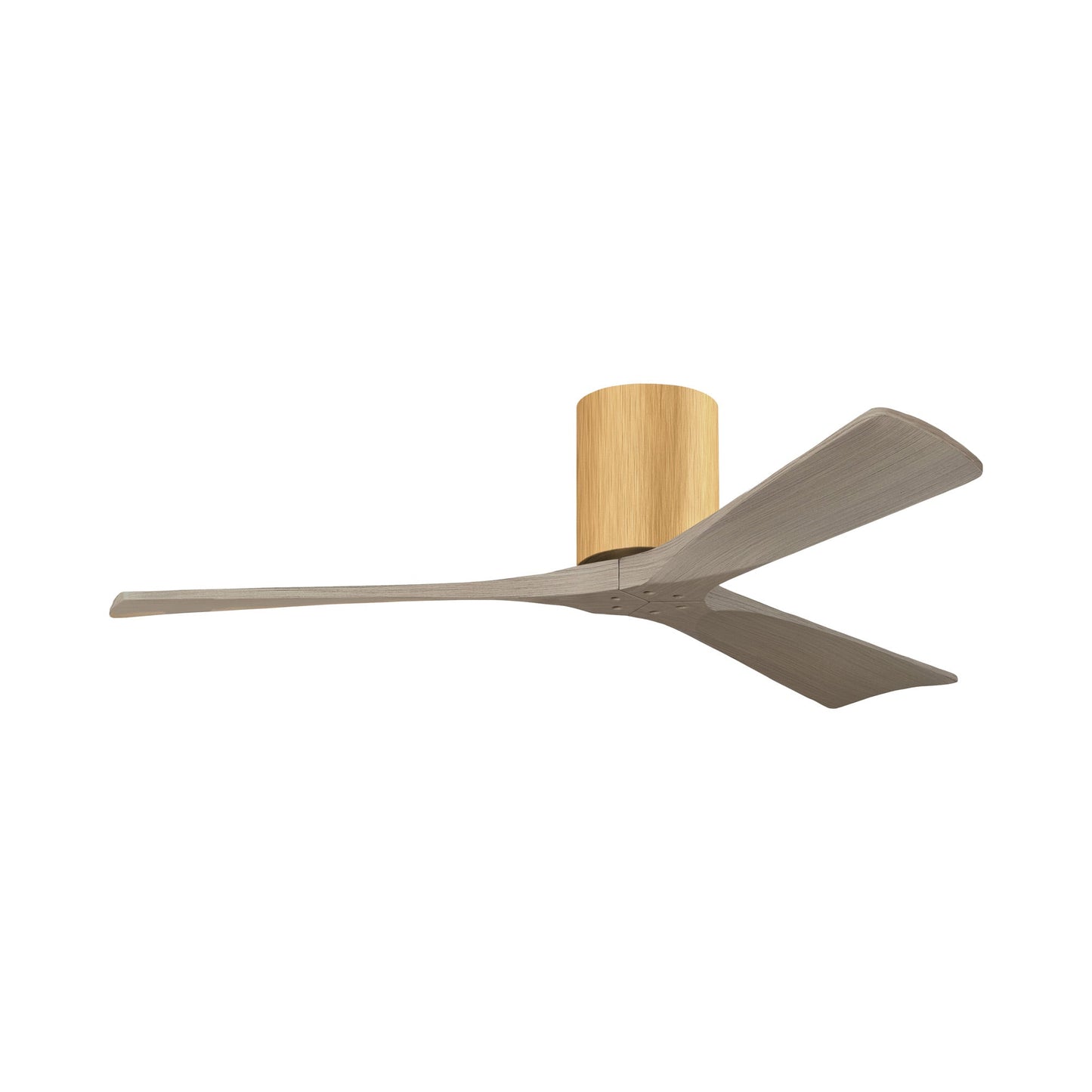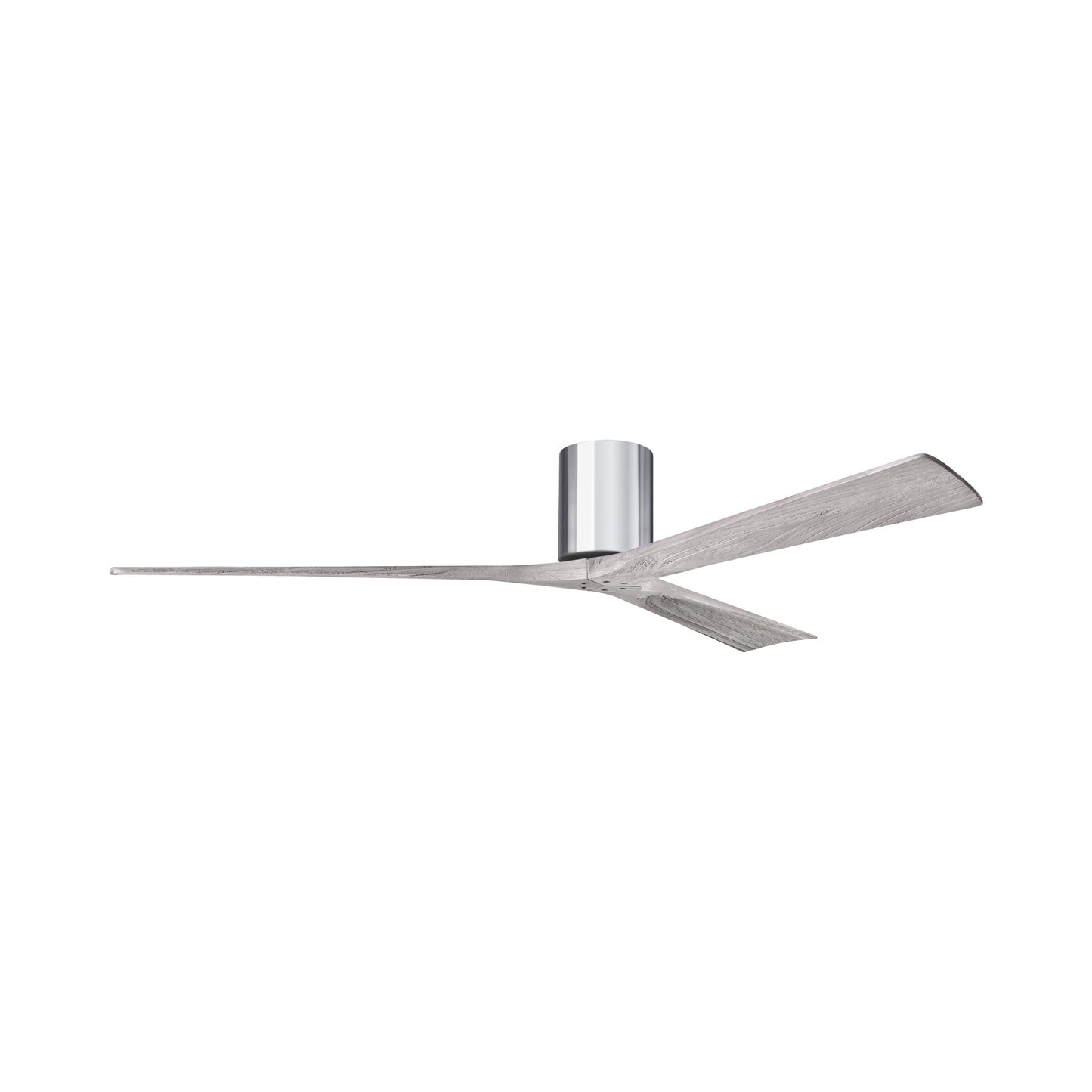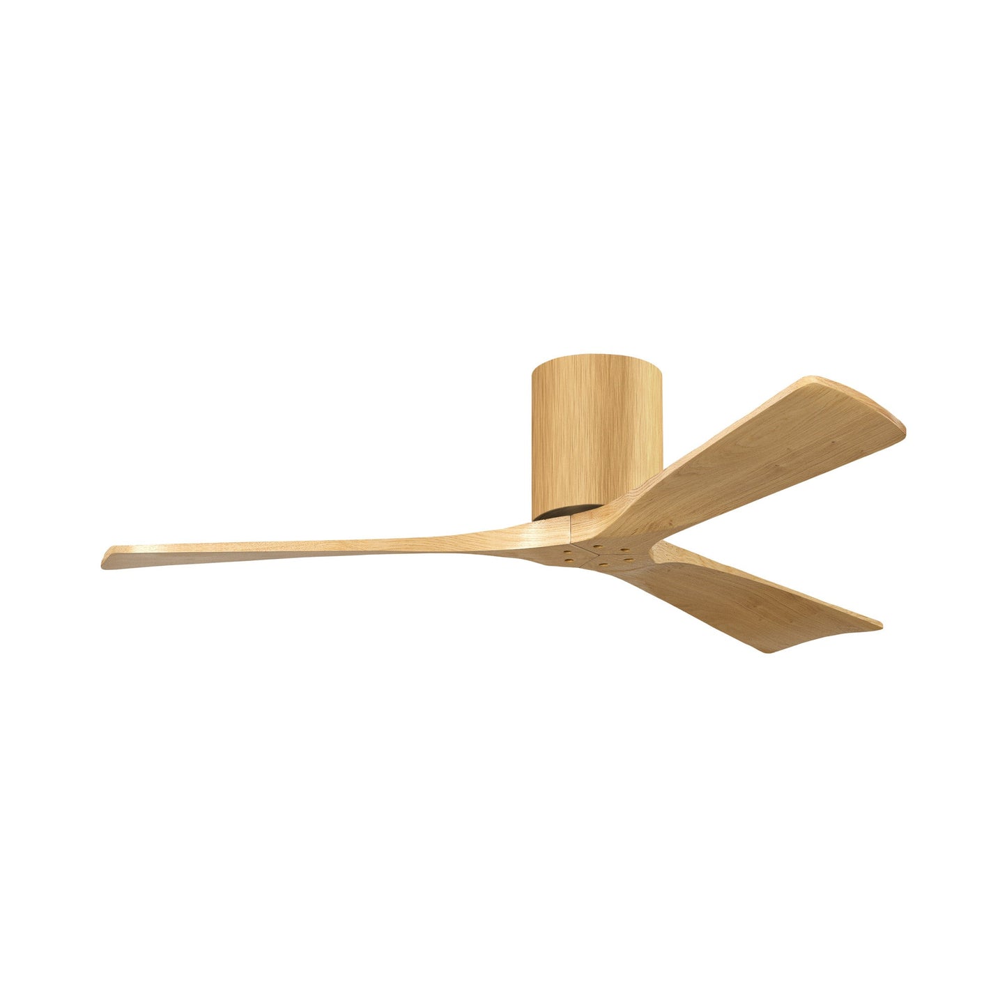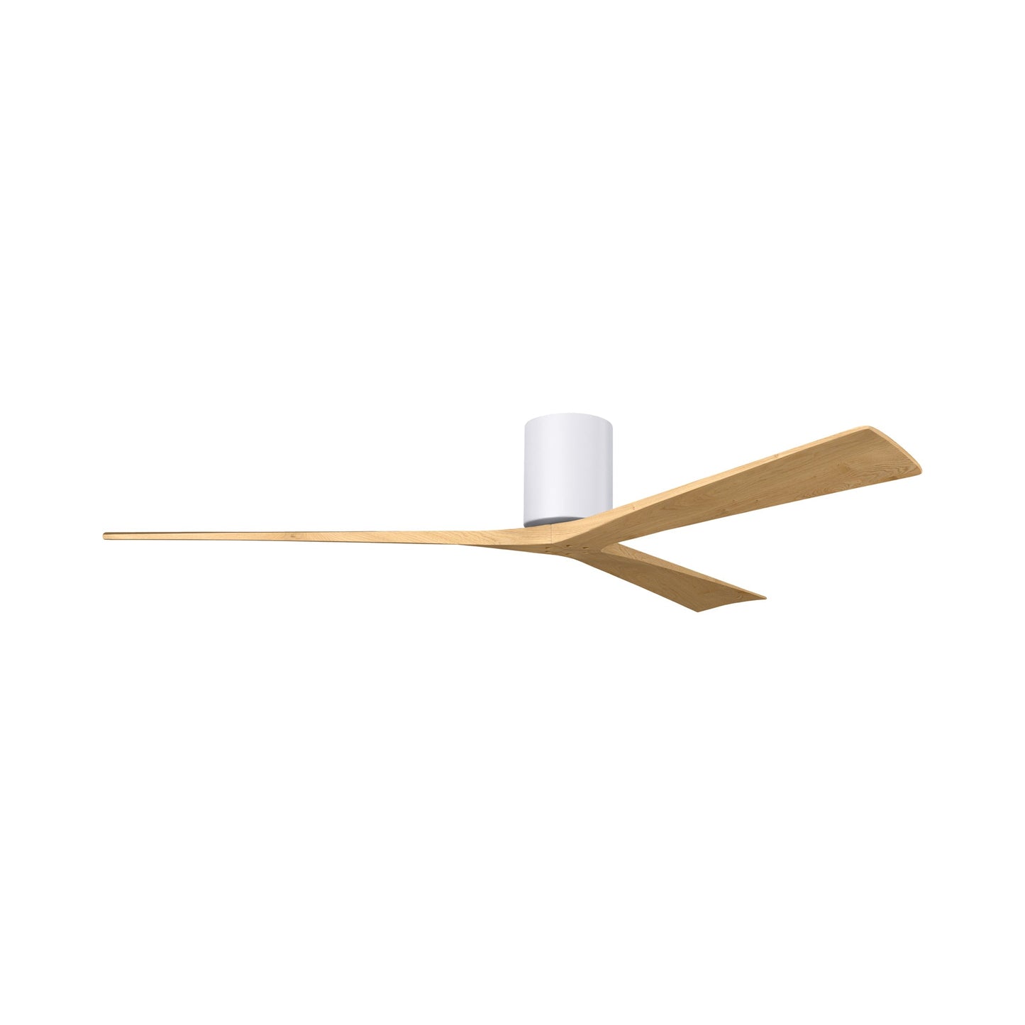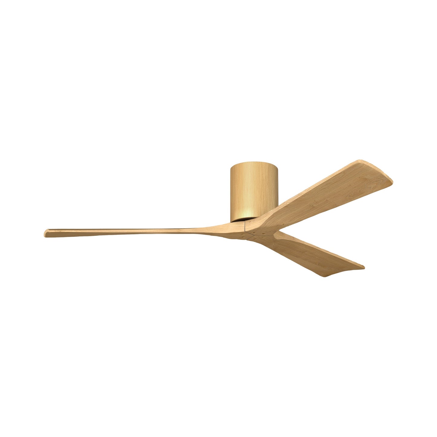 A trio of streamlined blades are paired with a modern, cylindrical housing in the cool, sleek Irene IR3H Indoor / Outdoor Flush Mount Ceiling Fan from Matthews Fan Company.