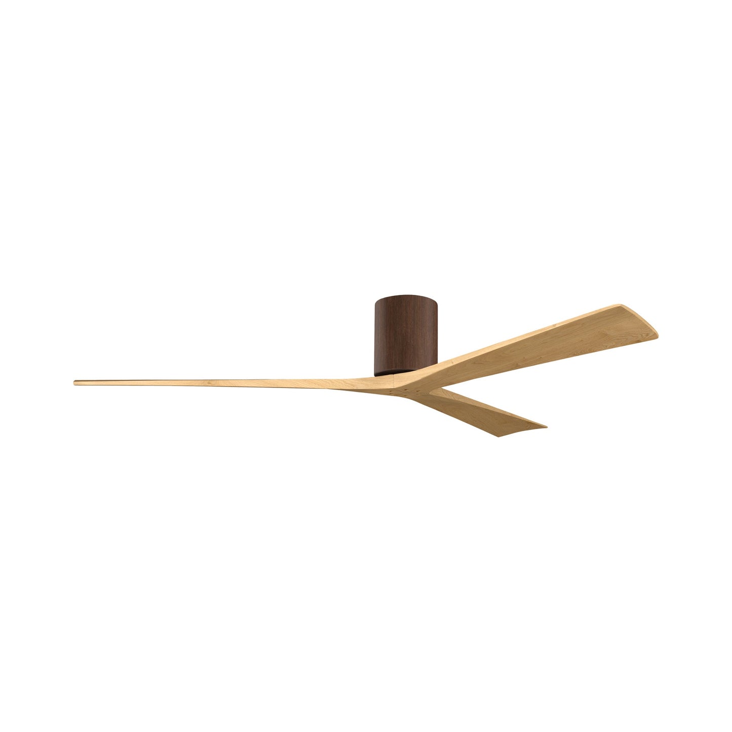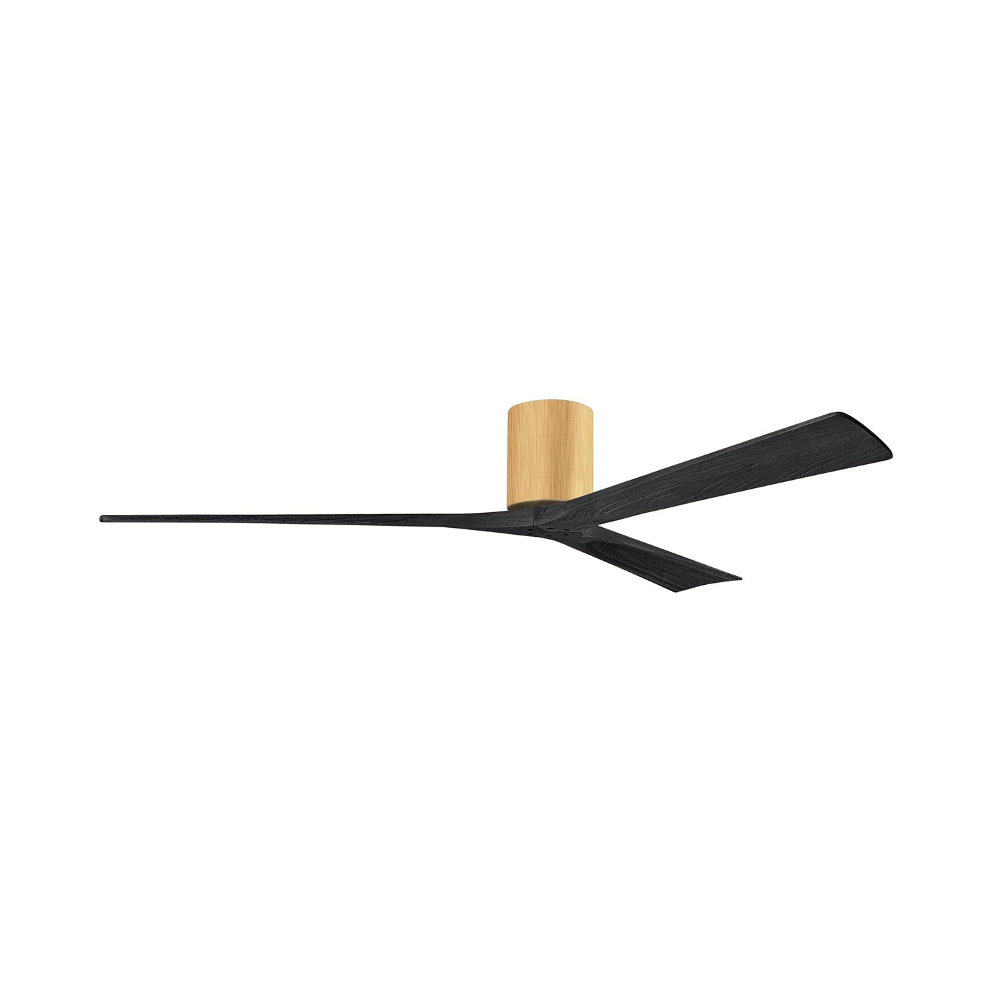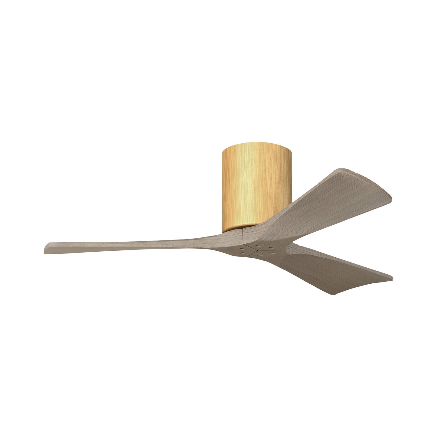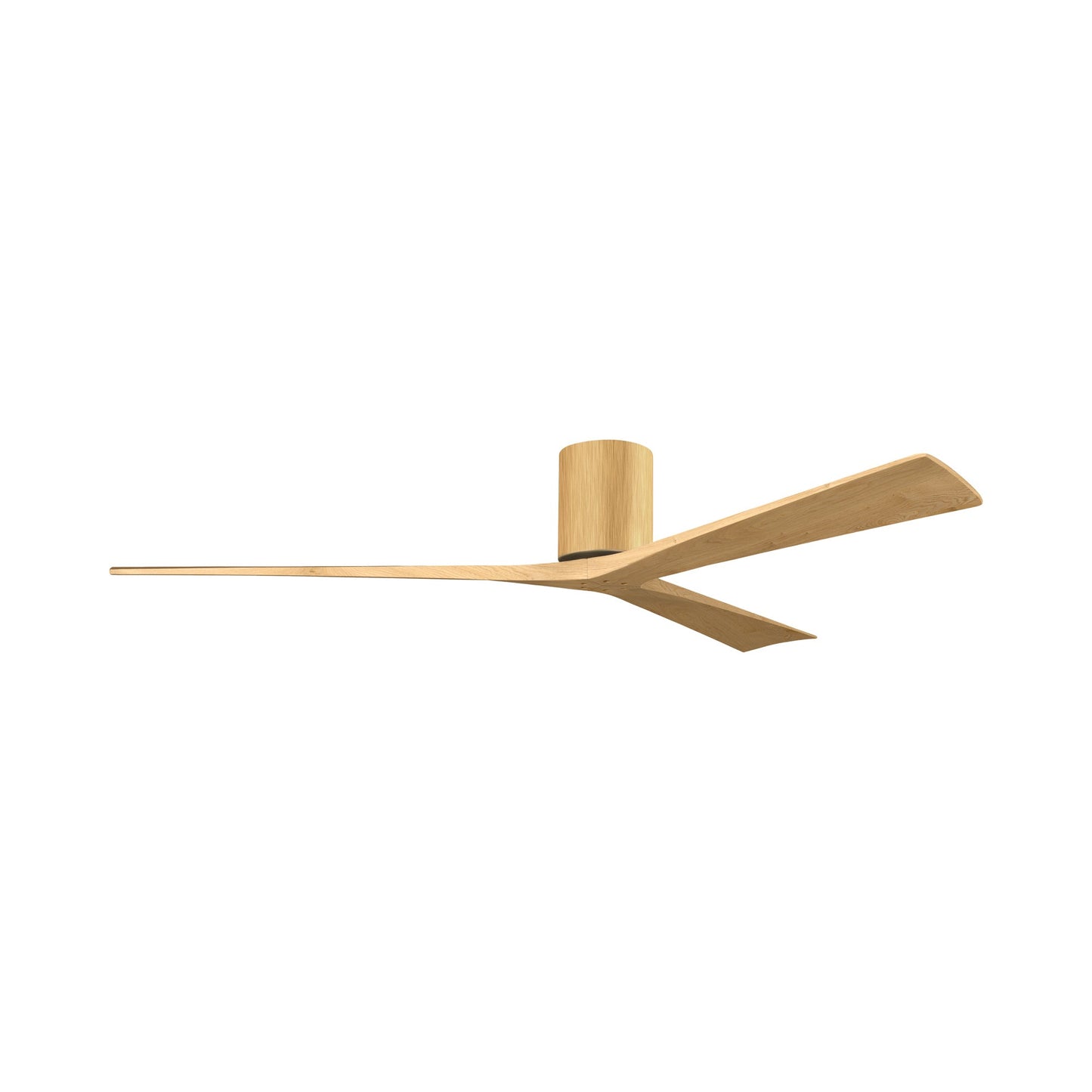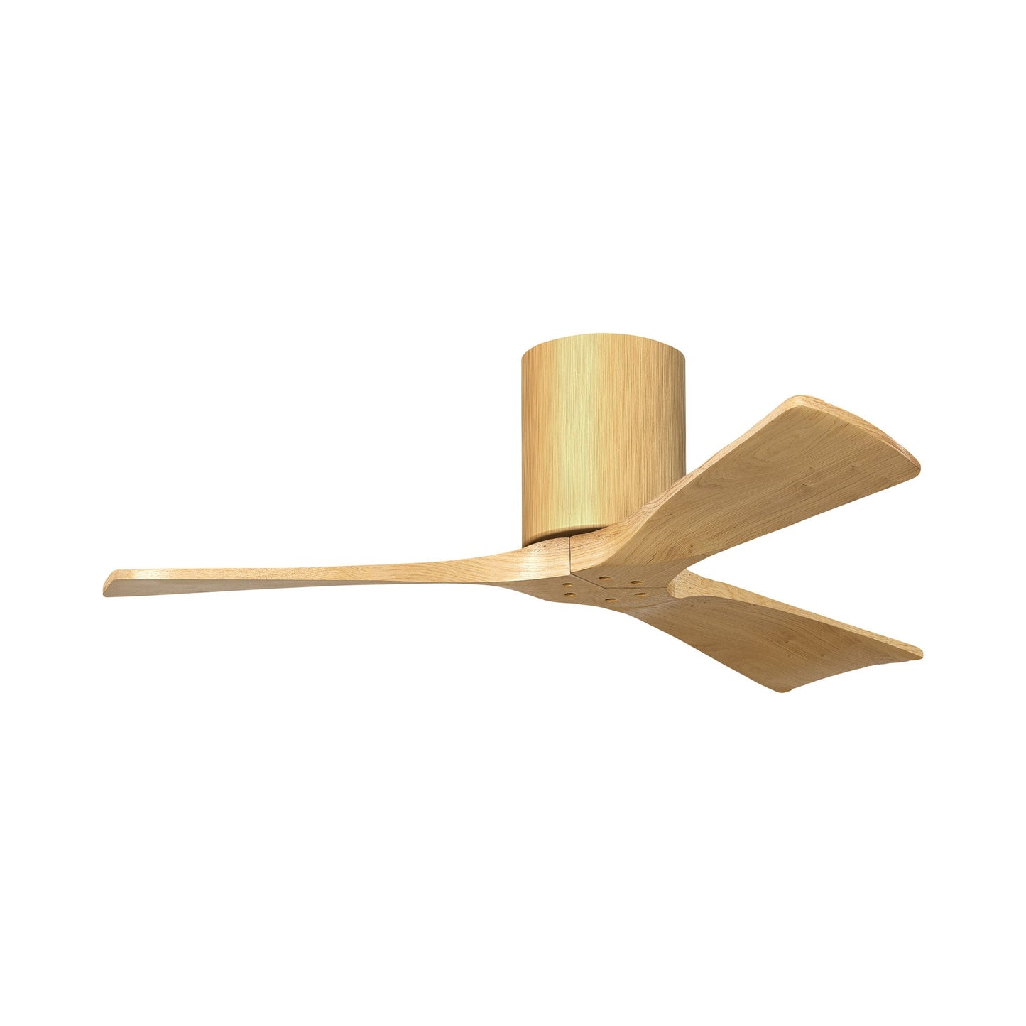 A trio of streamlined blades are paired with a modern, cylindrical housing in the cool, sleek Irene IR3H Indoor / Outdoor Flush Mount Ceiling Fan from Matthews Fan Company.