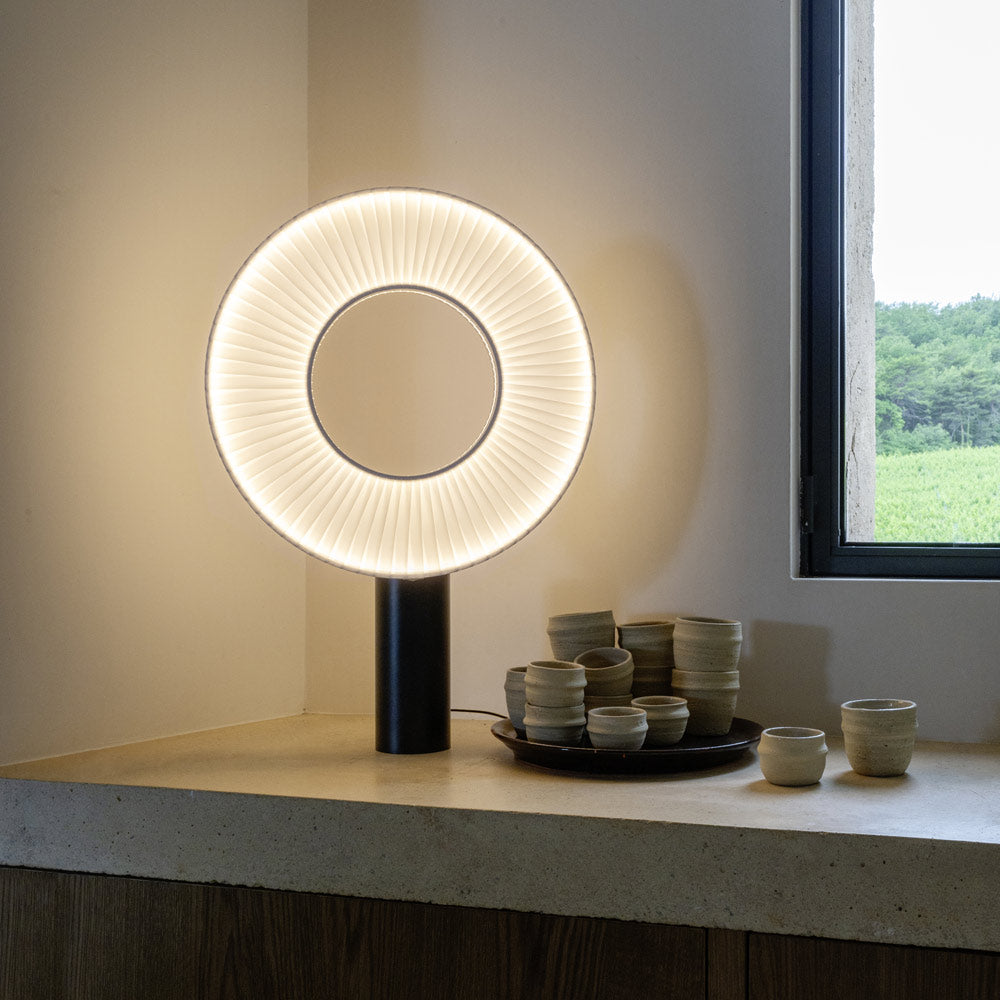 An unexpected retro vibe meets modern style as the Iris LED Table Lamp from 10 heures 10 by DCWeditions brings a festive look with soft, glowing illumination. Its textile shade offers obvious textural impact, designed in ring form with a cylinder base and trim. Enjoy energy efficiency in a lamp with no shortage of character.