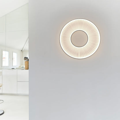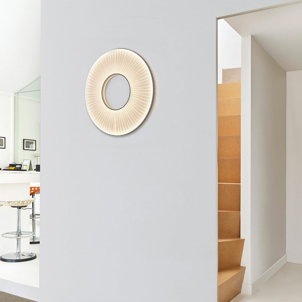 Envision a radiant planetary vibe with a circular silhouette and glowing light. The Iris LED Wall Light from 10 heures 10 by DCWeditions is both modern and a touch retro, adding textural beauty to a textile shade with ribbon elements. Framing refines this energy-efficient fixture, creating an all-around festive aesthetic.