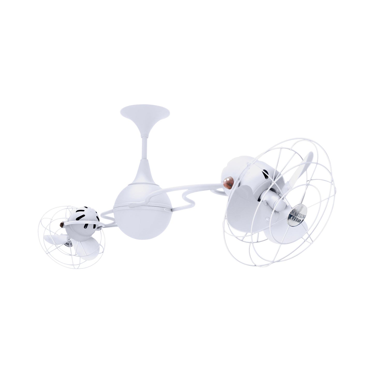 A pair of positionable fans ensure optimal air circulation while creating a striking, modern industrial look for the Italo Ventania Indoor / Outdoor Ceiling Fan from Matthews Fan Company.